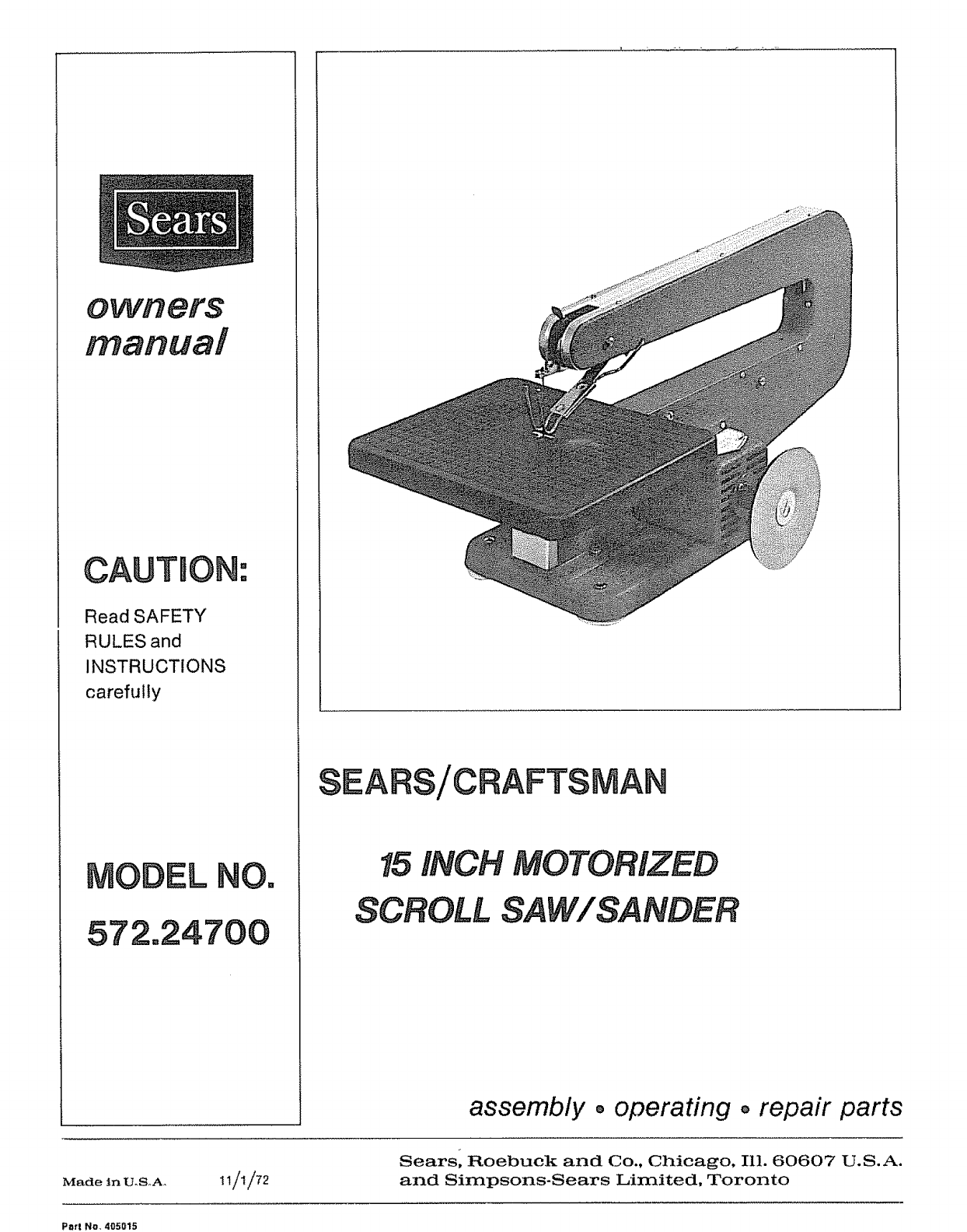 57224700 57224700 CRAFTSMAN CRAFTSMAN MOTORIZED SCROLL SAW - Manuals and Guides L0805059 View the owners manual for your CRAFTSMAN CRAFTSMAN MOTORIZED SCROLL SAW #57224700. Home:Tool Parts:Craftsman Parts:Craftsman CRAFTSMAN MOTORIZED SCROLL SAW Manual