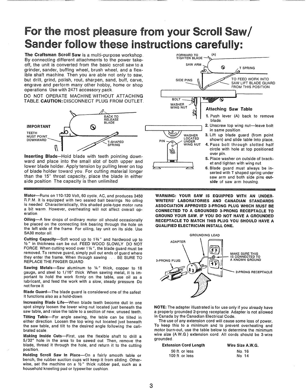 CRAFTSMAN Saw Scroll Manual L0805059 CRAFTSMAN Saw Scroll Owner's Manual, CRAFTSMAN Saw Scroll installation guides