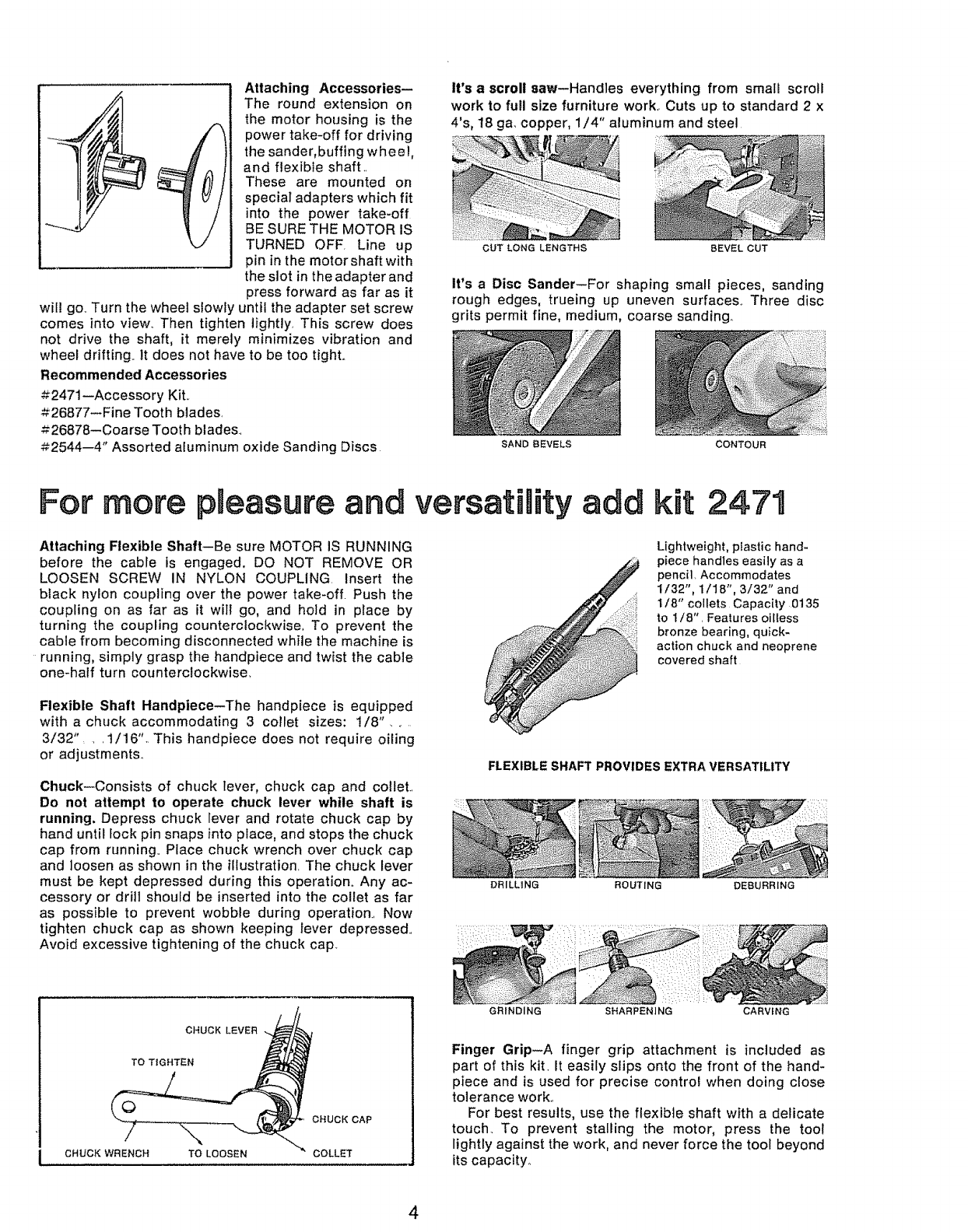 grinder, sander, buffing wheel, brush wheel, and a flex-