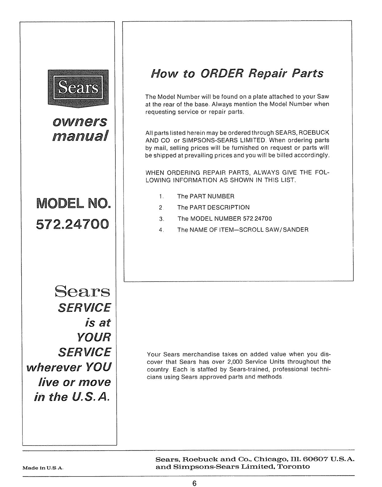 Sears, Roebuck and Co., Chicago, Ill. 60607 U.S.A.