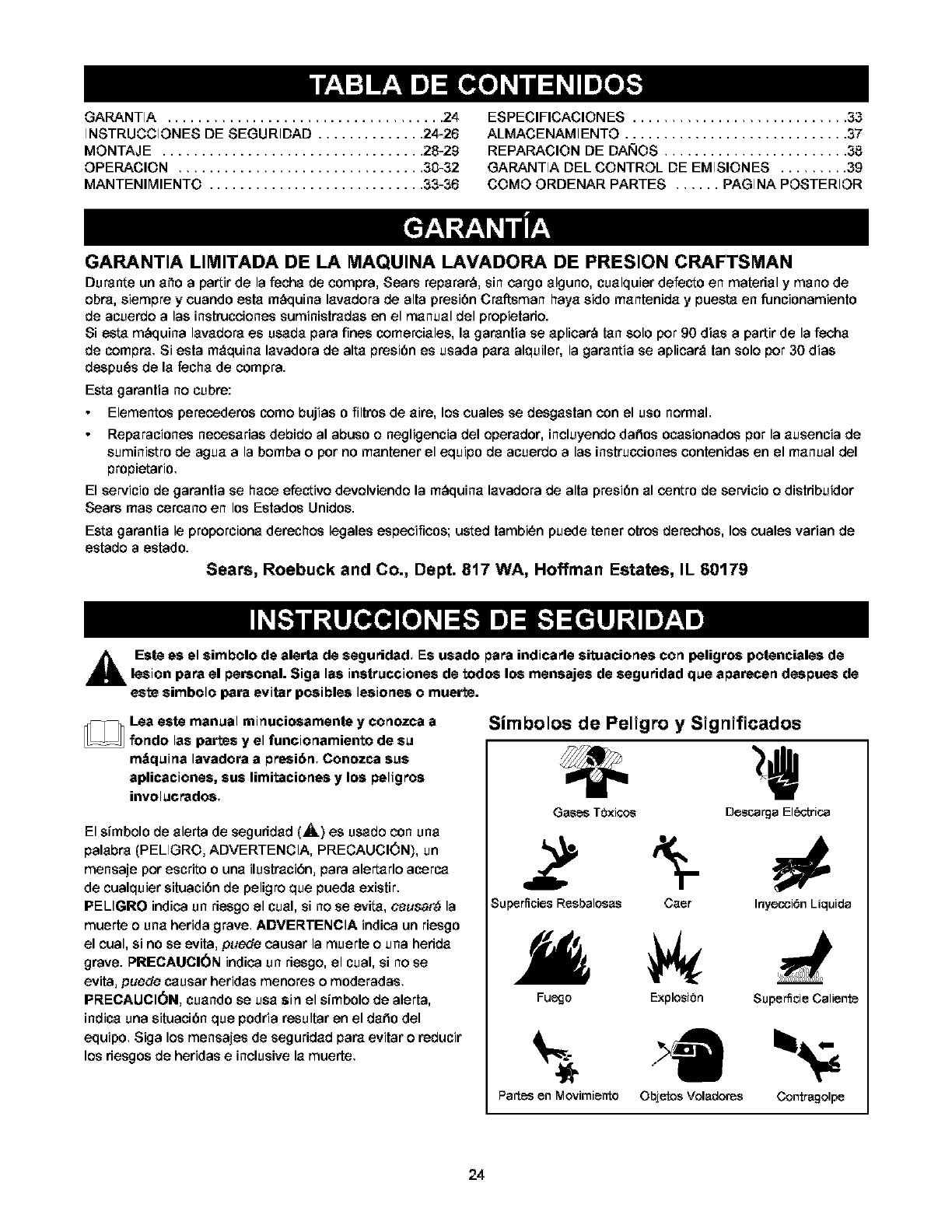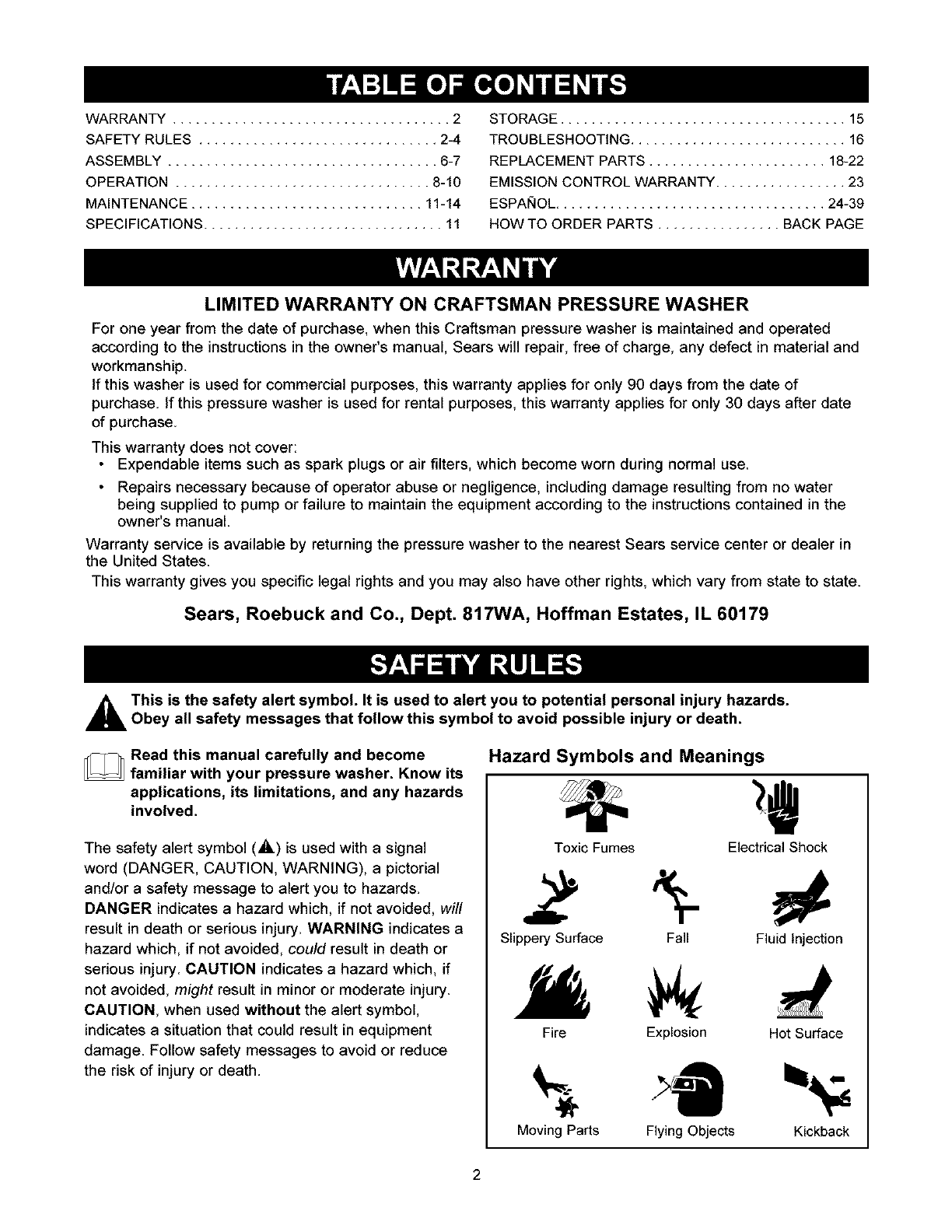 Warranty service is available by returning the pressure washer to the nearest Sears service center or dealer in
