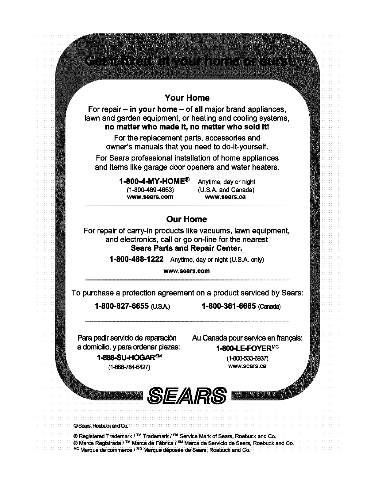 ®Registered Trademark/TM Trademark ISMService Mark of Sears, Roebuck andCo.