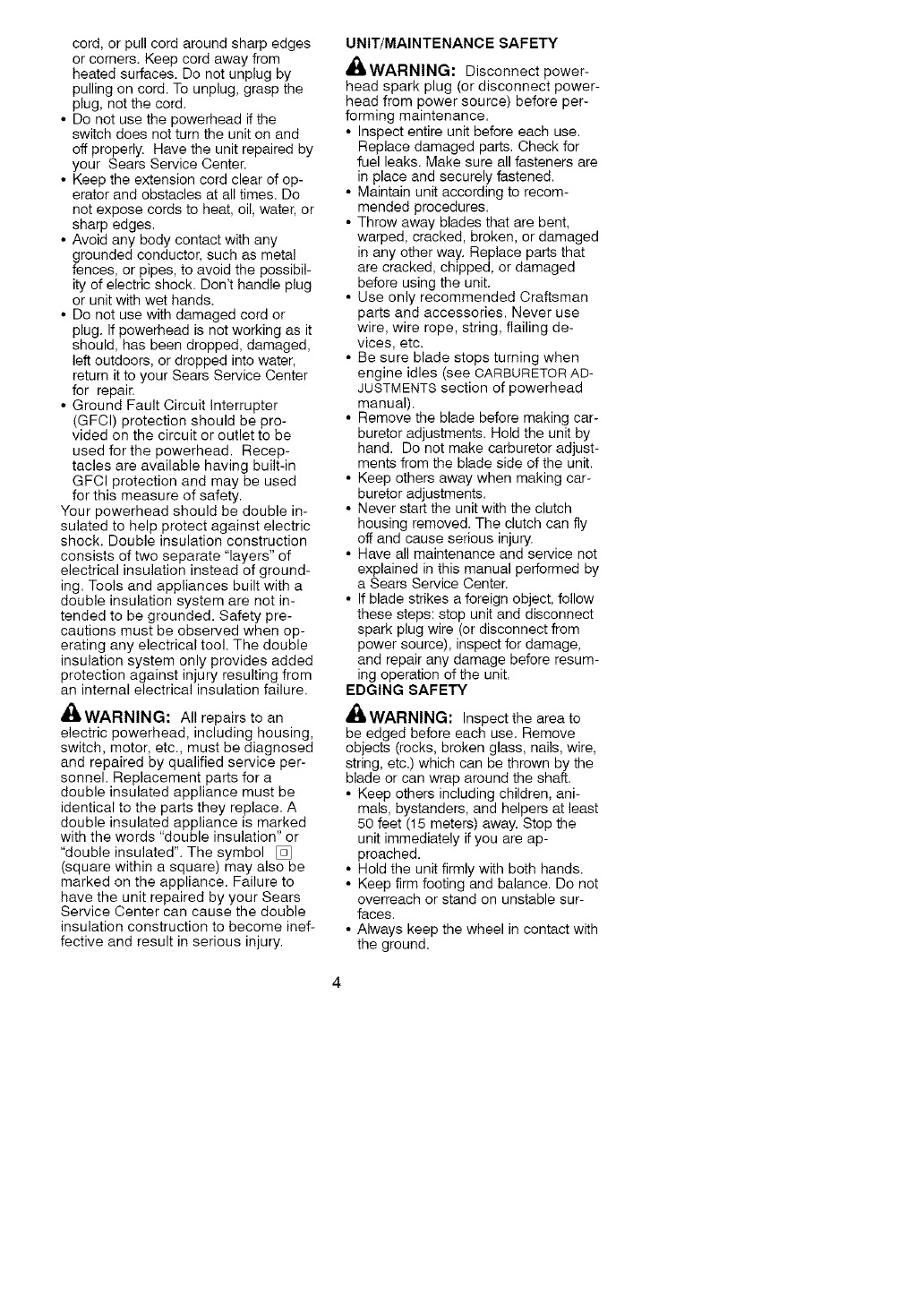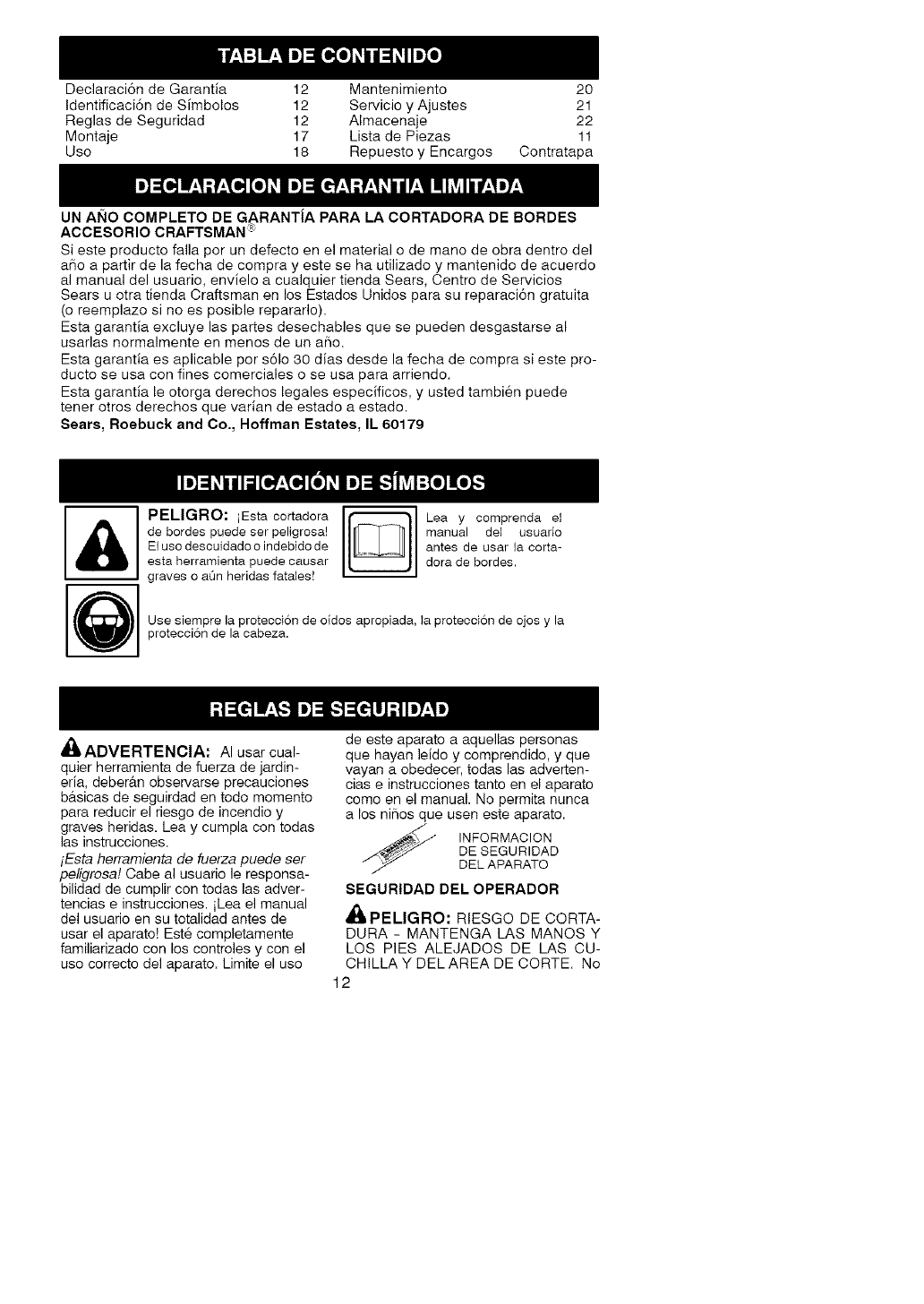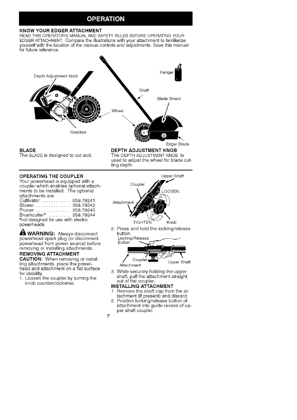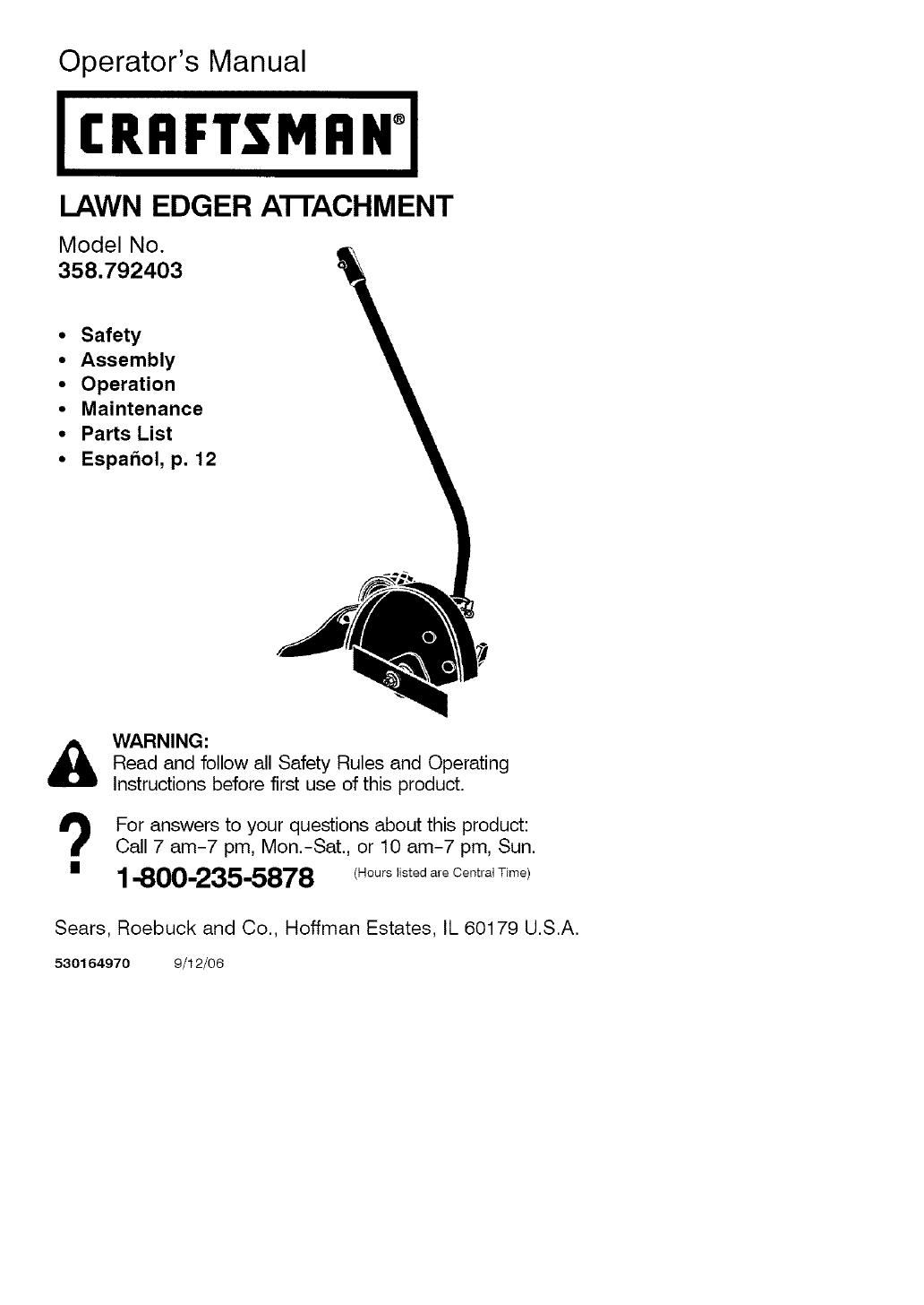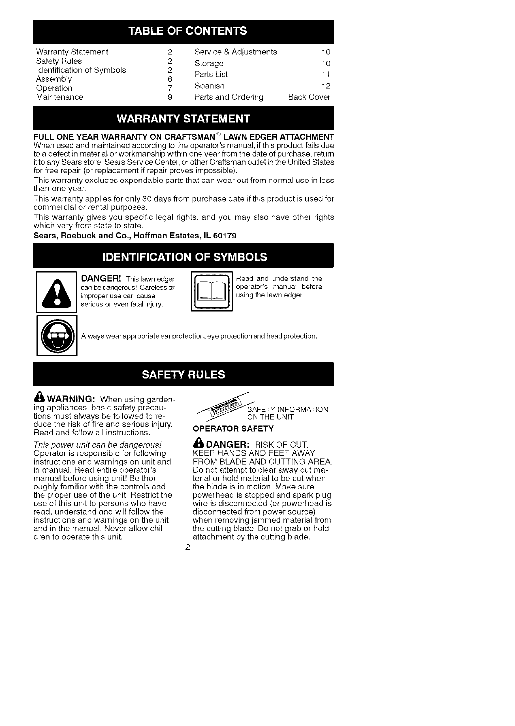 FULL ONE YEAR WARRANTY ON CRAFTSMAN _;LAWN EDGER ATTACHMENT