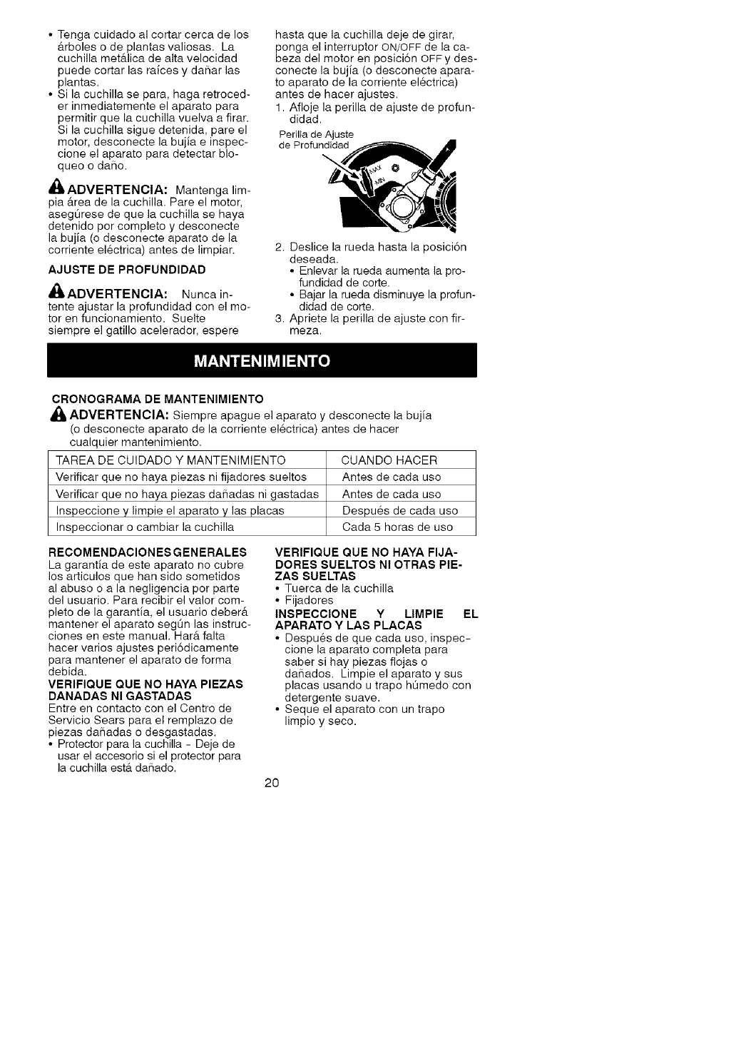 CUCHILLA en la secci6n SERVlCIO Y
