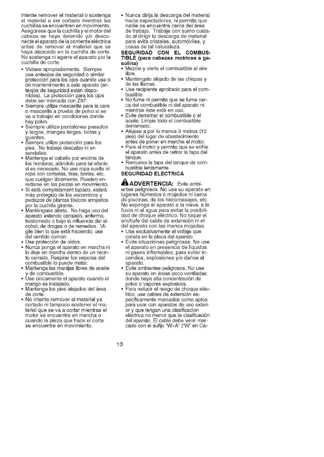 in manual. Read entire operator's