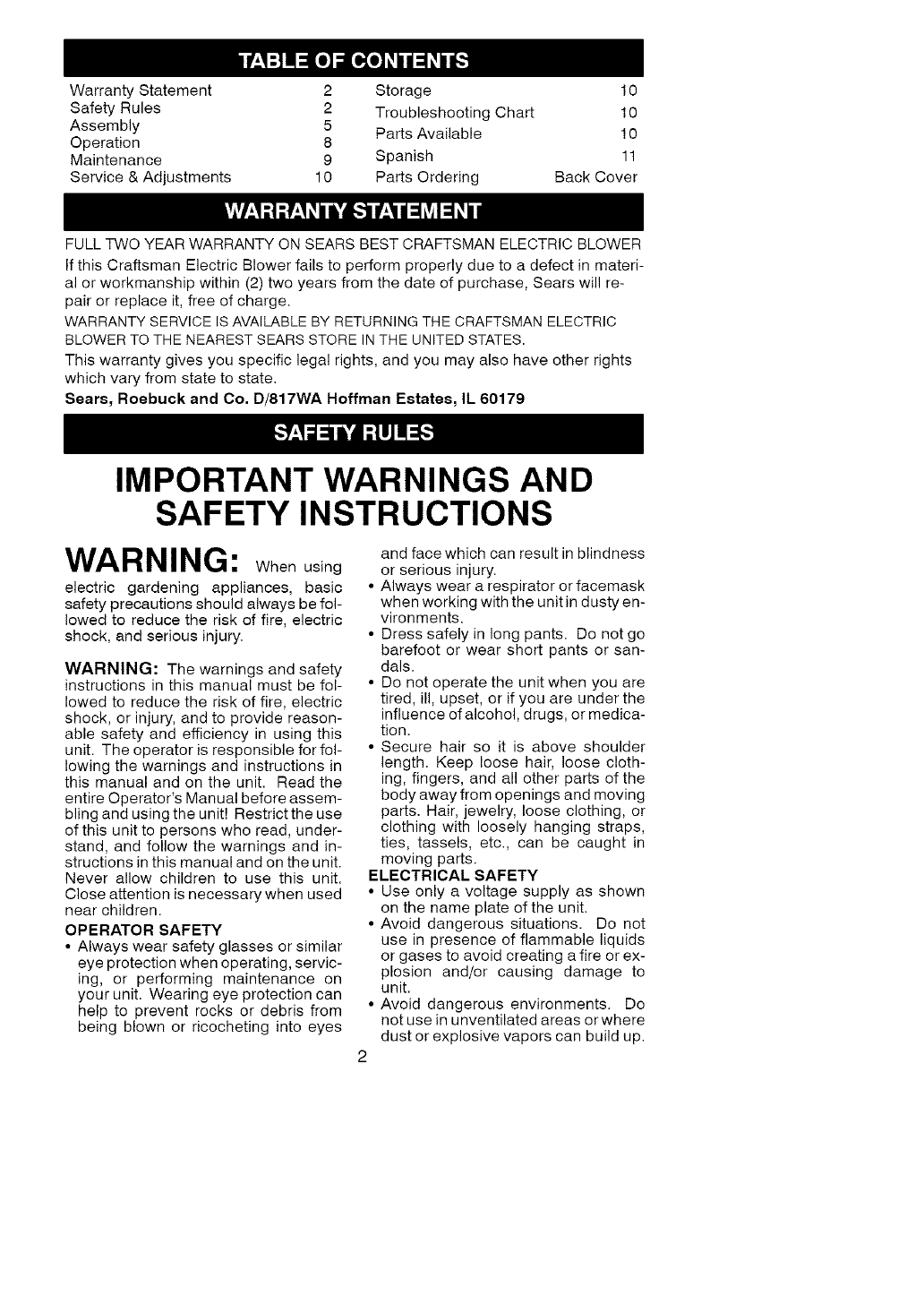 FULLTWOYEARWARRANTYONSEARSBESTCRAFTSMANELECTRICBLOWER