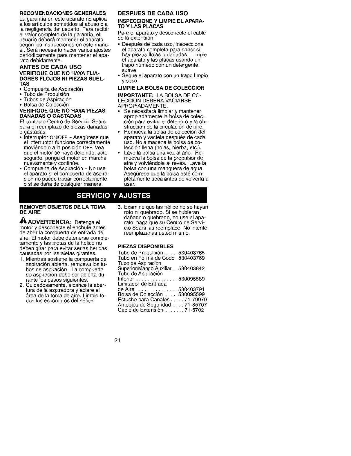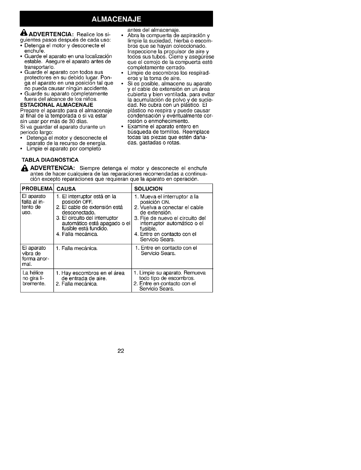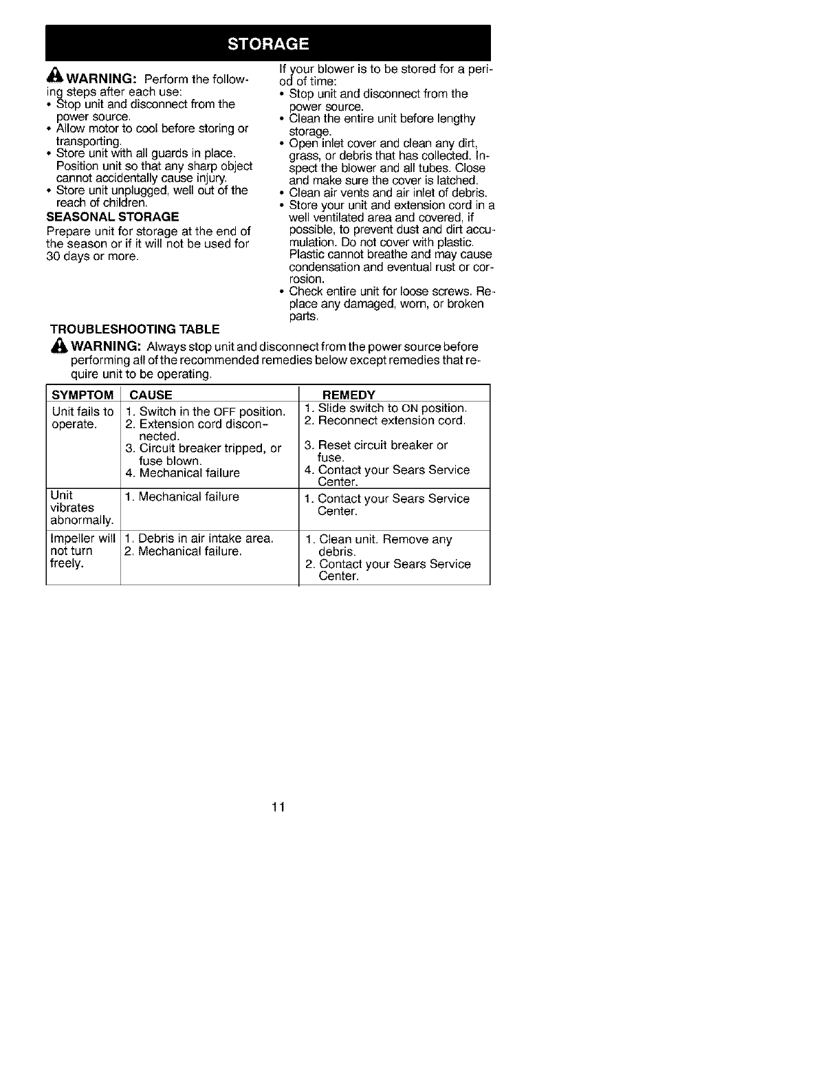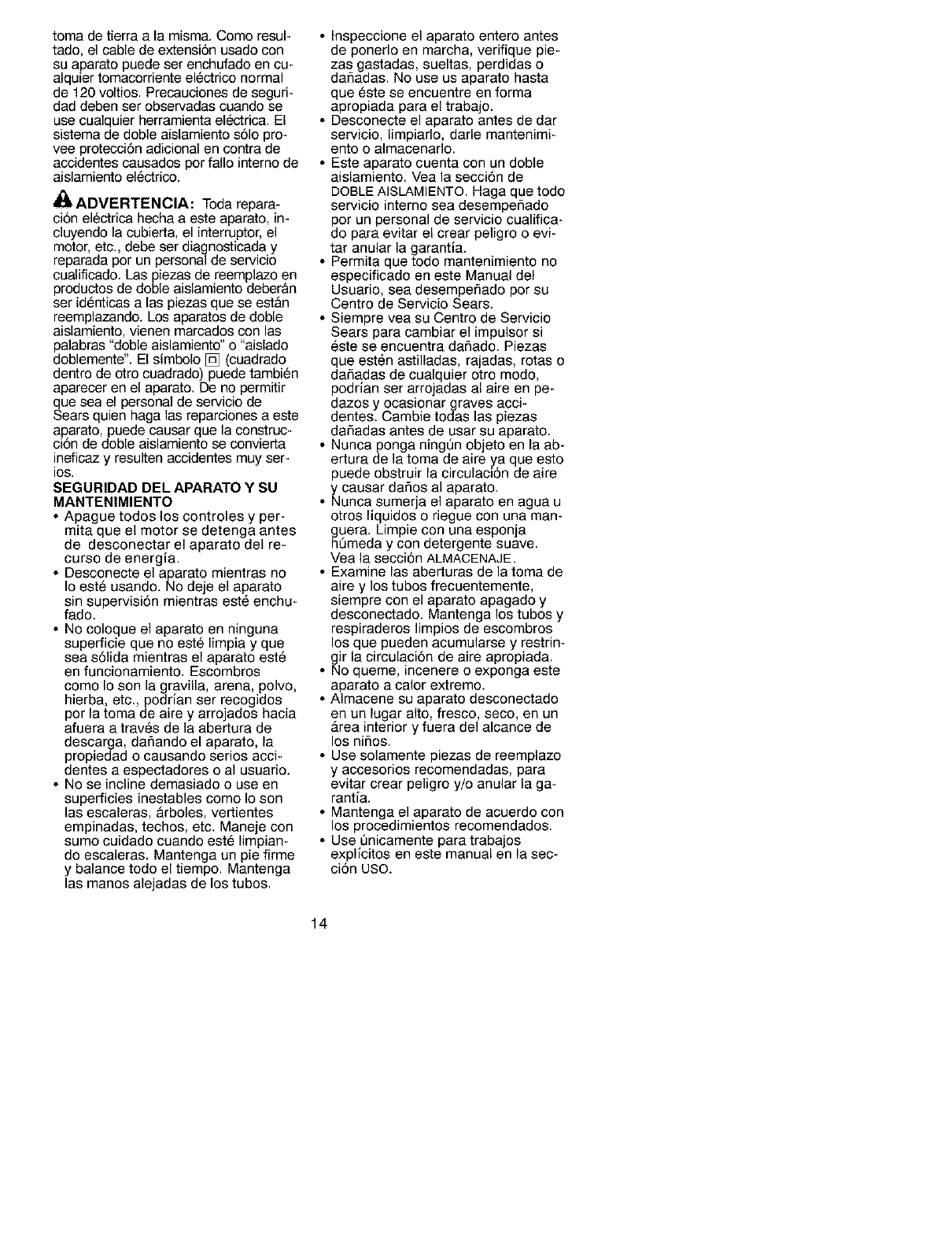 WARRANTY SERVICE IS AVAILABLE BY RETURNINGTHE CRAFTSMANELECTRIC BLOW-