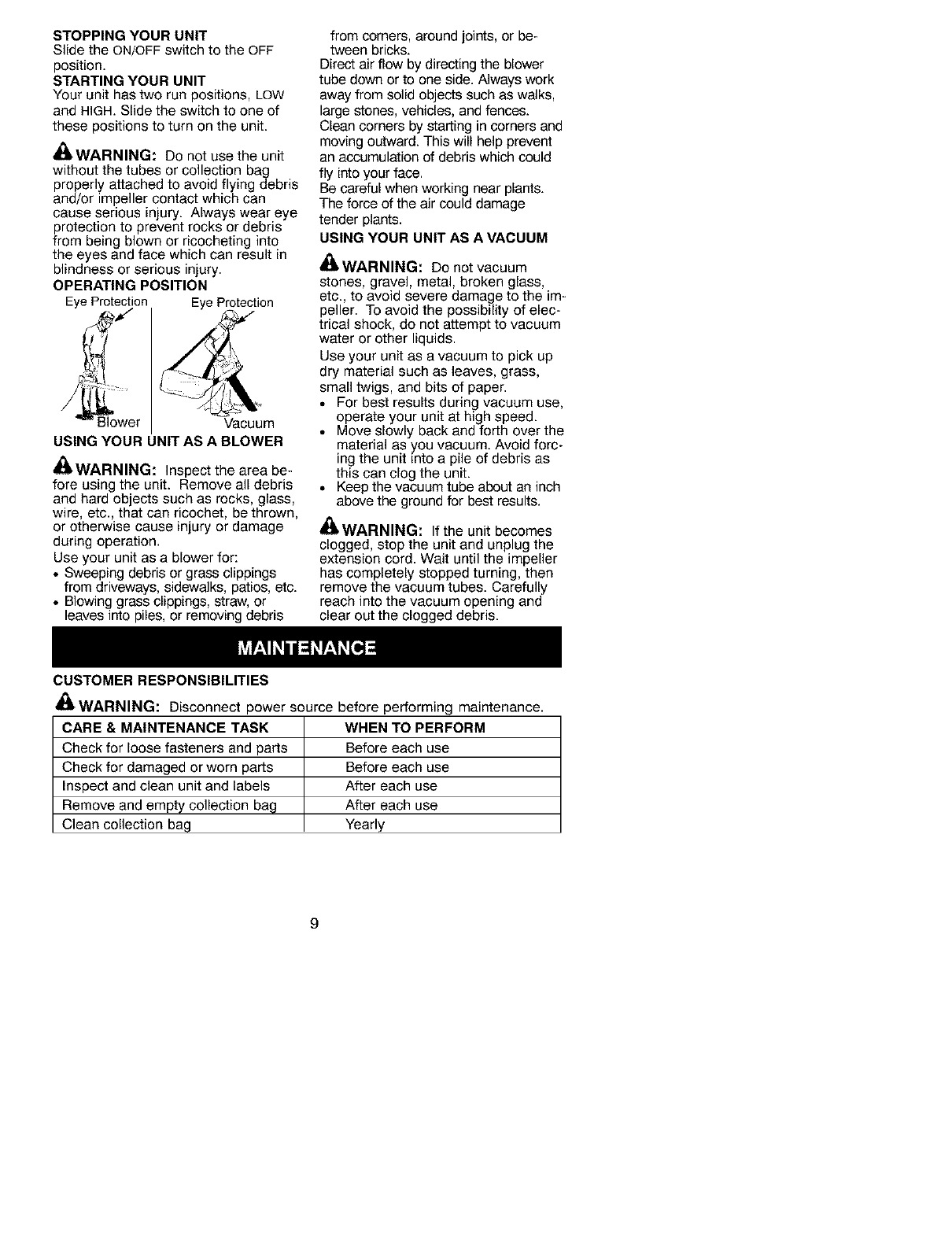 CRAFTSMAN Blower, Electric Manual L0212109 CRAFTSMAN Blower, Electric Owner's Manual, CRAFTSMAN Blower, Electric installation guides