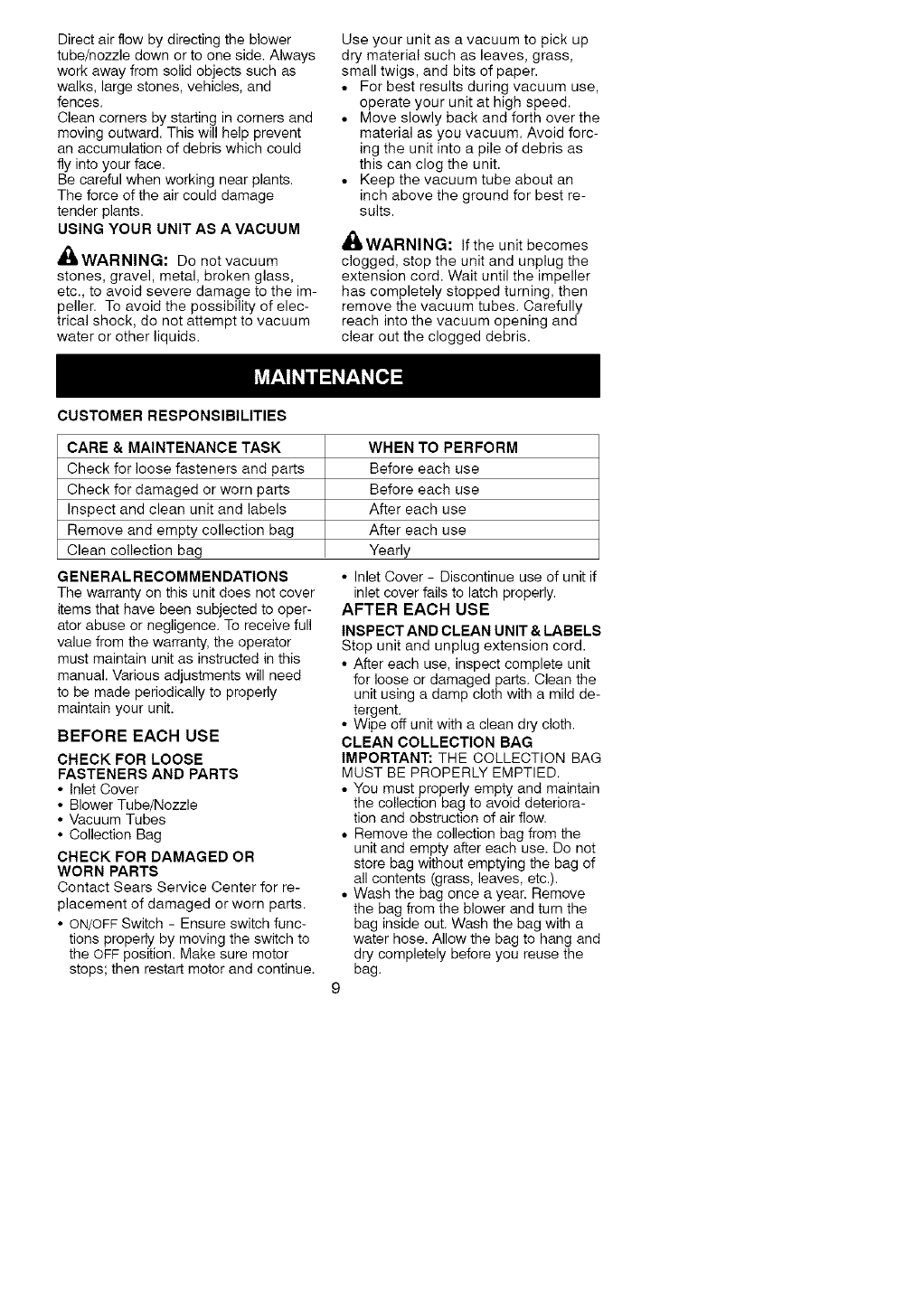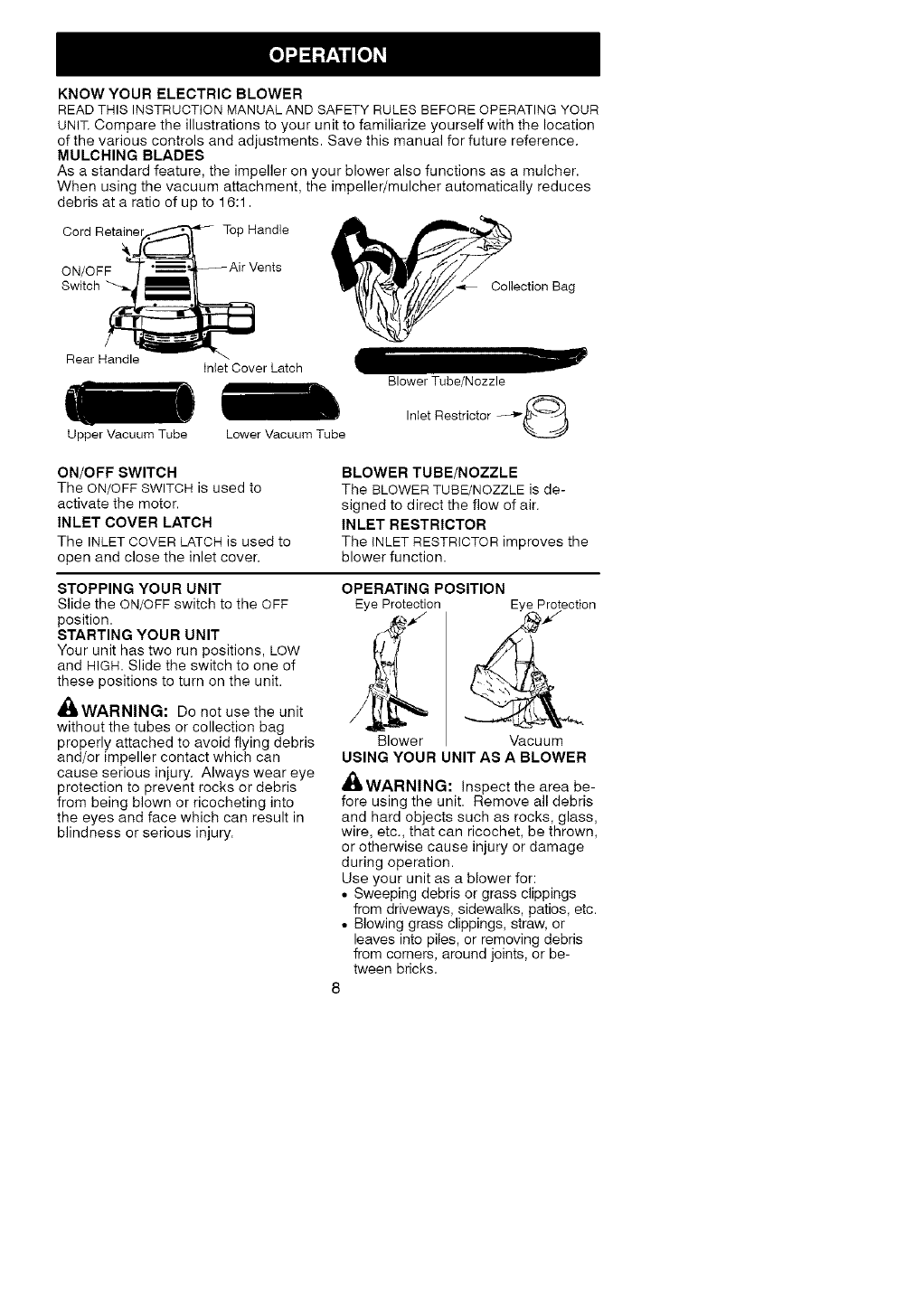 FULL ONE YEAR WARRANTY ON SEARS CRAFTSMAN ELECTRIC BLOWER