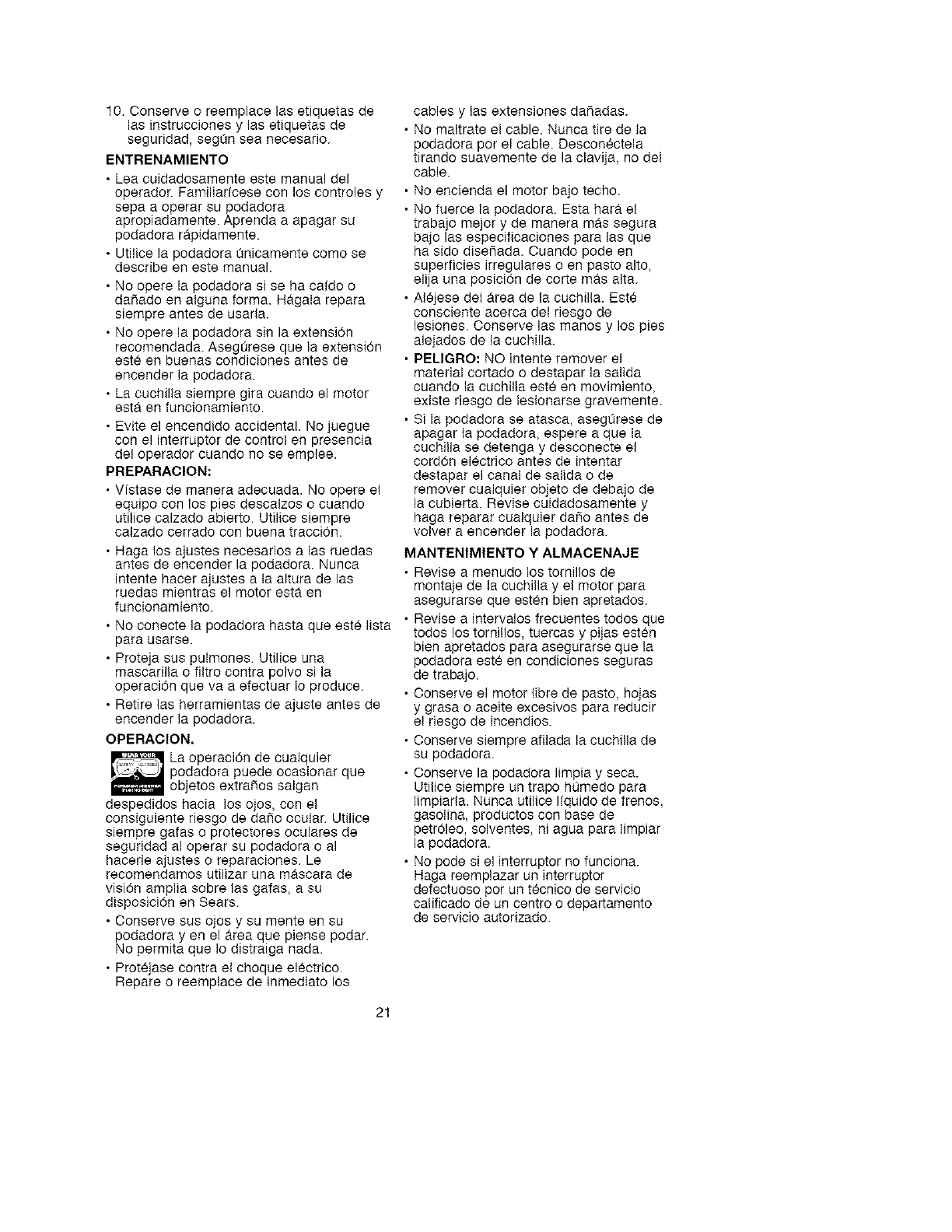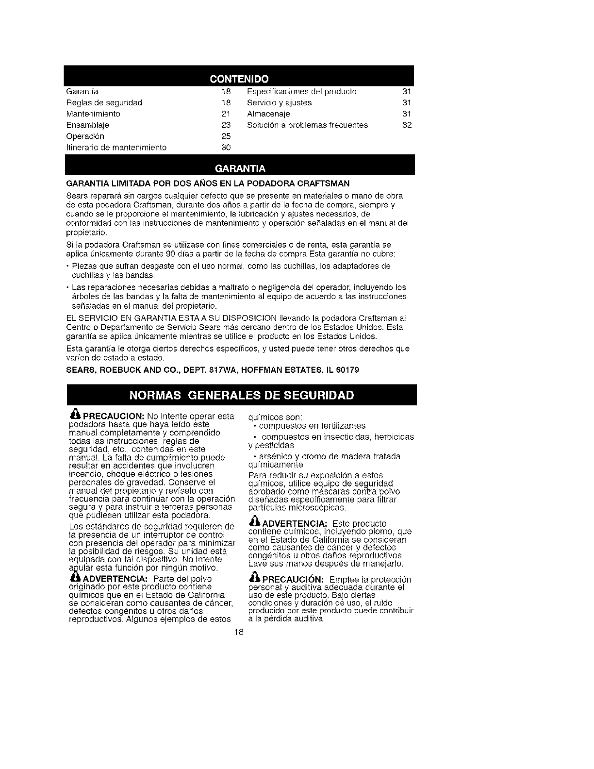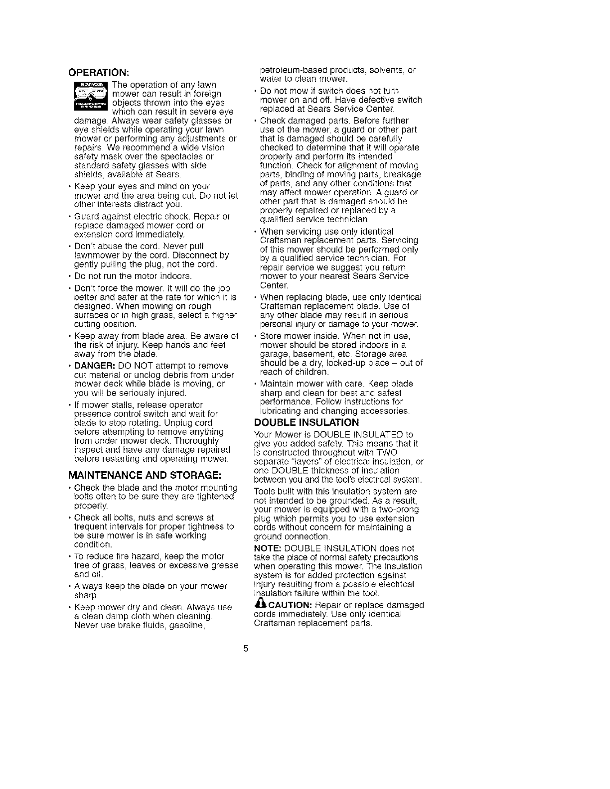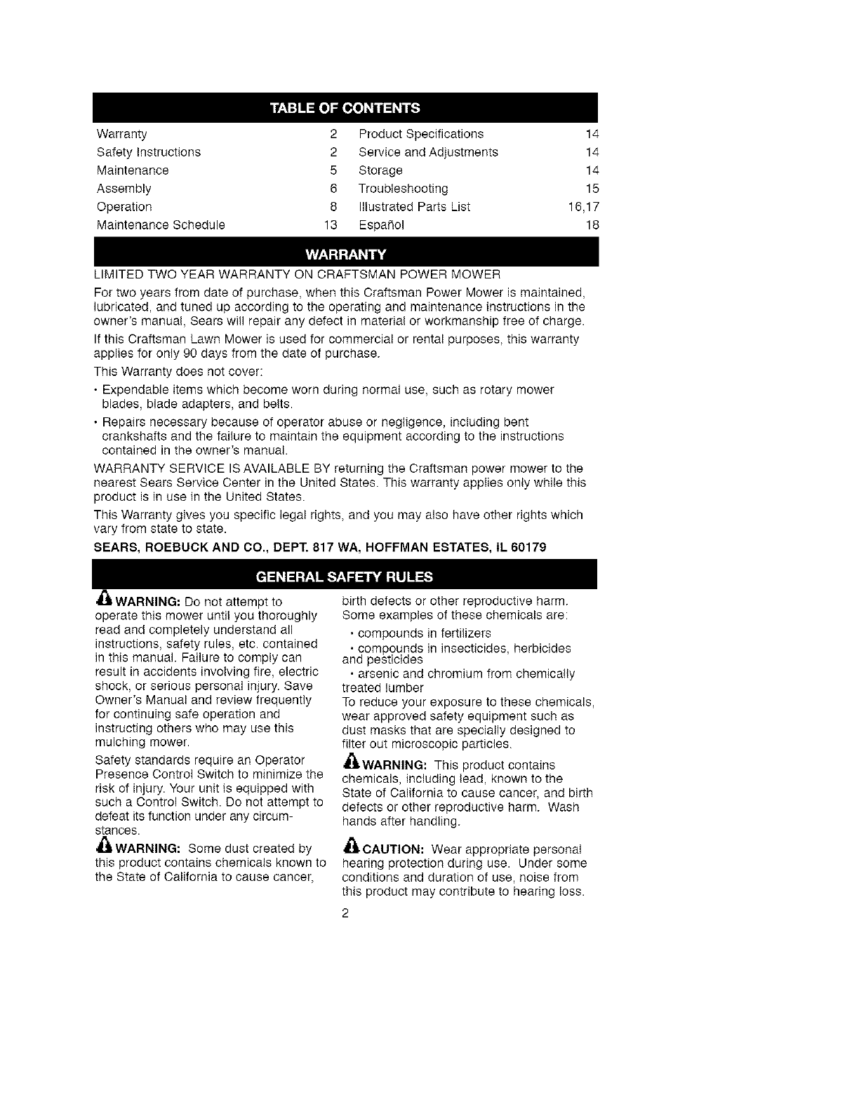 WARRANTYSERVICEISAVAILABLEBYreturningtheCraftsmanpowermowertothe