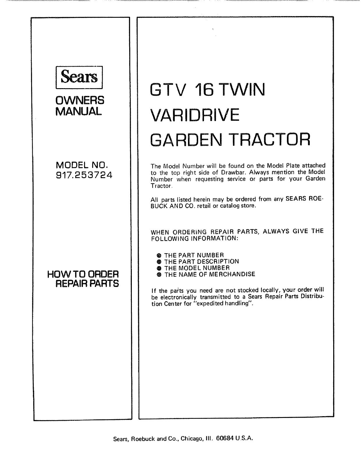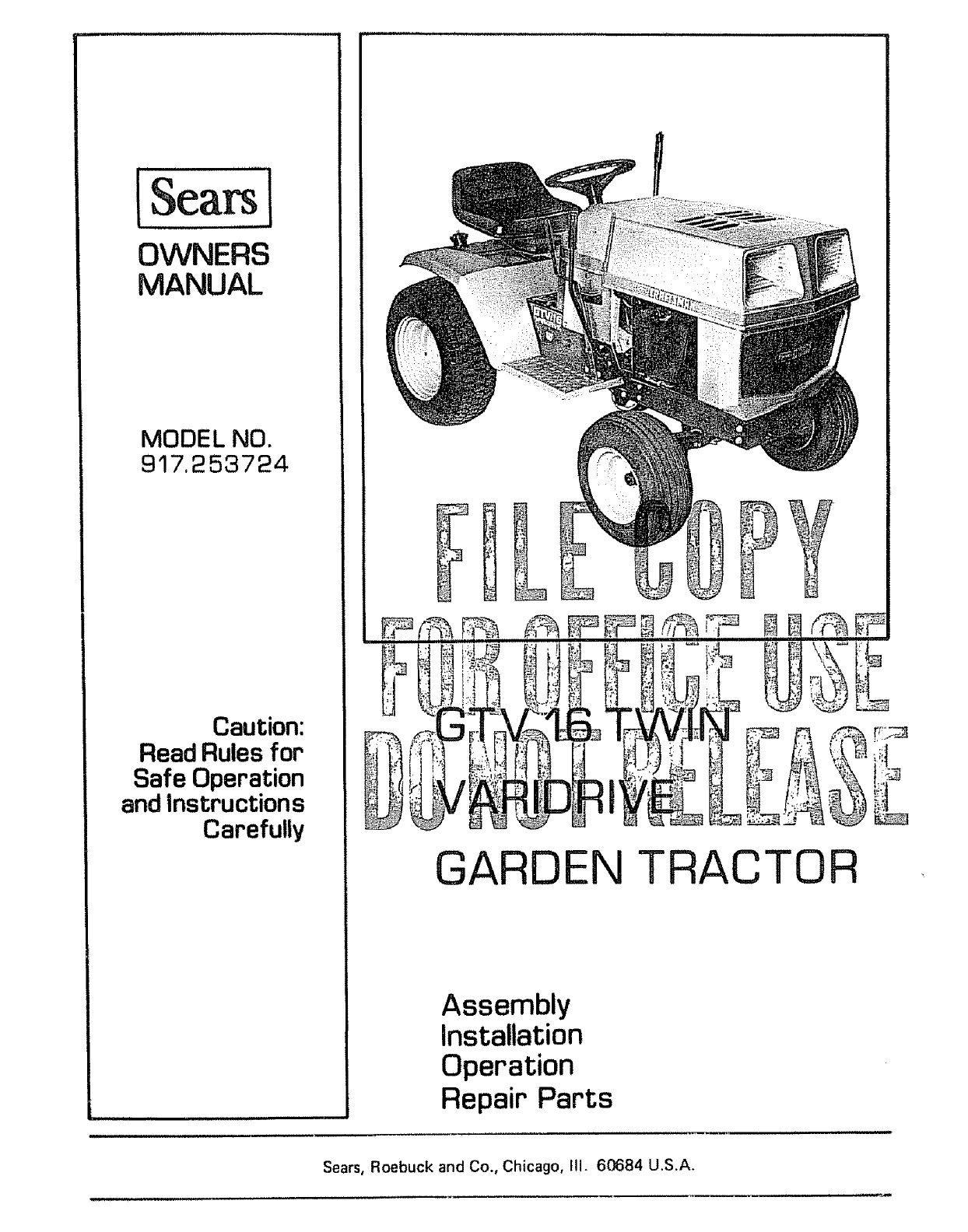 917253724 917253724 CRAFTSMAN GARDEN TRACTOR - Manuals and Guides L0805318 View the owners manual for your CRAFTSMAN GARDEN TRACTOR #917253724. Home:Lawn & Garden Parts:Craftsman Parts:Craftsman GARDEN TRACTOR Manual