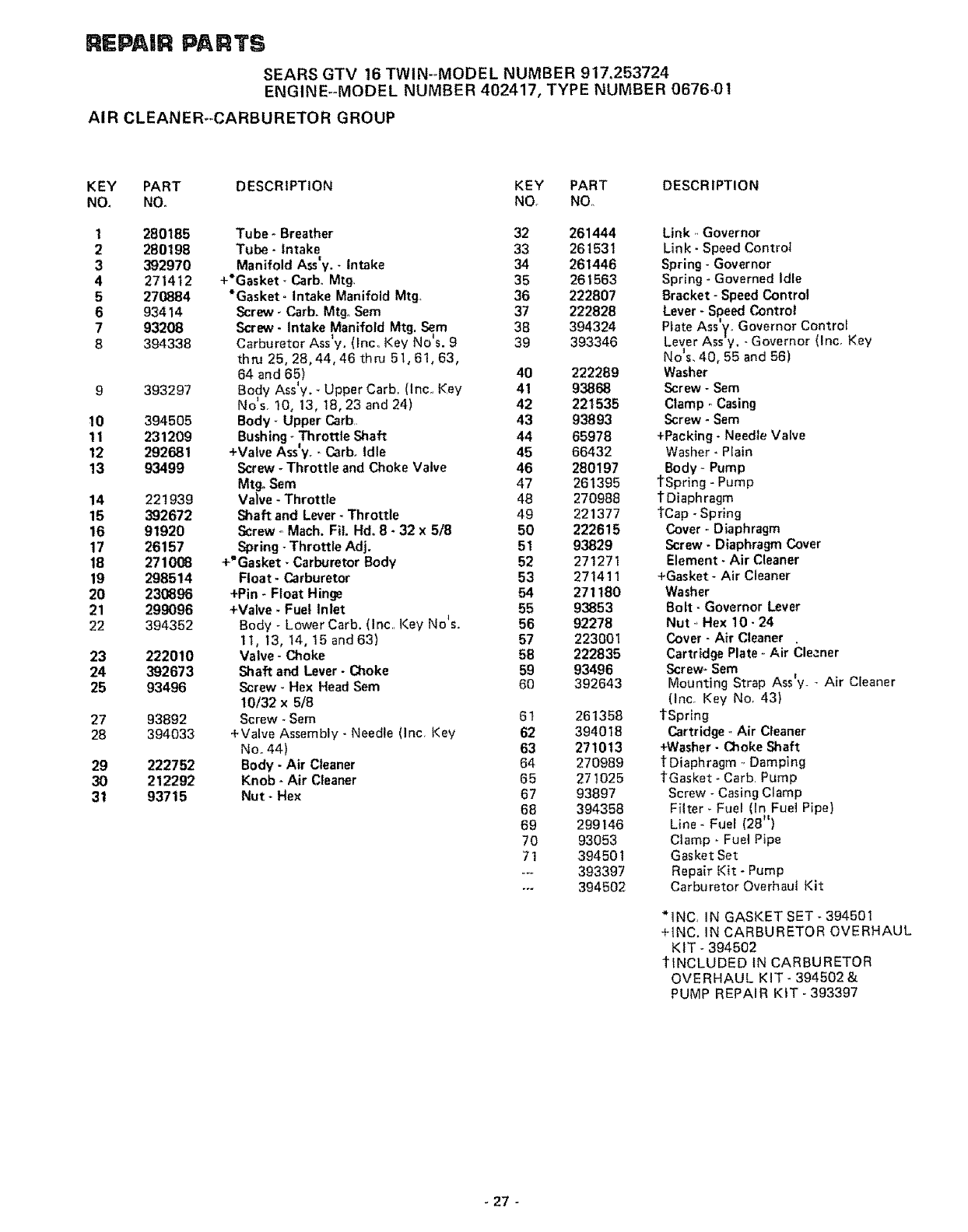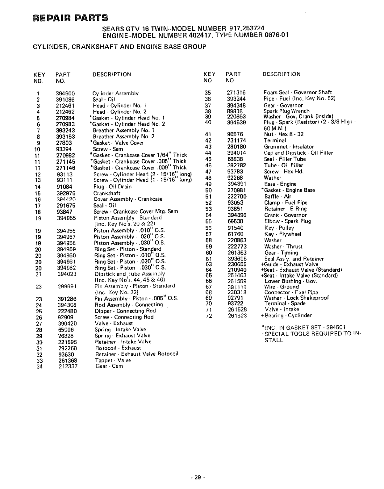 ENGINE-MODEL NUMBER 402417, TYPE NUMBER 0676-01