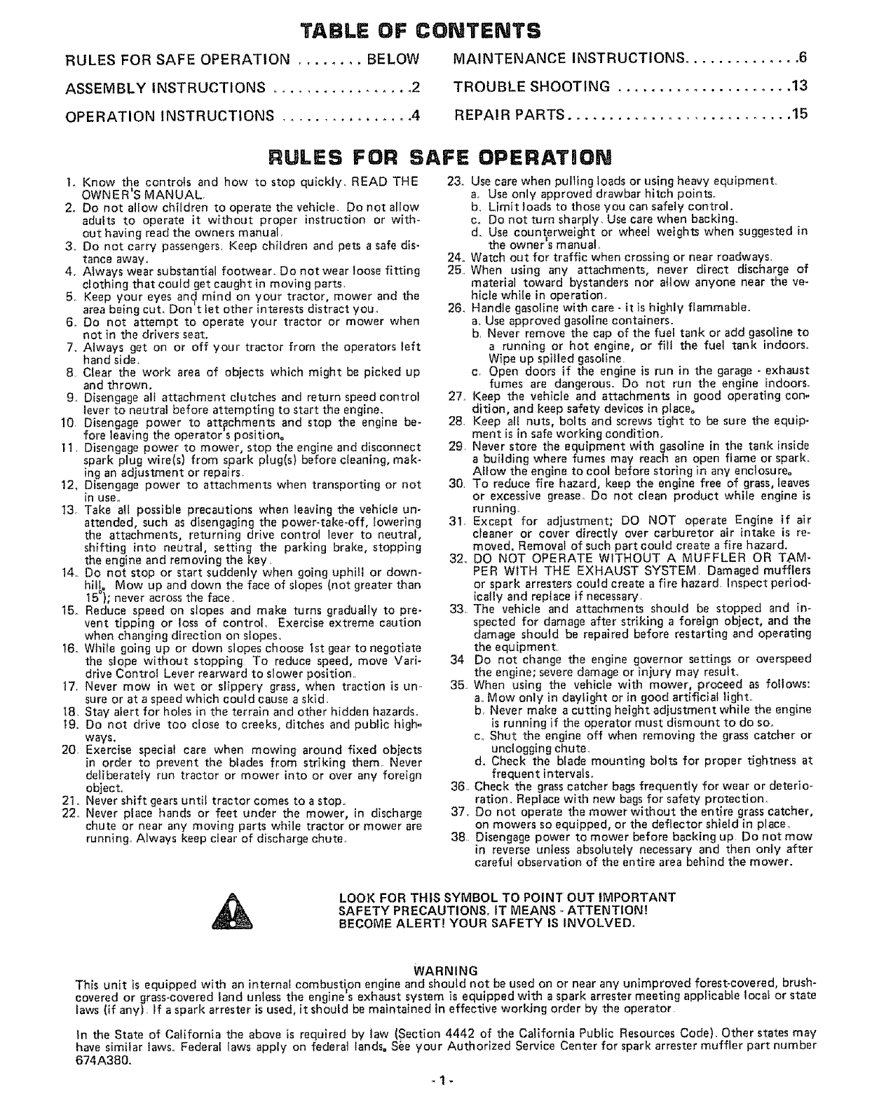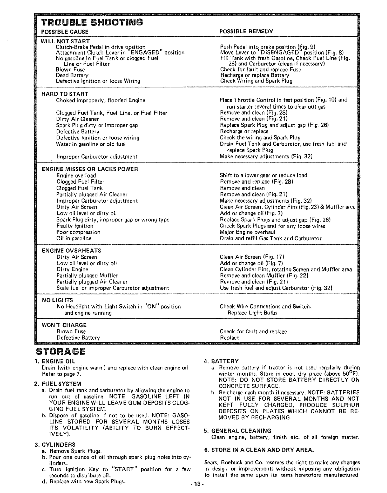 repair any defect in material or workmanship in this Garden Tractor, except the battery, at no charge.
