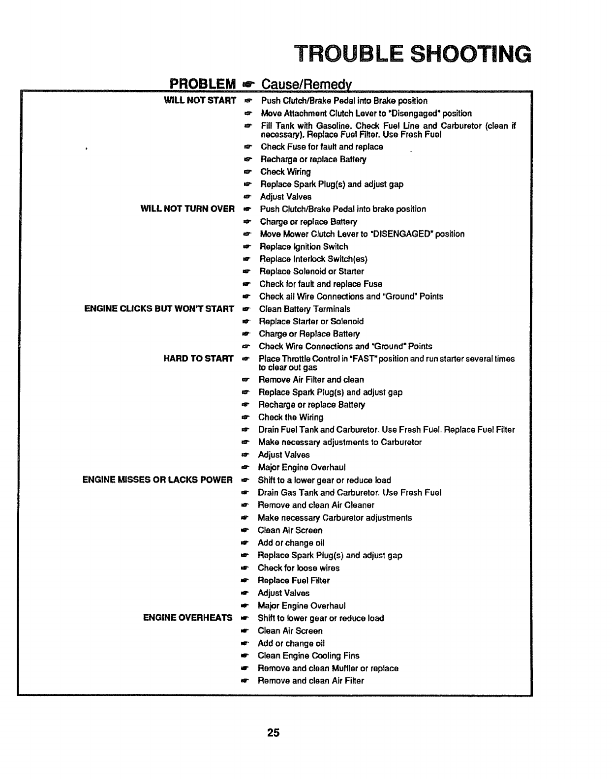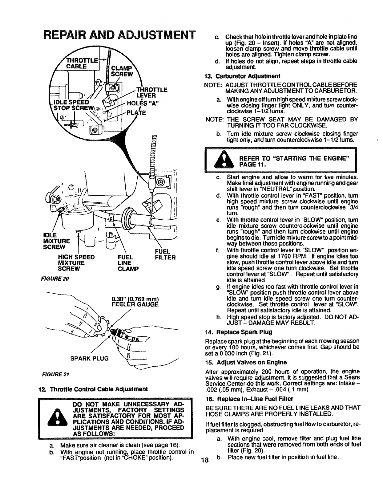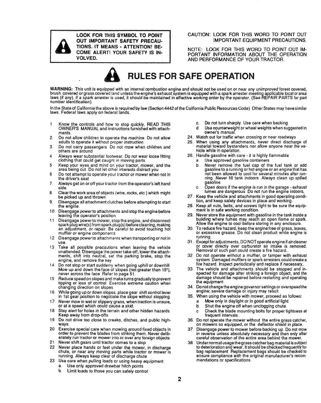 laws (if any). If a spark arrestor is used, it should be maintained in effective working order by the operator..(See REPAIR PARTS for part