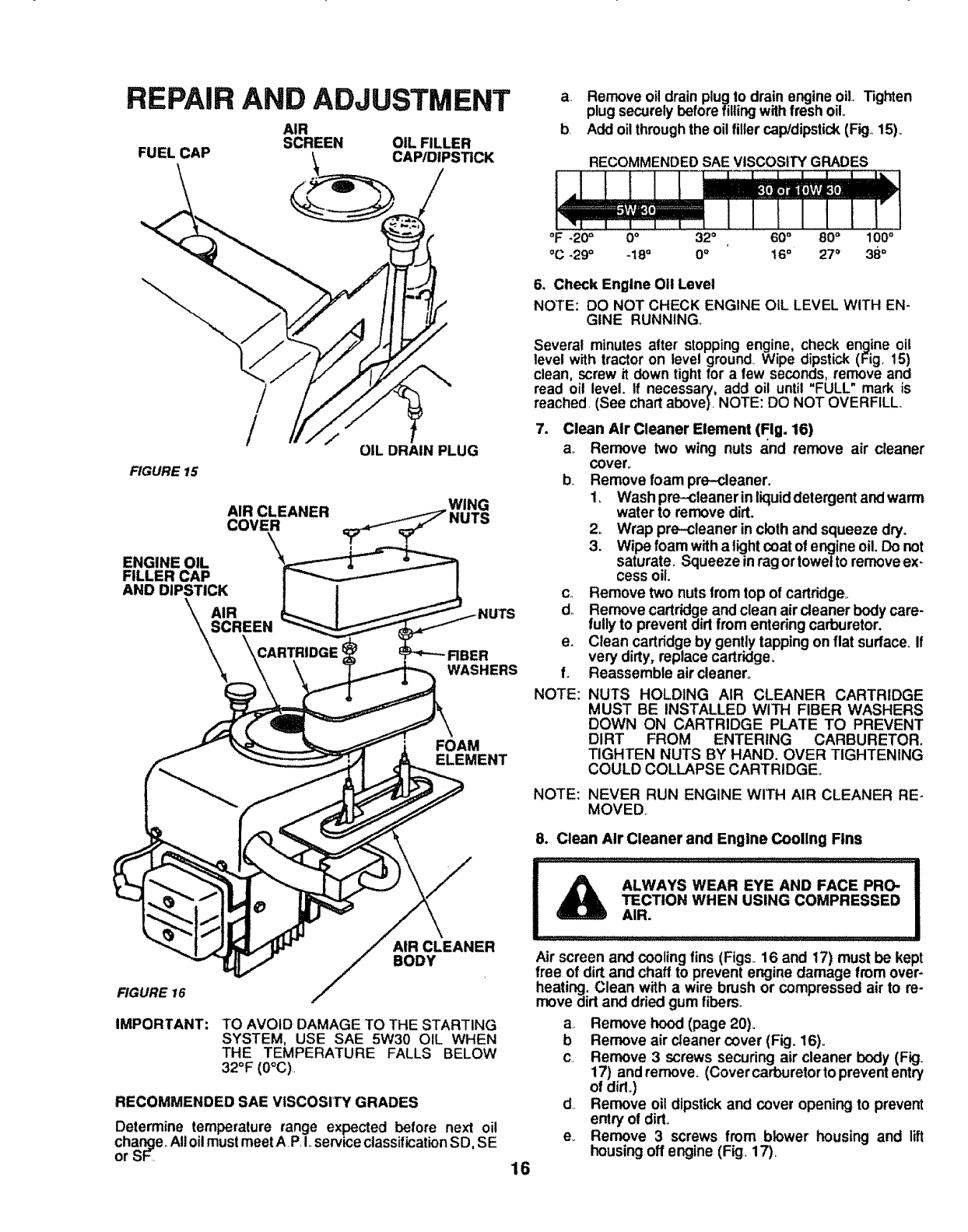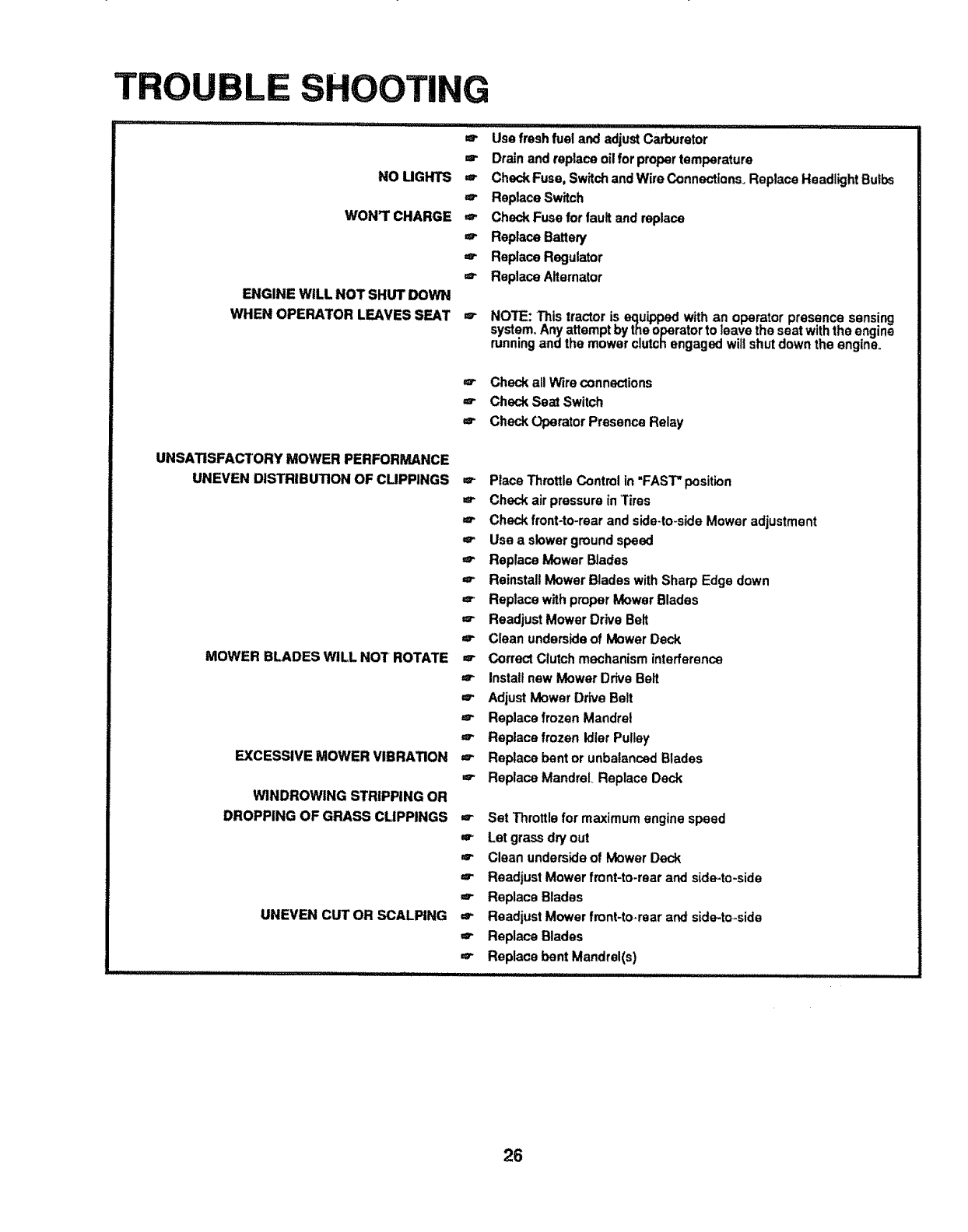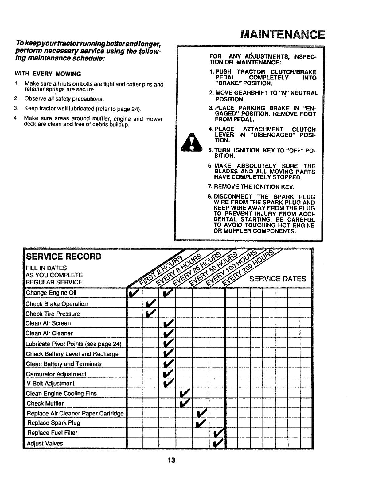 laws (if any). If a spark arrestor is used, it should be maintained in effective working order by the operator..(See REPAIR PARTS for part