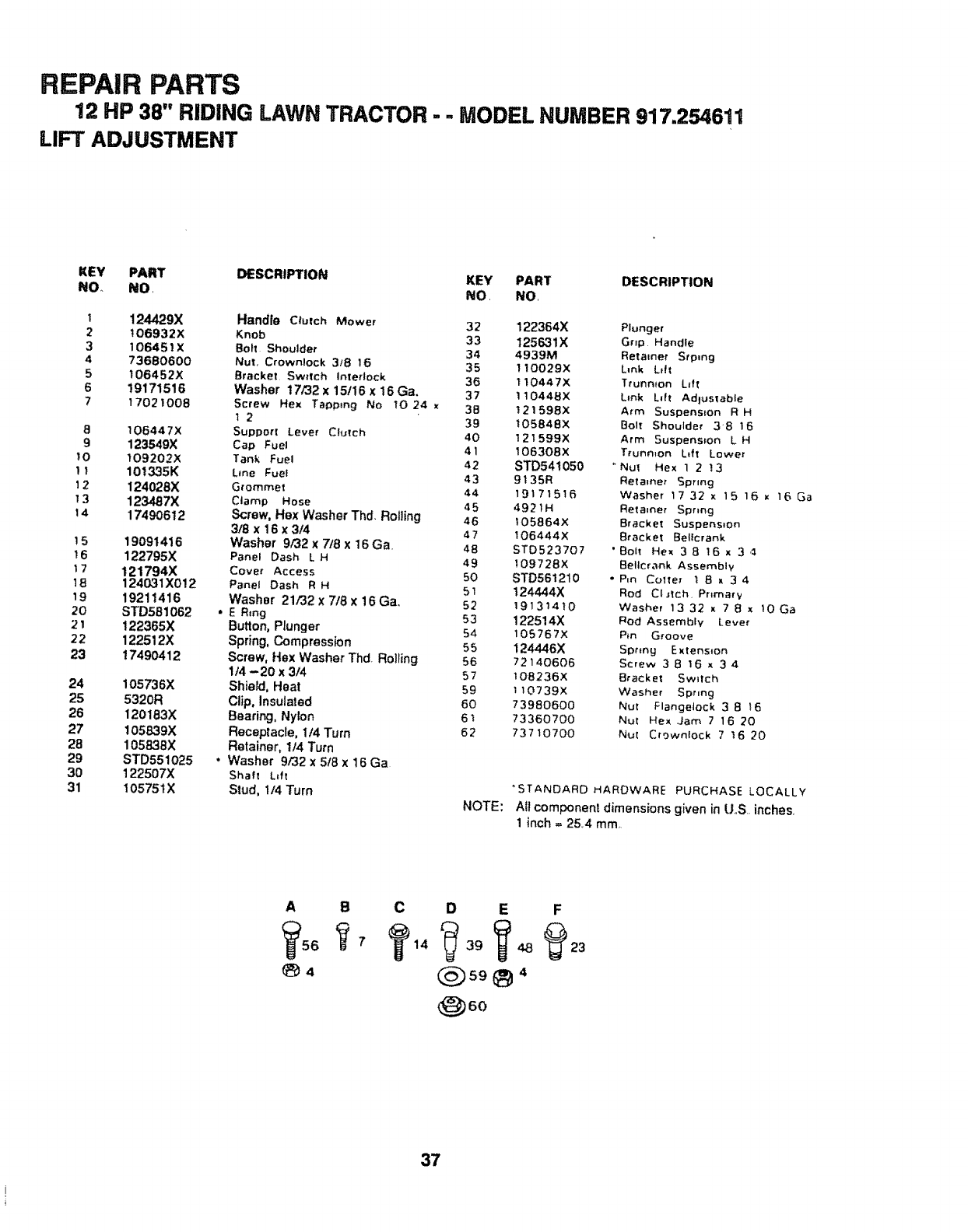 areas for reseeding° 40 inch rear mount: Stock number 71_24313. 38 inch front mount: Stock number 71-24301_