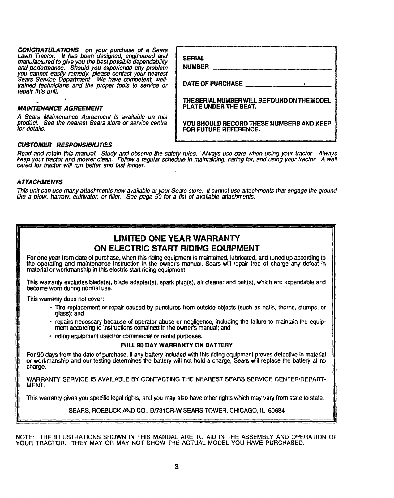All parts listed herein may be ordered from any Sears, Roebuck and Co_