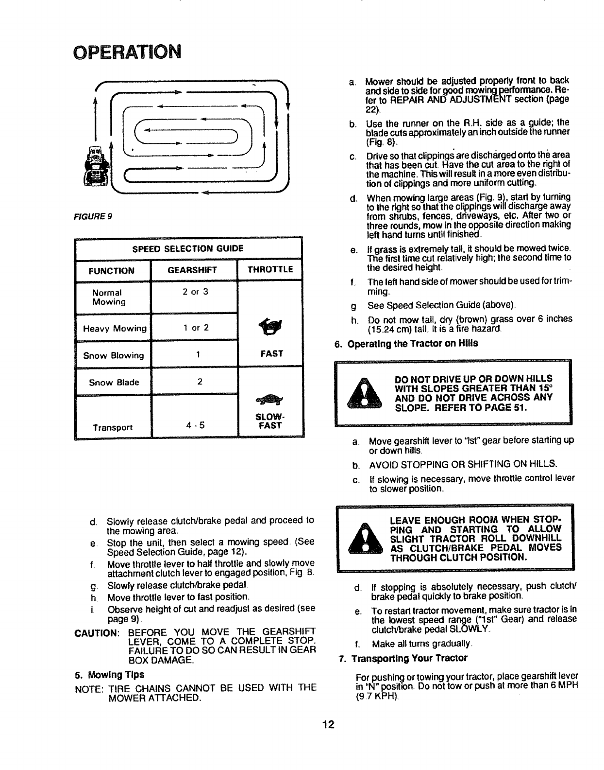 _i /_ Operate your Tractor up and down the face of slopes (not I
