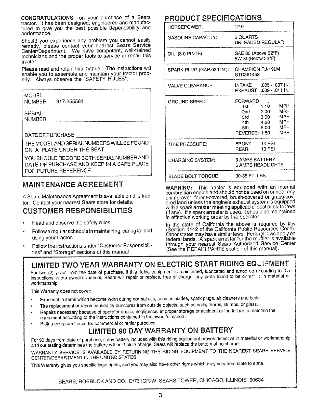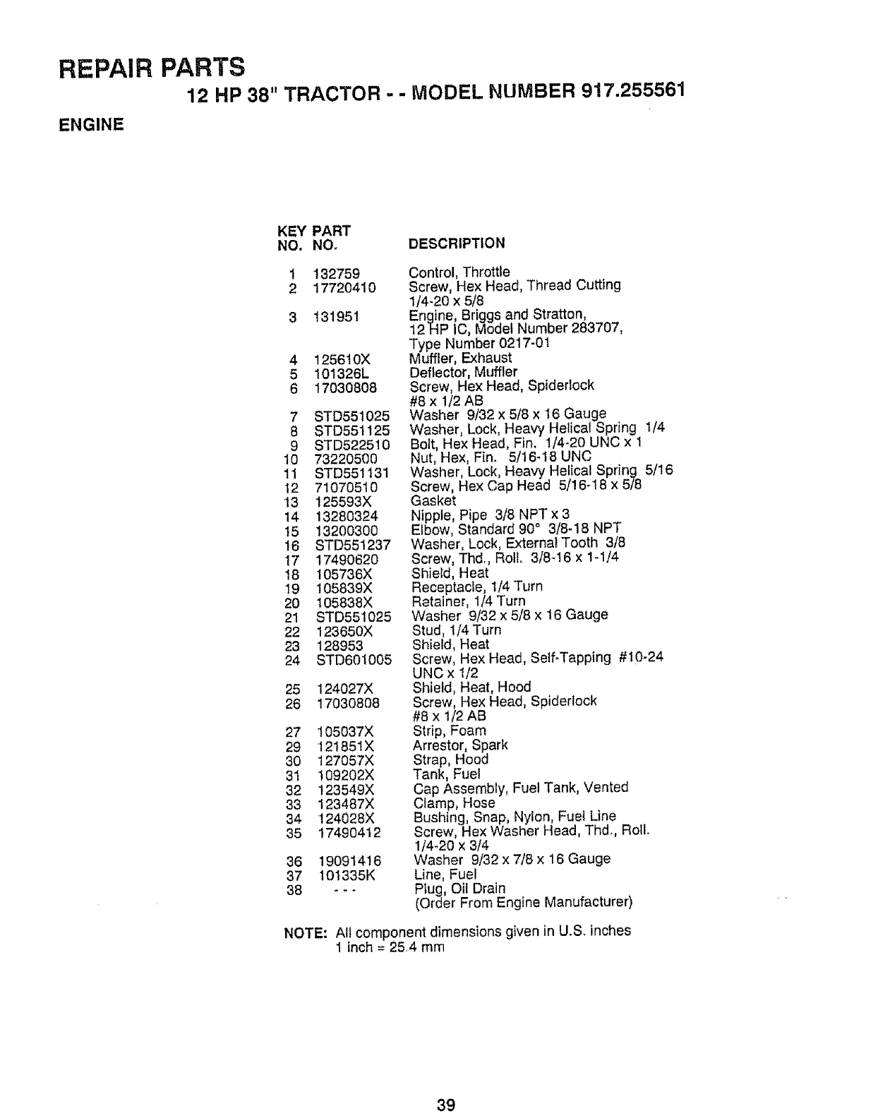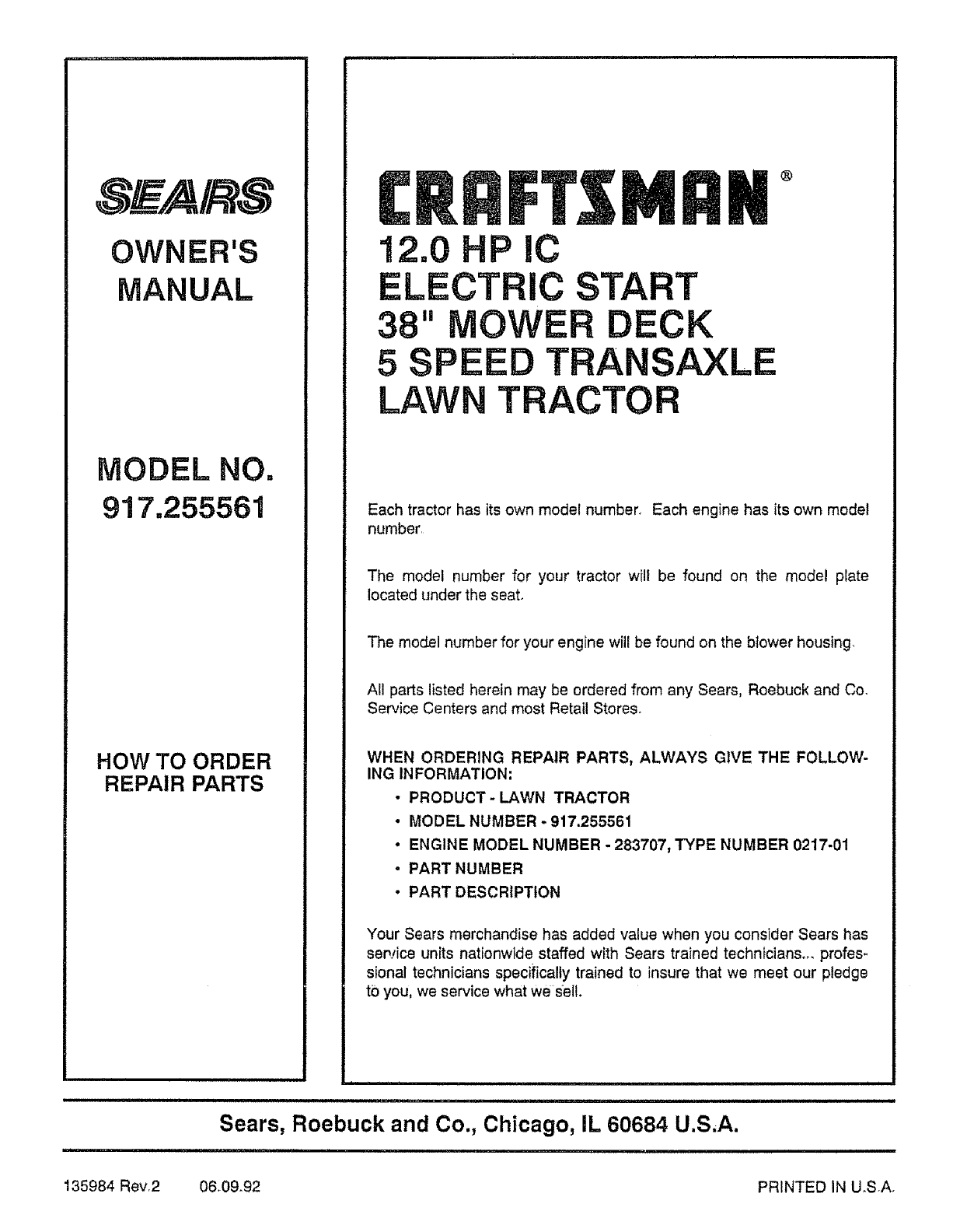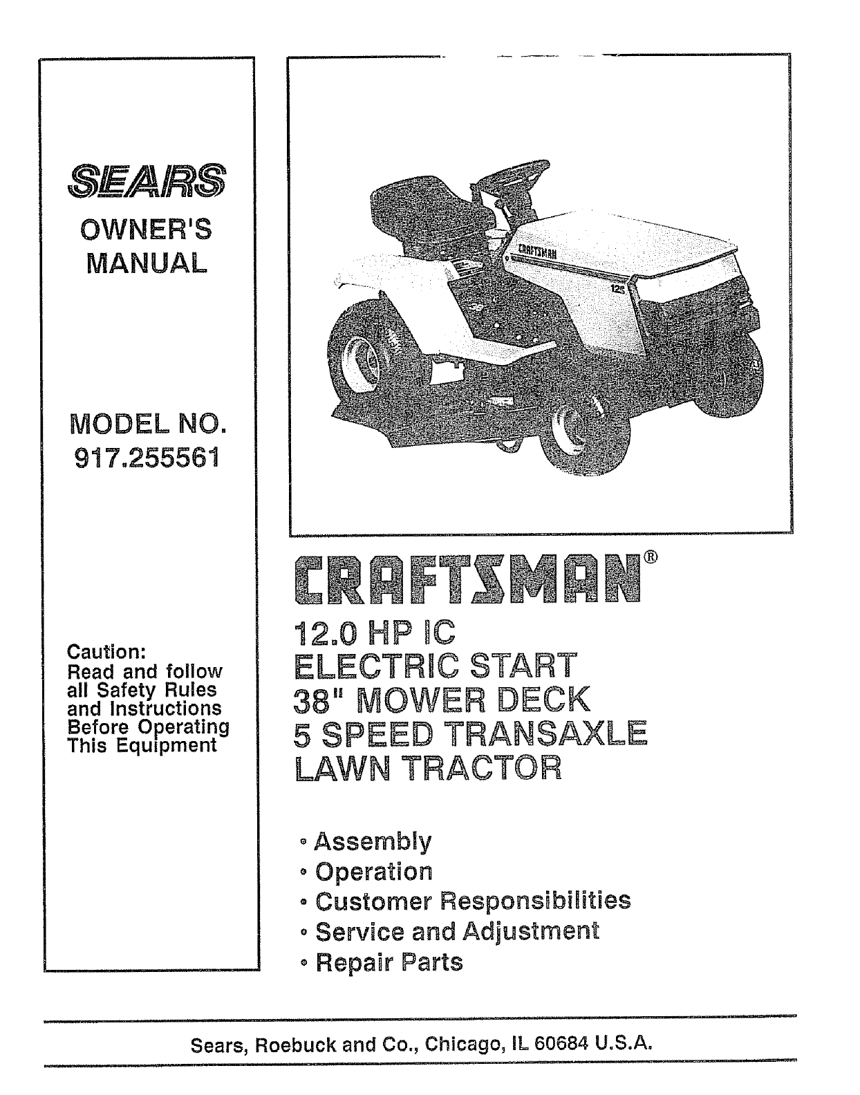 917255561 917255561 CRAFTSMAN Lawn, Tractor - Manuals and Guides L0707326 View the owners manual for your CRAFTSMAN Lawn, Tractor #917255561. Home:Lawn & Garden Parts:Craftsman Parts:Craftsman Lawn, Tractor Manual