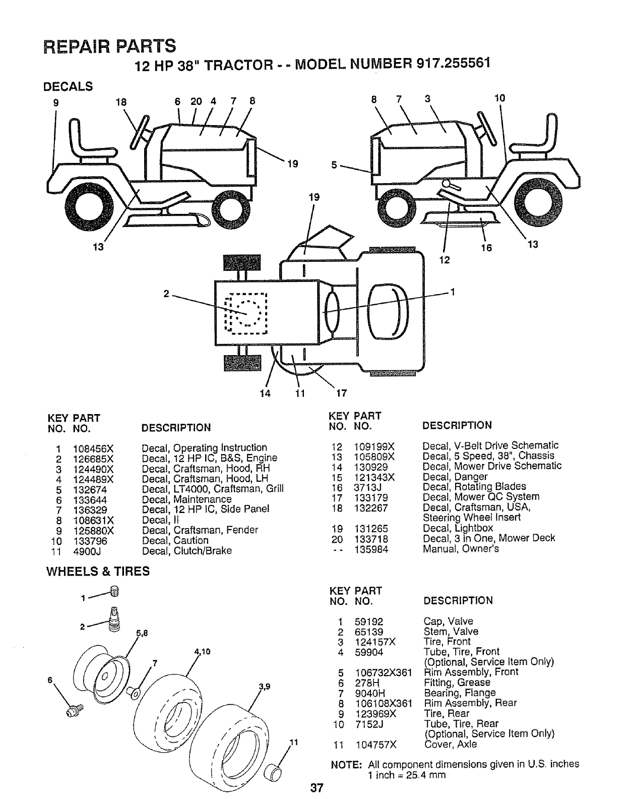 All parts listed herein may be ordered from any Sears, Roebuck and Co.