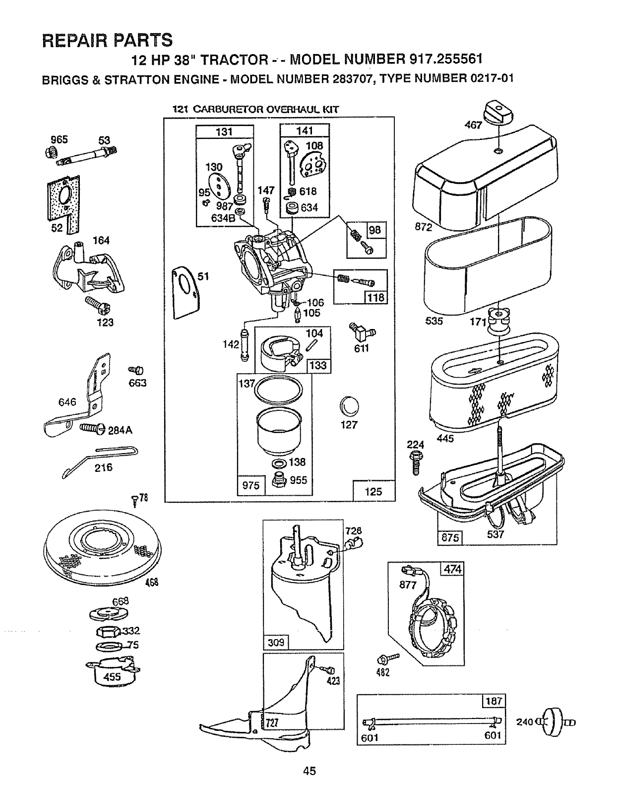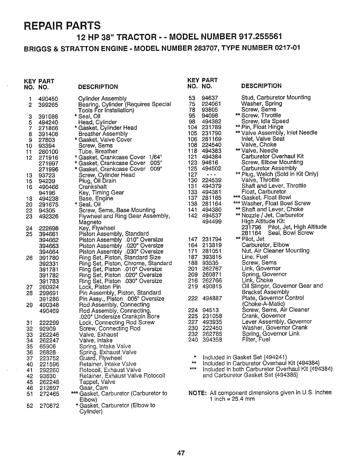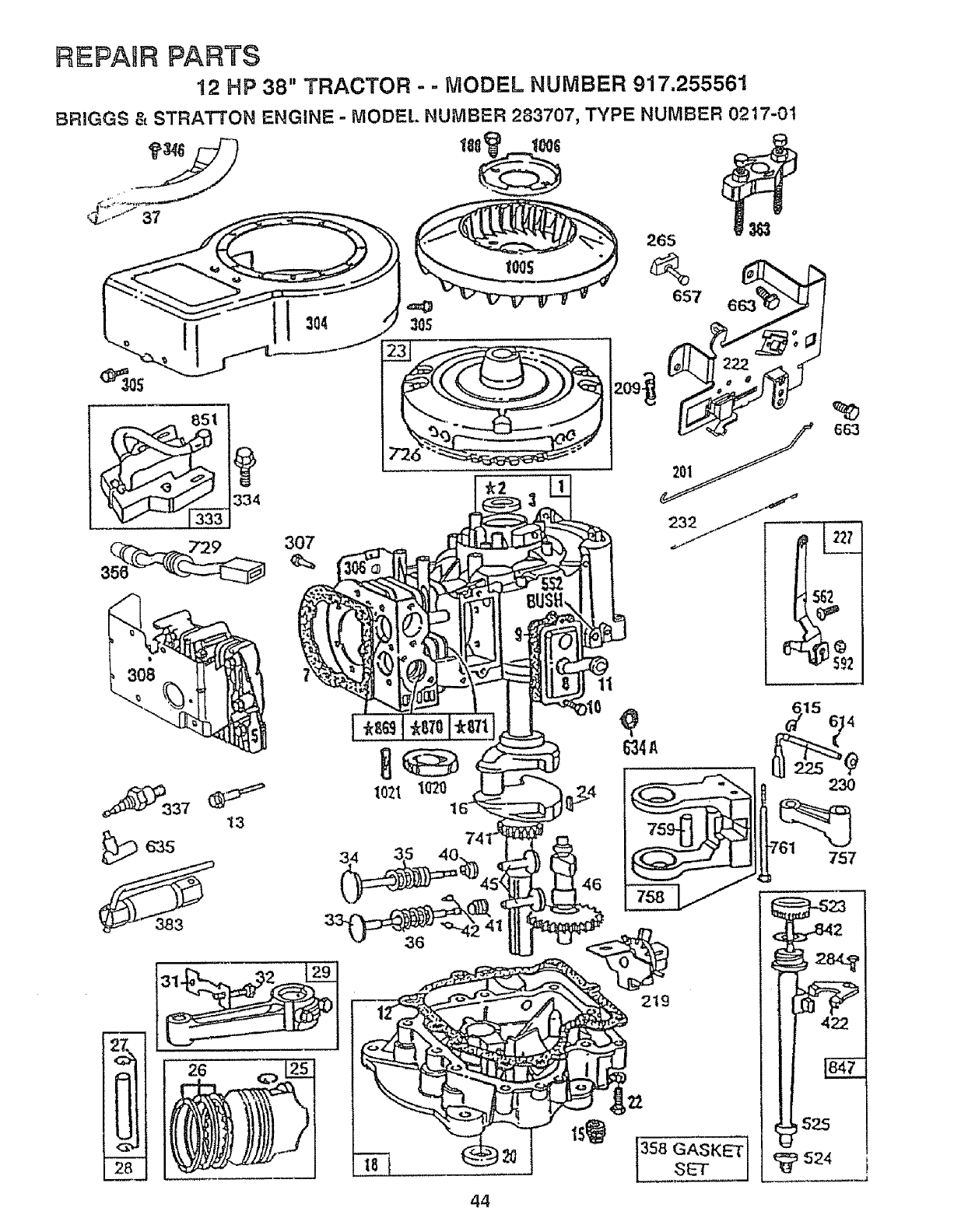 • ENGINE MODEL NUMBER - 283707, TYPE NUMBER 0217-01