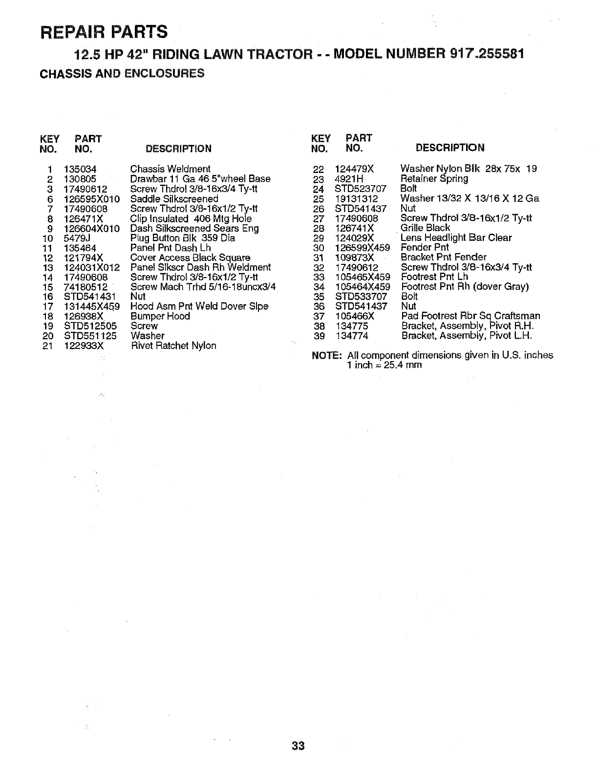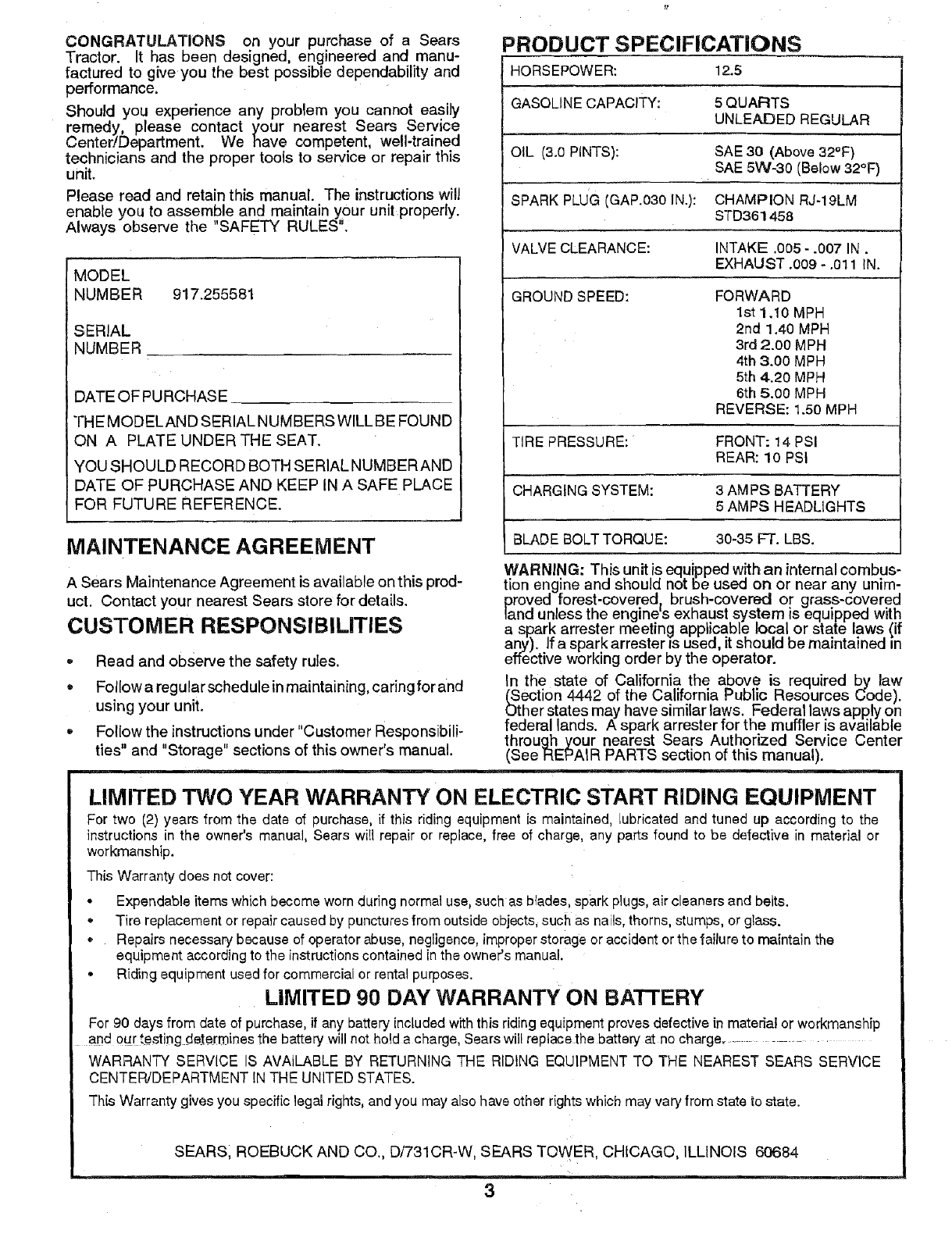 All parts listed herein may be ordered from any Sears, Roebuck and Co.