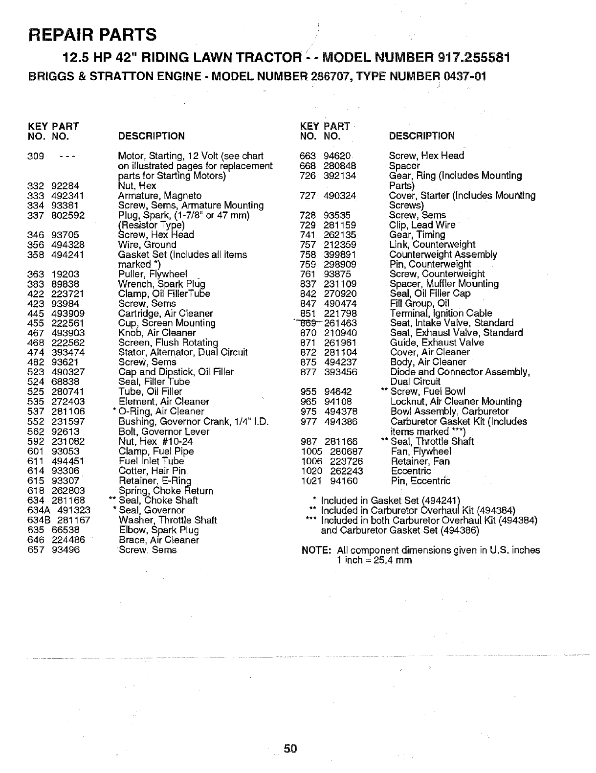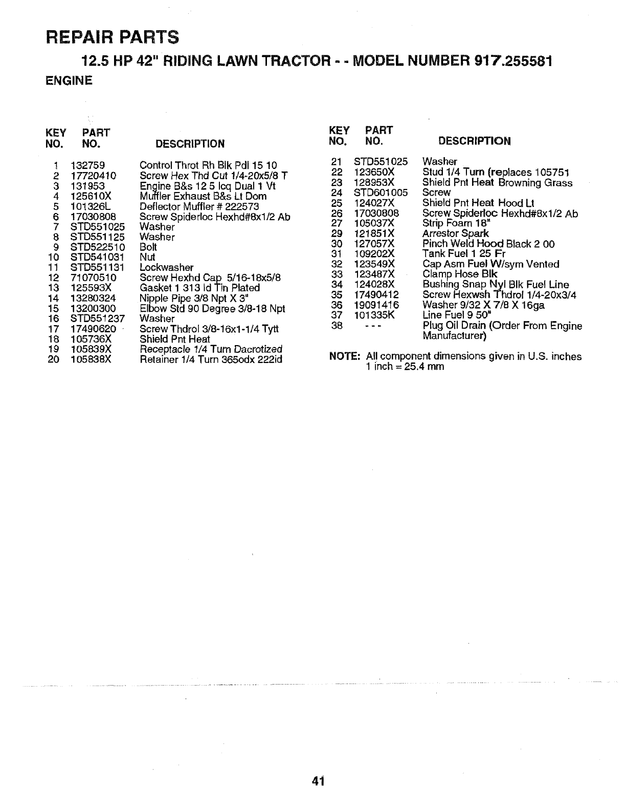 WHEN ORDERING REPAIR PARTS; ALWAYS GIVE THE FOLLOW-