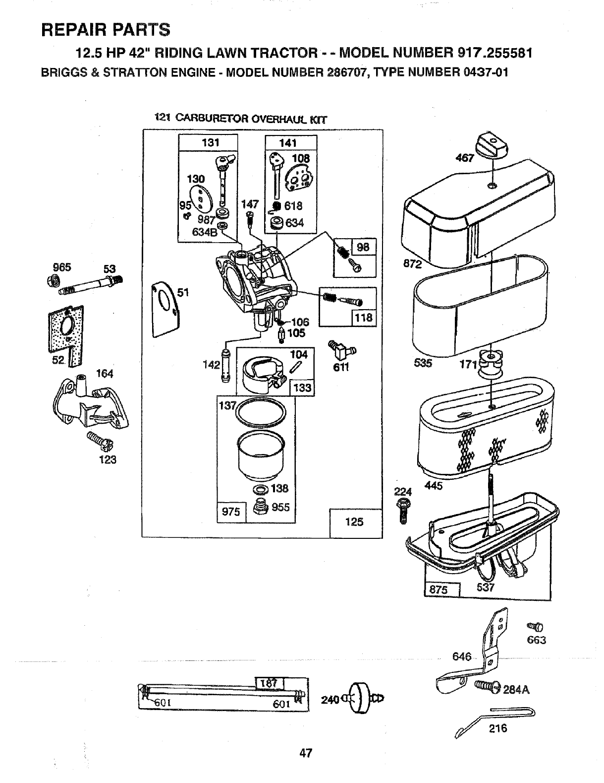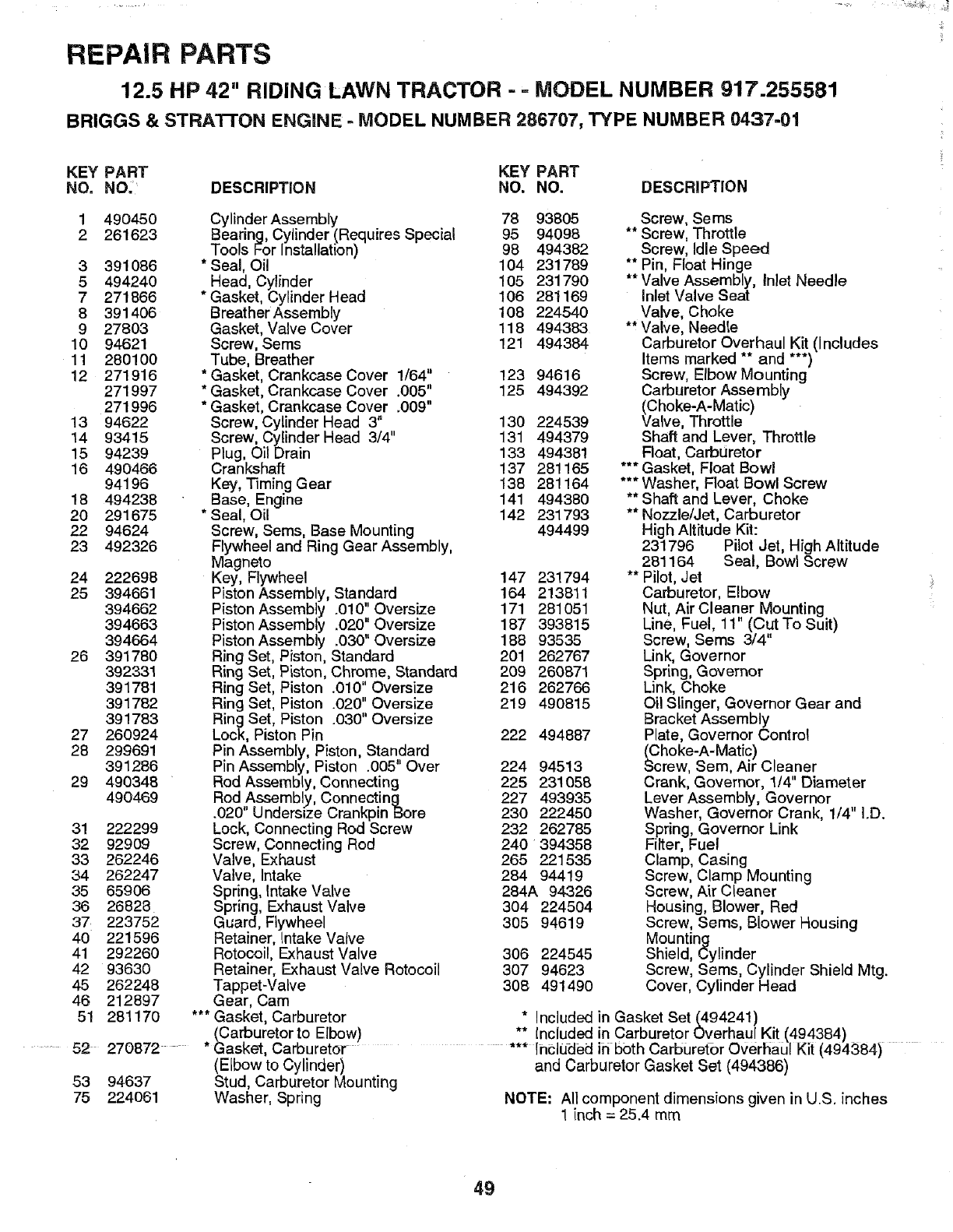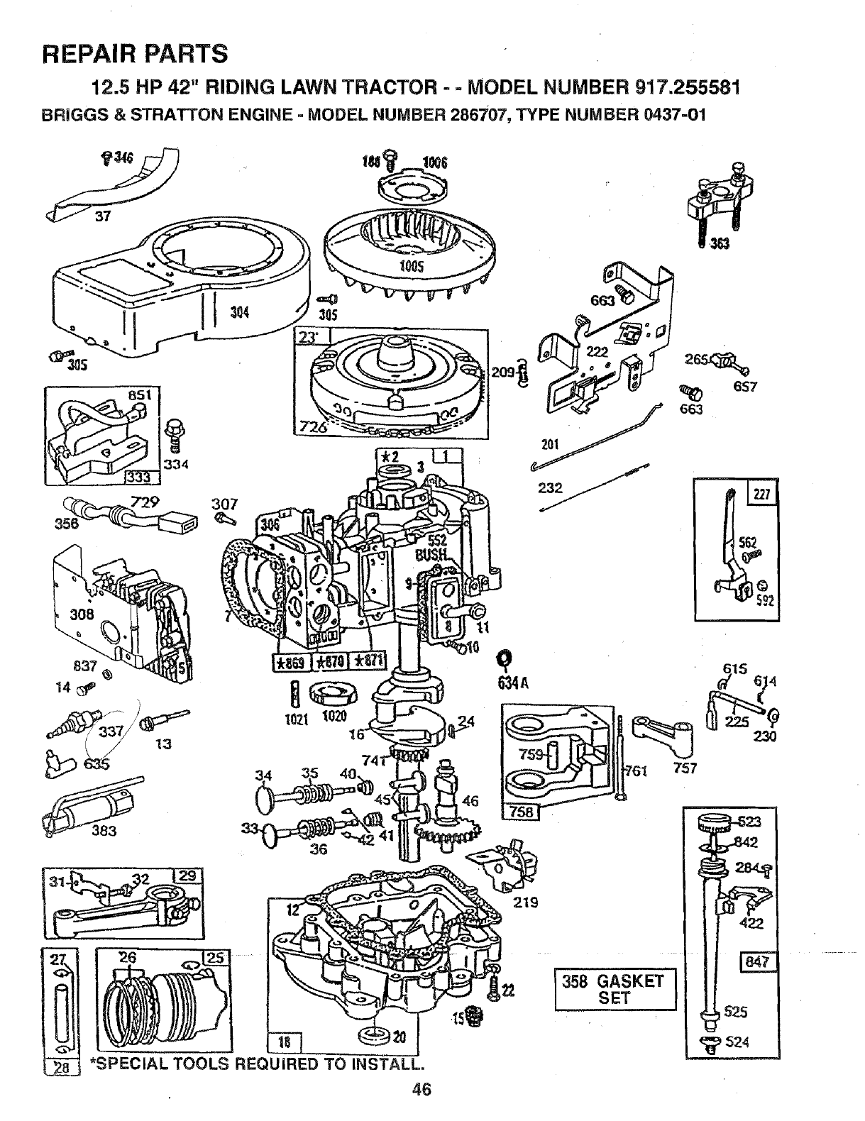 °ENGINE MODEL NUMBER- 286707, TYPE NUMBER 0437-01