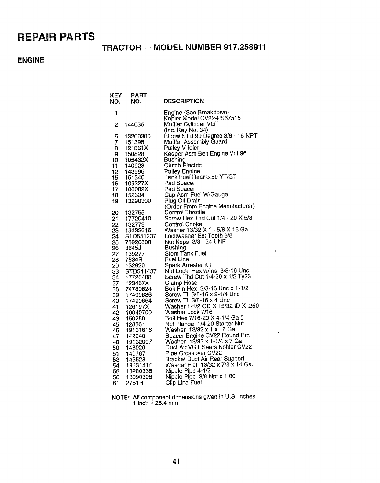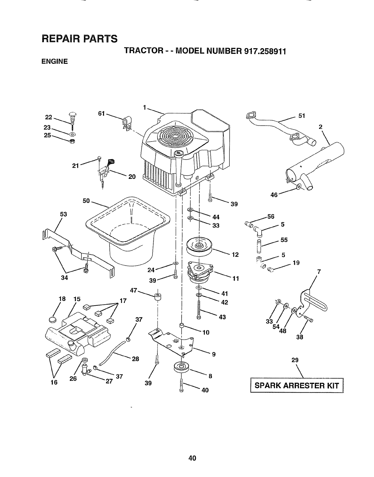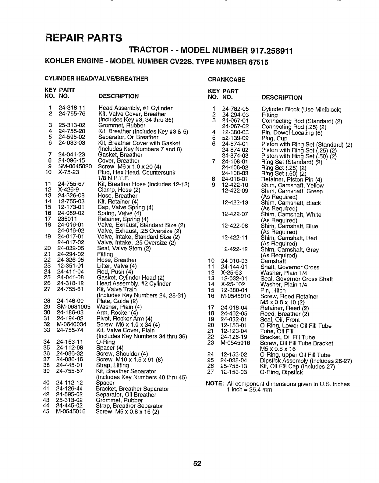917258911 917258911 CRAFTSMAN TRACTOR - Manuals and Guides L0909447 View the owners manual for your CRAFTSMAN TRACTOR #917258911. Home:Lawn & Garden Parts:Craftsman Parts:Craftsman TRACTOR Manual