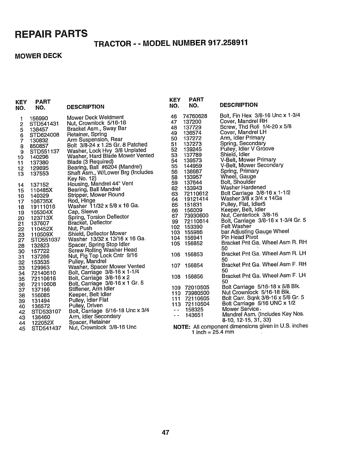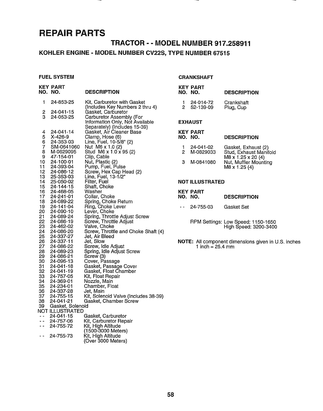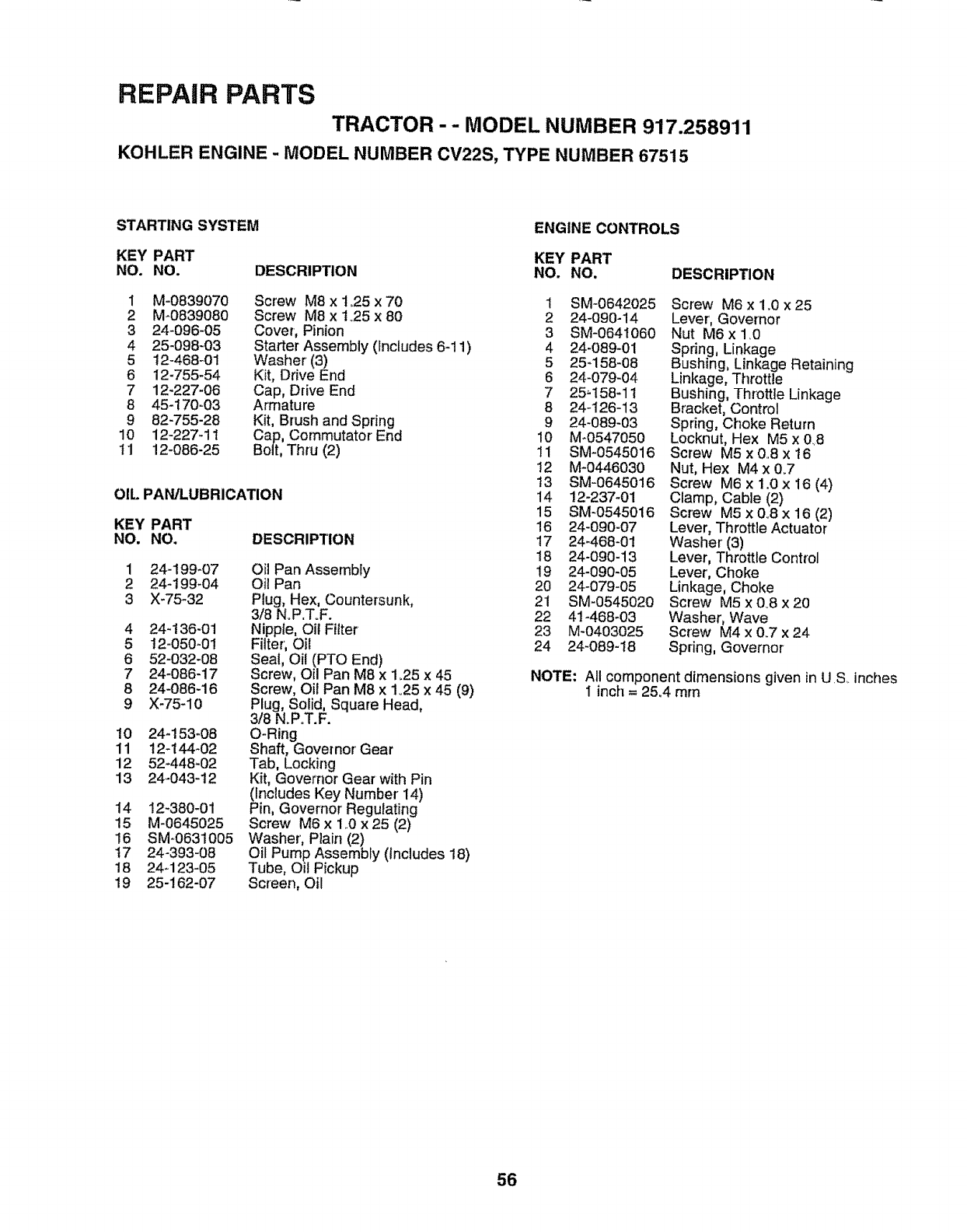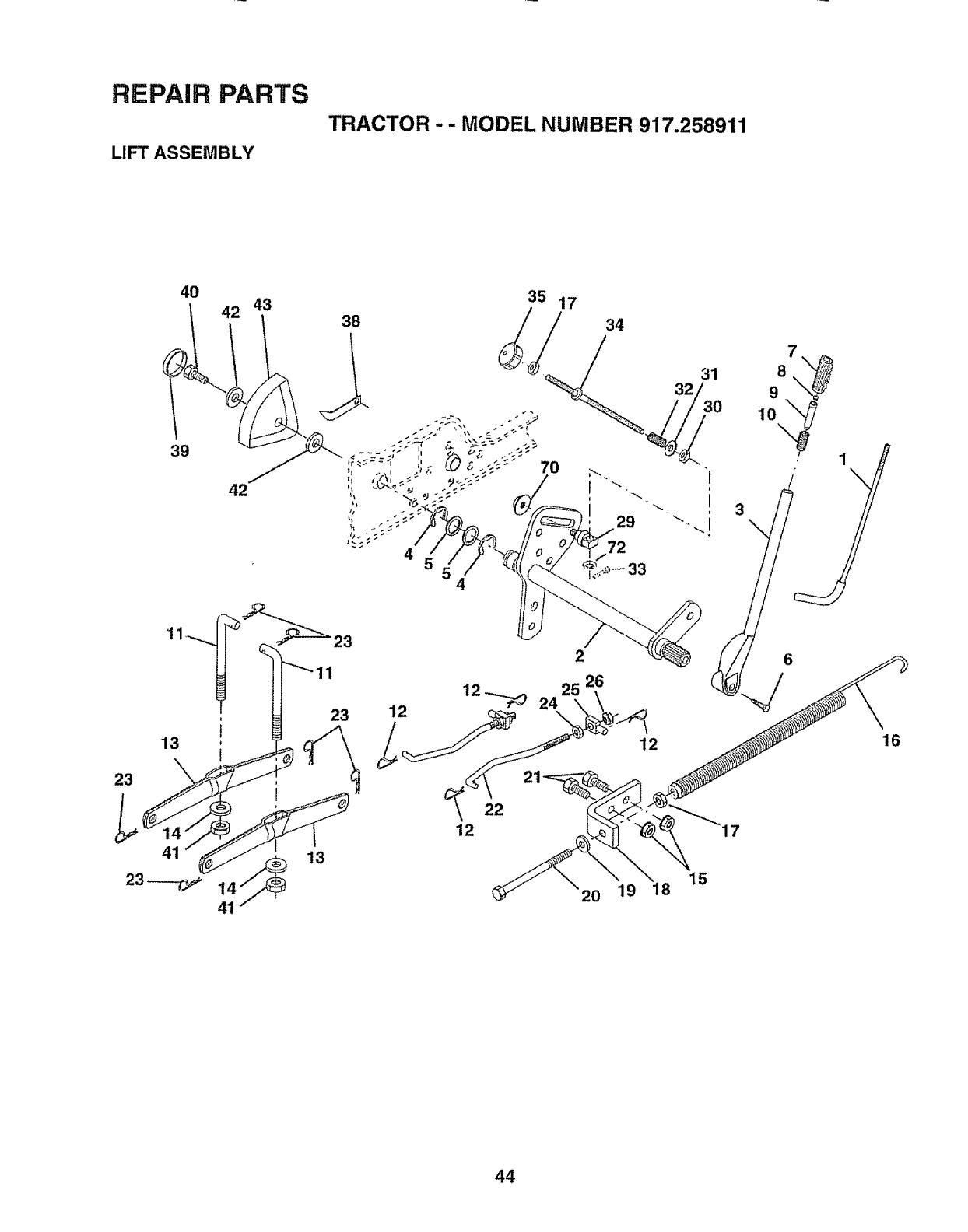 917258911 917258911 CRAFTSMAN TRACTOR - Manuals and Guides L0909447 View the owners manual for your CRAFTSMAN TRACTOR #917258911. Home:Lawn & Garden Parts:Craftsman Parts:Craftsman TRACTOR Manual