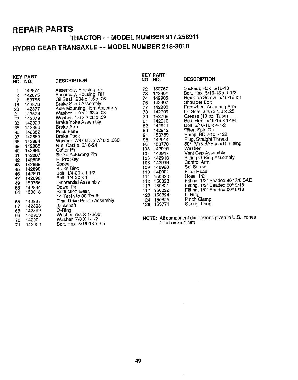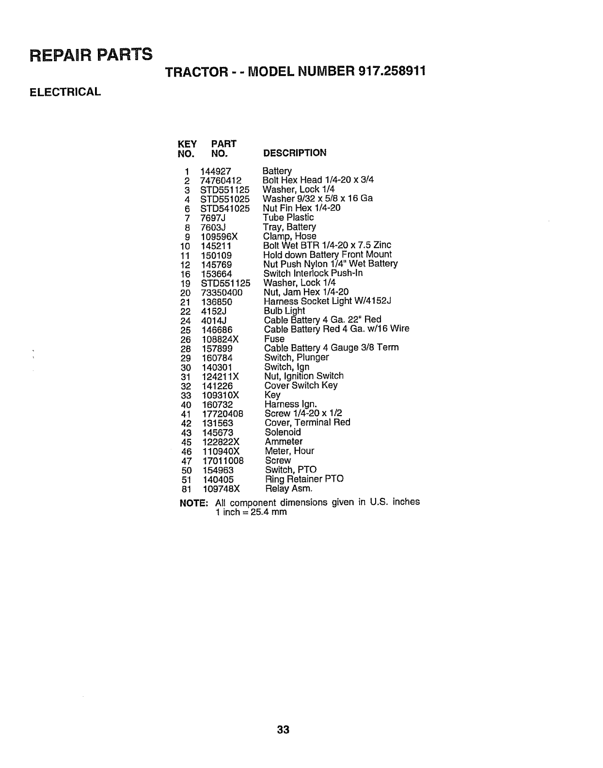 WHEN ORDERING REPAIR PARTS, ALWAYS GIVE THE