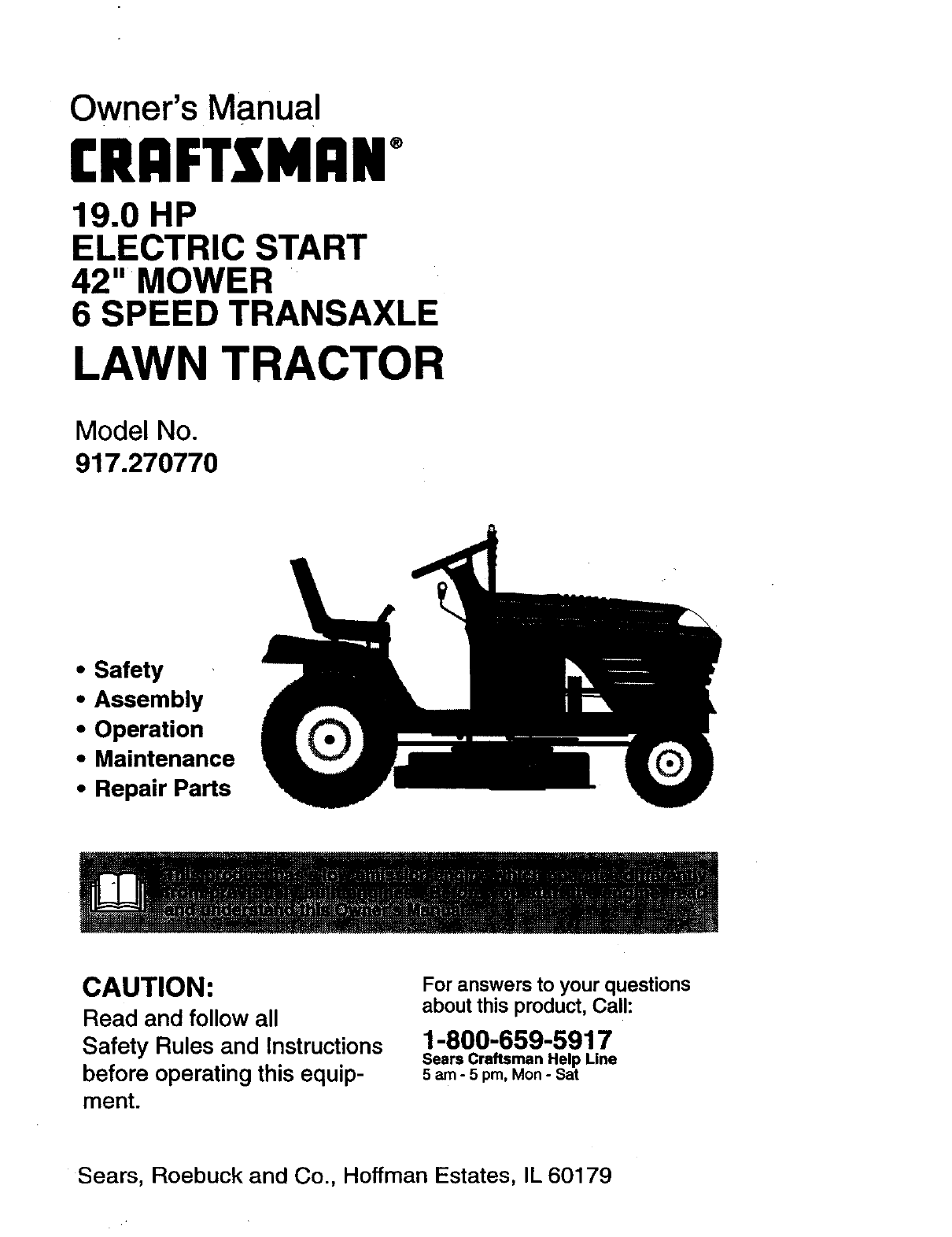917270770 917270770 CRAFTSMAN LAWN TRACTOR - Manuals and Guides 98120013 View the owners manual for your CRAFTSMAN LAWN TRACTOR #917270770. Home:Lawn & Garden Parts:Craftsman Parts:Craftsman LAWN TRACTOR Manual