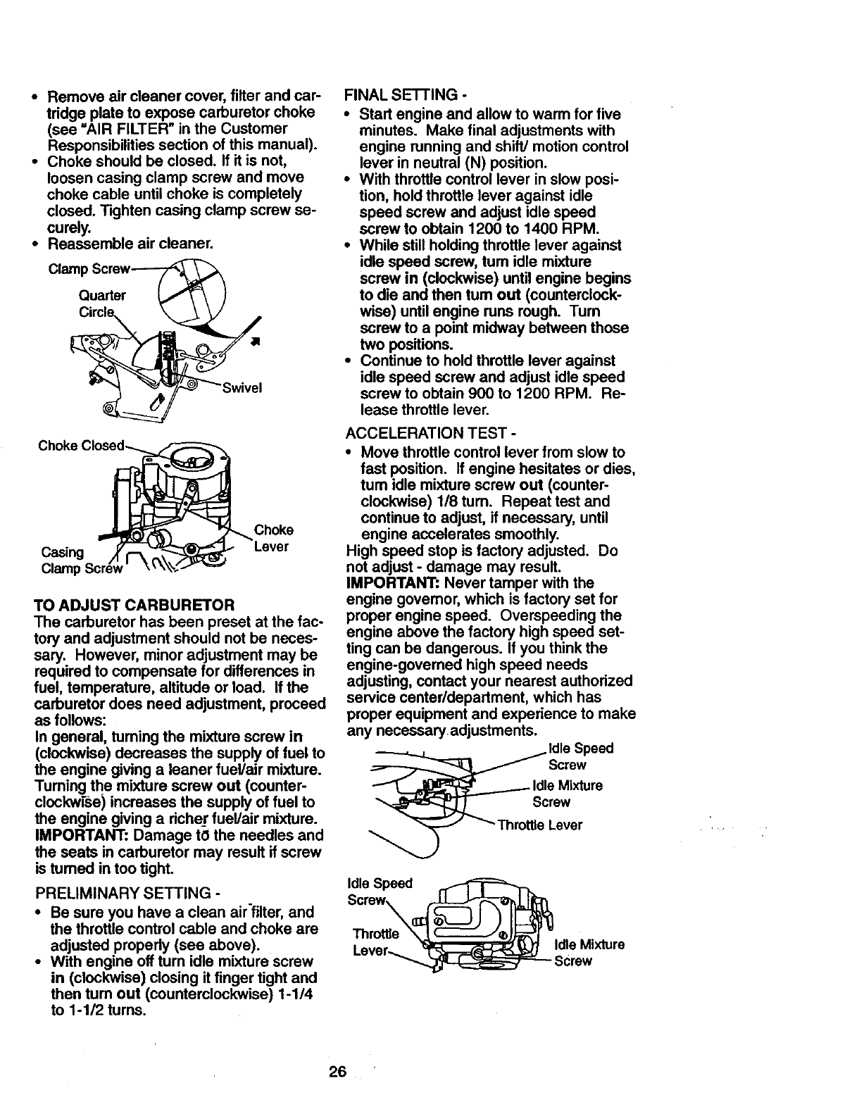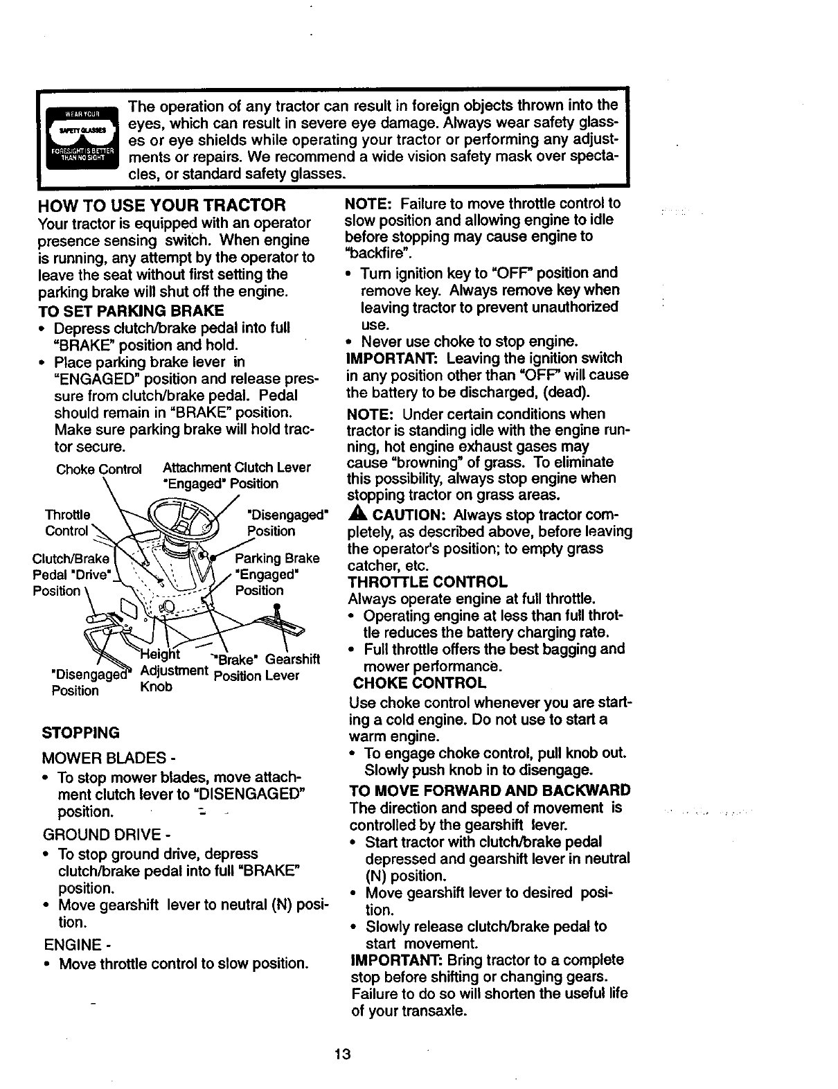 CRAFTSMAN Lawn, Tractor Manual 98120013 CRAFTSMAN Lawn, Tractor Owner's Manual, CRAFTSMAN Lawn, Tractor installation guides