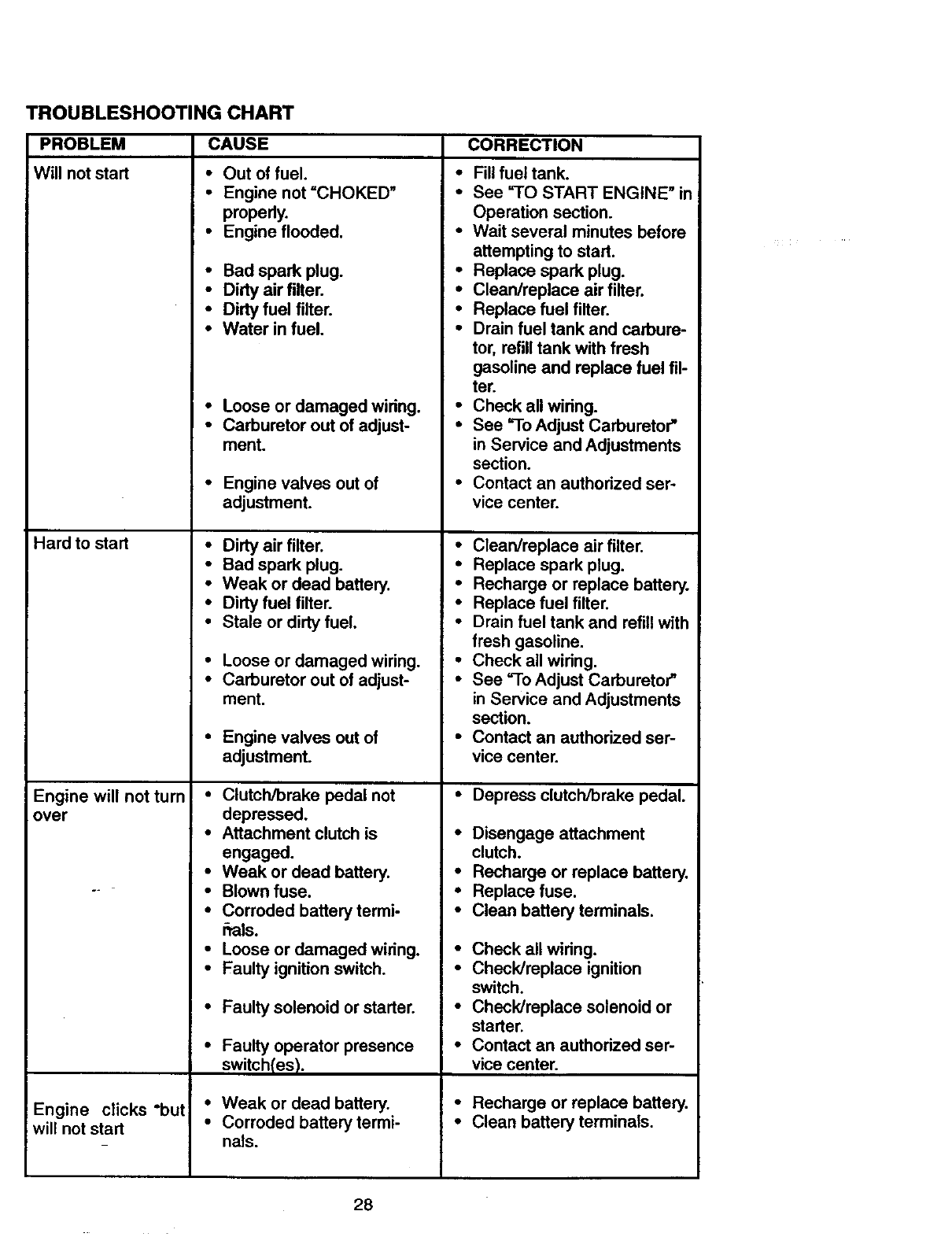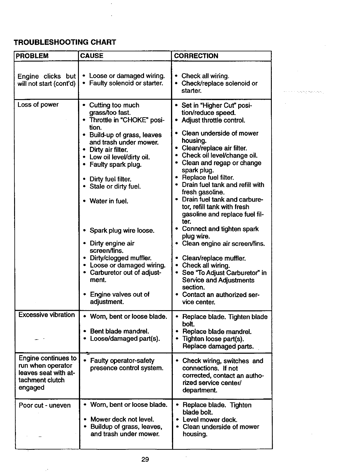 •Repairs necessary because of operator abuse, negligence, improper storage or acci-