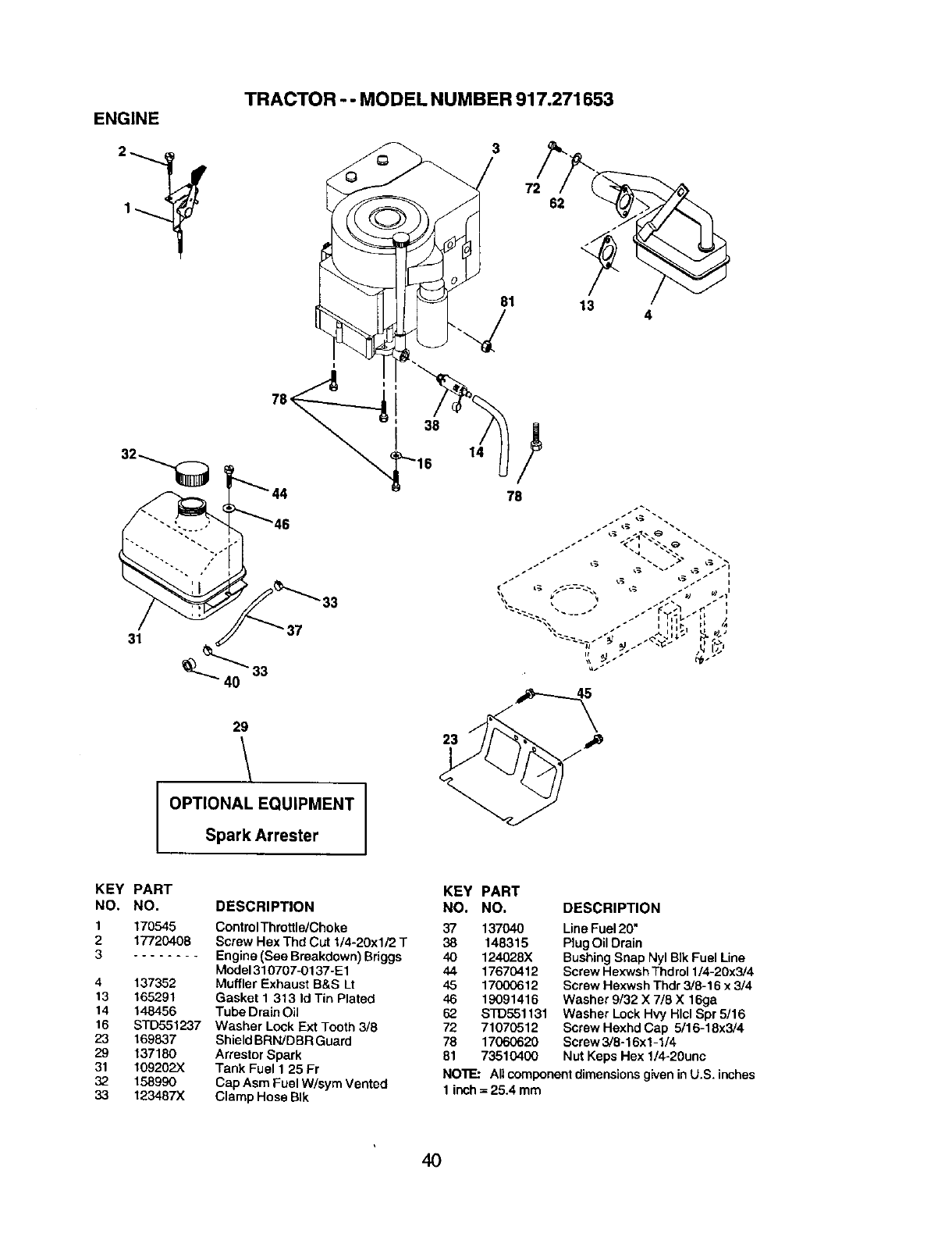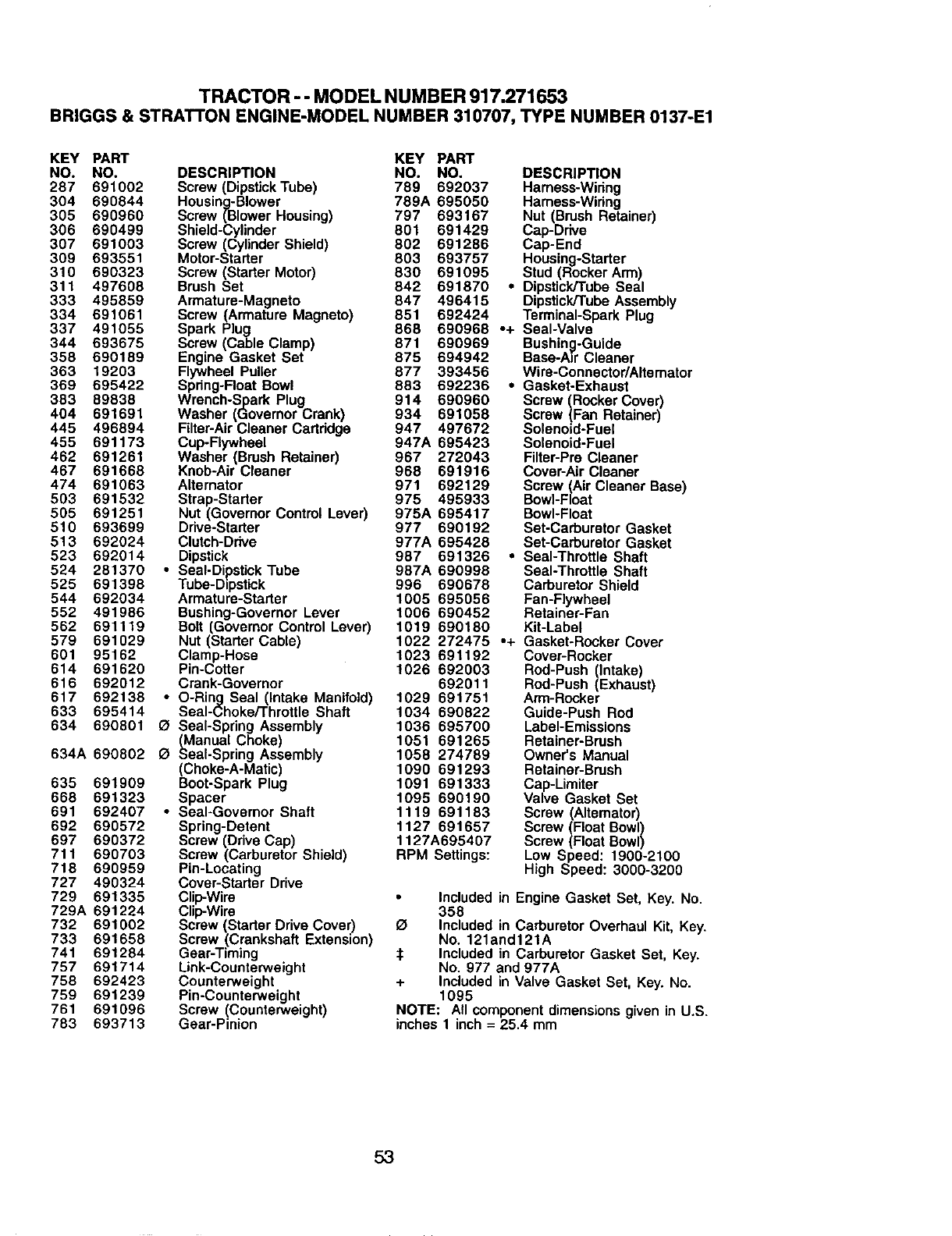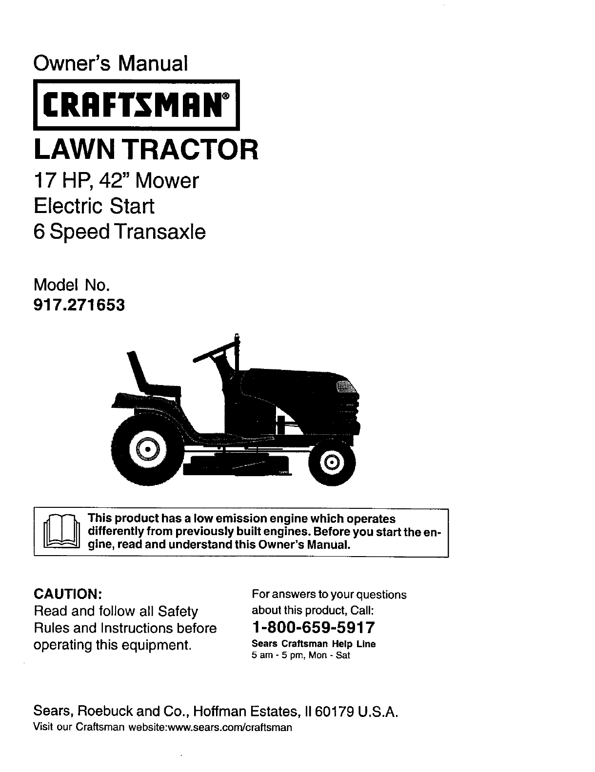 917271653 917271653 CRAFTSMAN LAWN TRACTOR - Manuals and Guides L0205229 View the owners manual for your CRAFTSMAN LAWN TRACTOR #917271653. Home:Lawn & Garden Parts:Craftsman Parts:Craftsman LAWN TRACTOR Manual