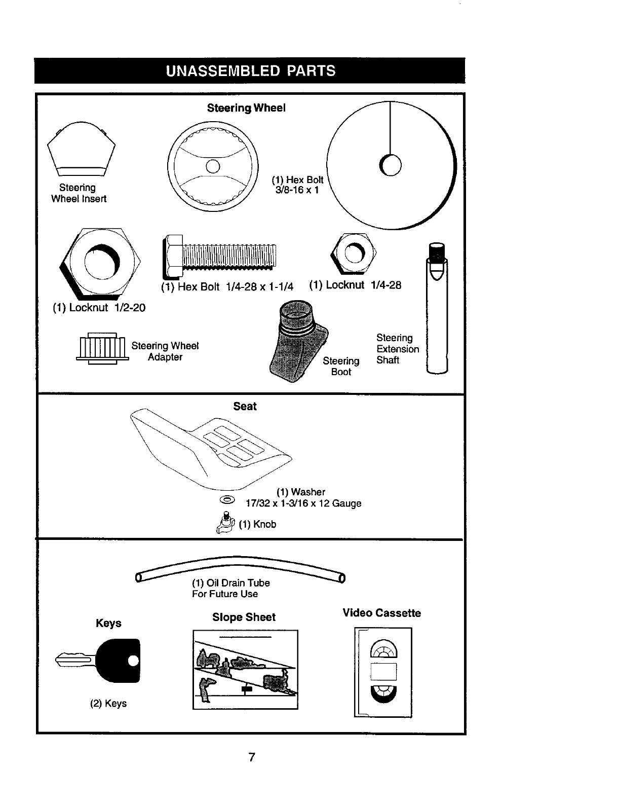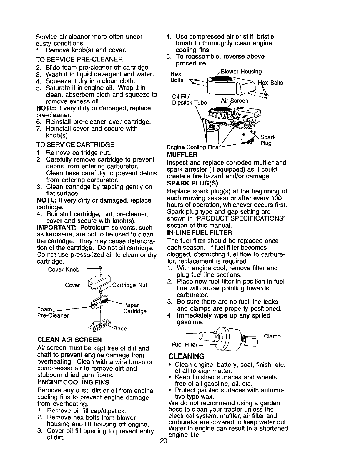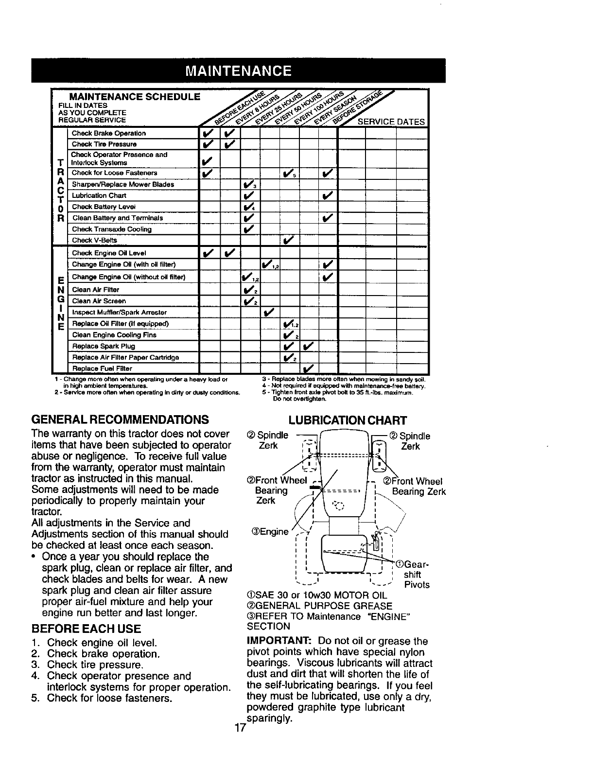 to blades, spark plugs, air cleaners, belts, and oil filters.