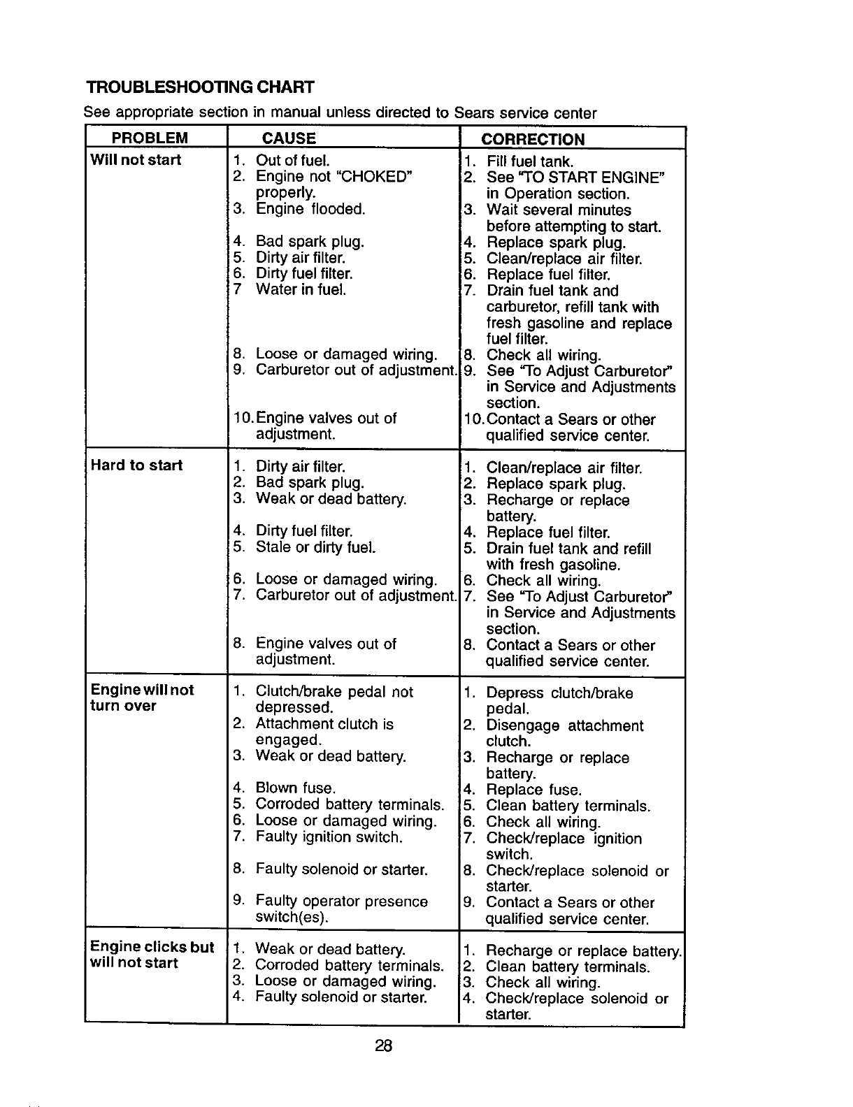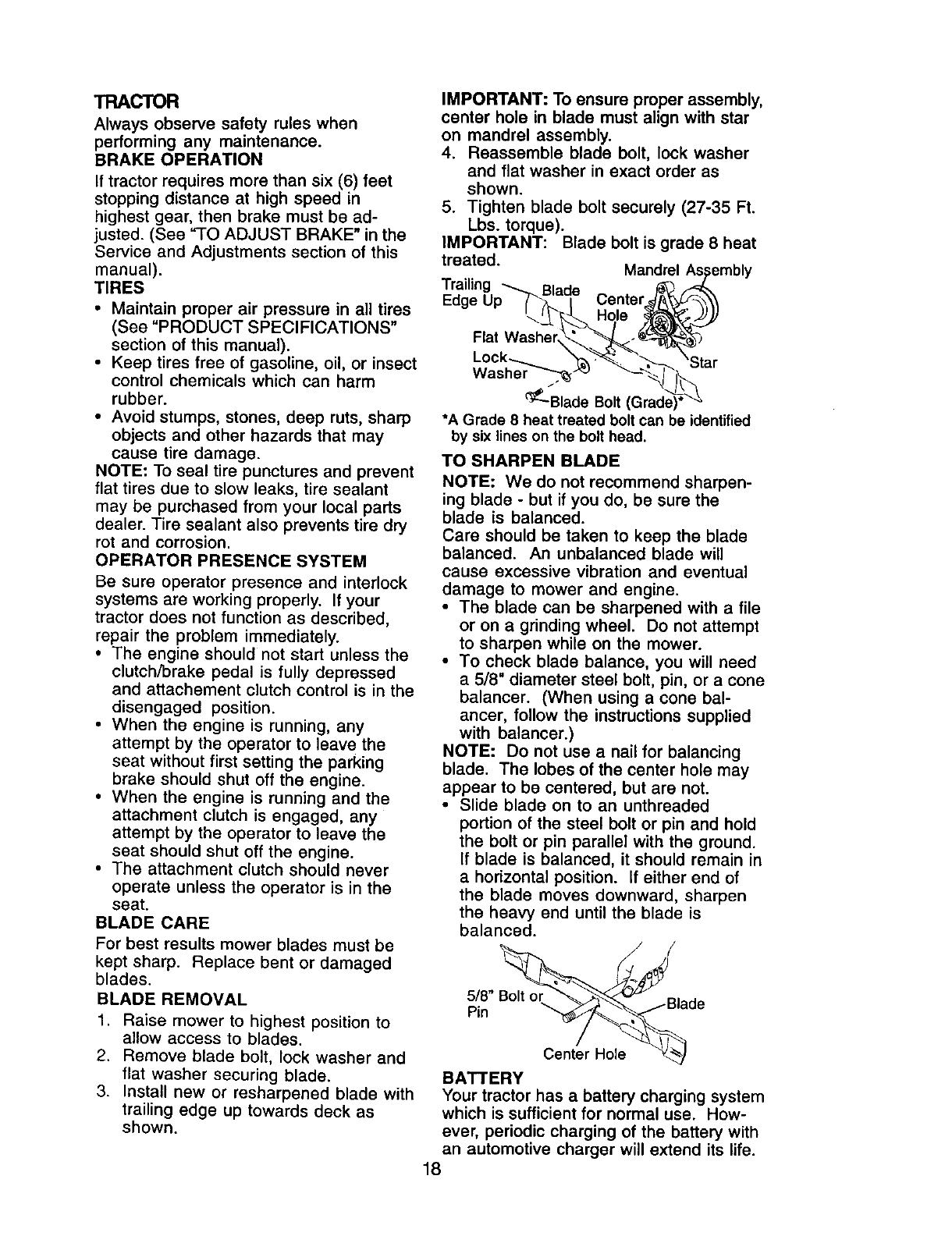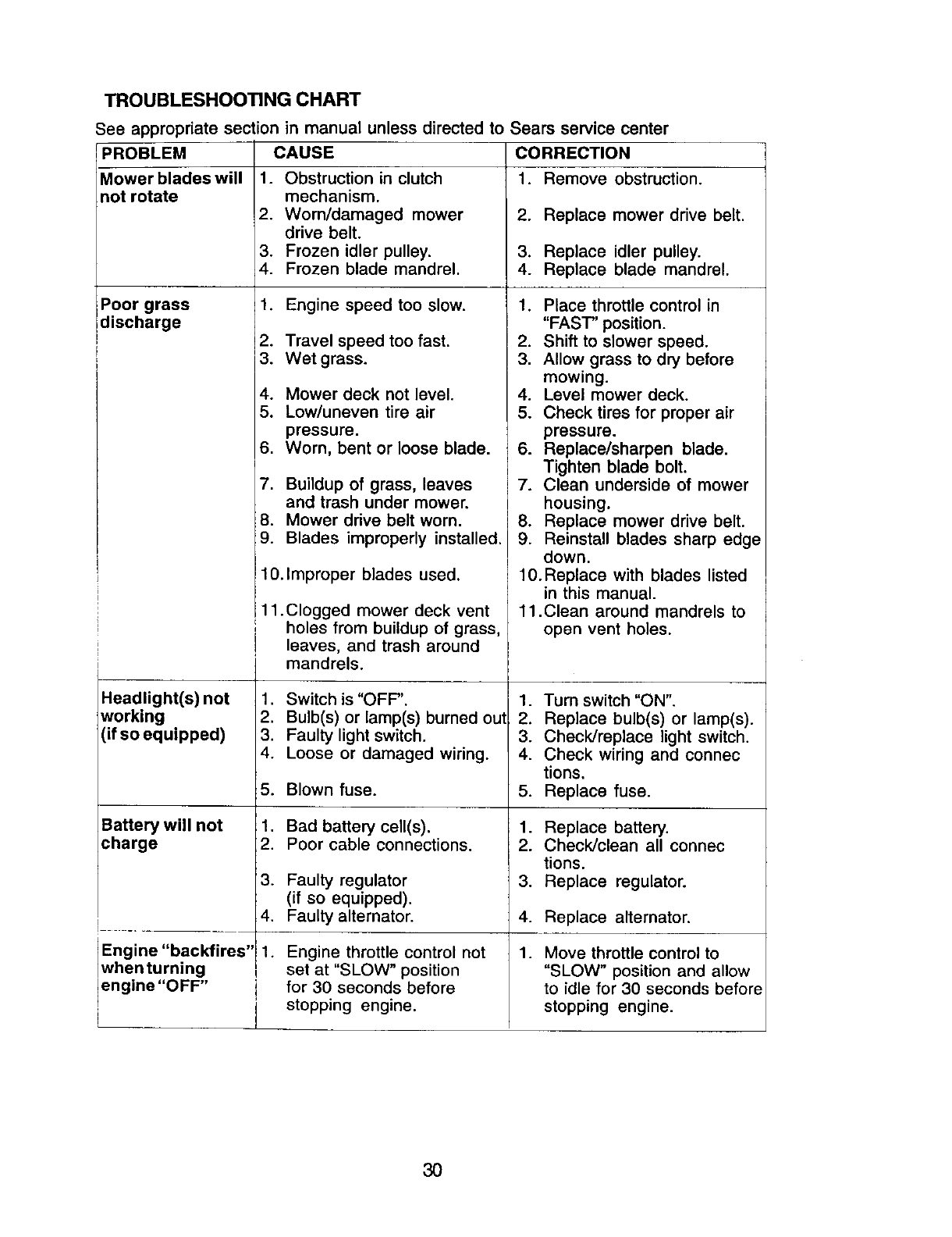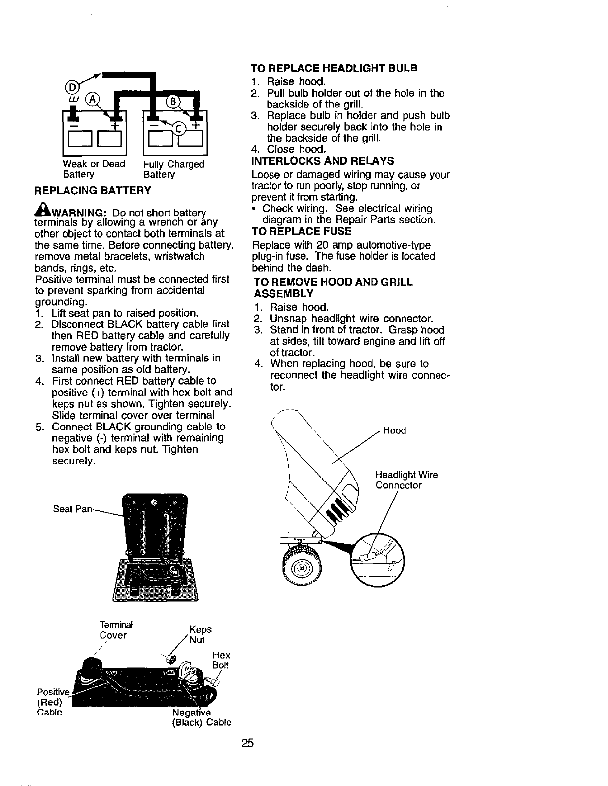 battery will not hold a charge, Sears will replace the battery at no charge. During the