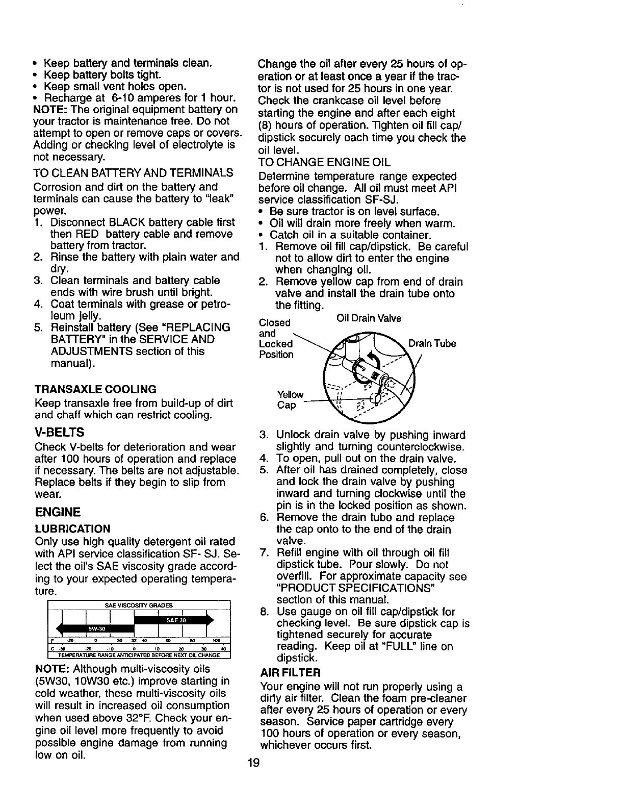 maintained, lubricated and tuned up according to the instructions in the owner's