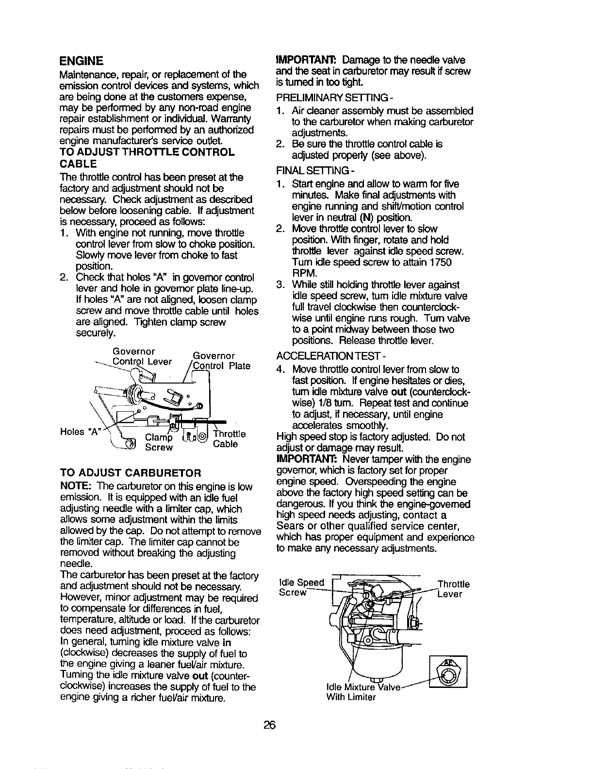 711 690703 Screw (Carburetor Shield) RPM Settings: Low Speed: 1900-2100