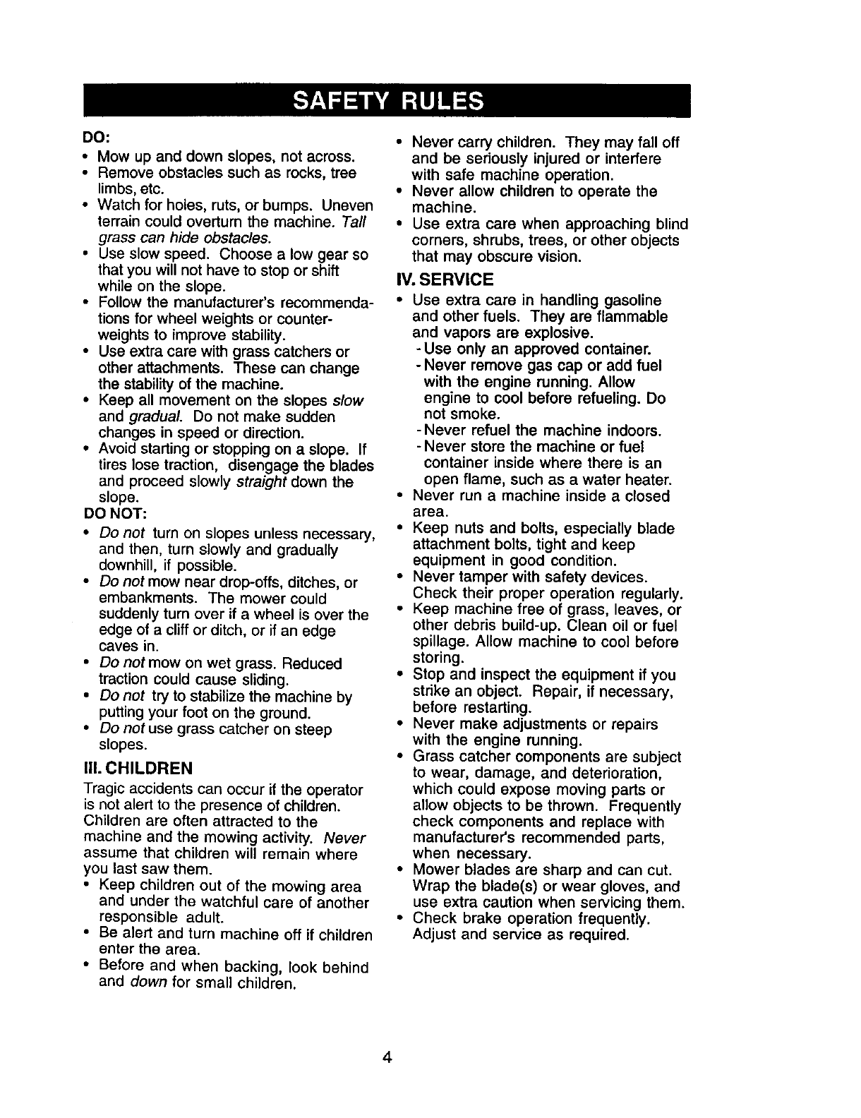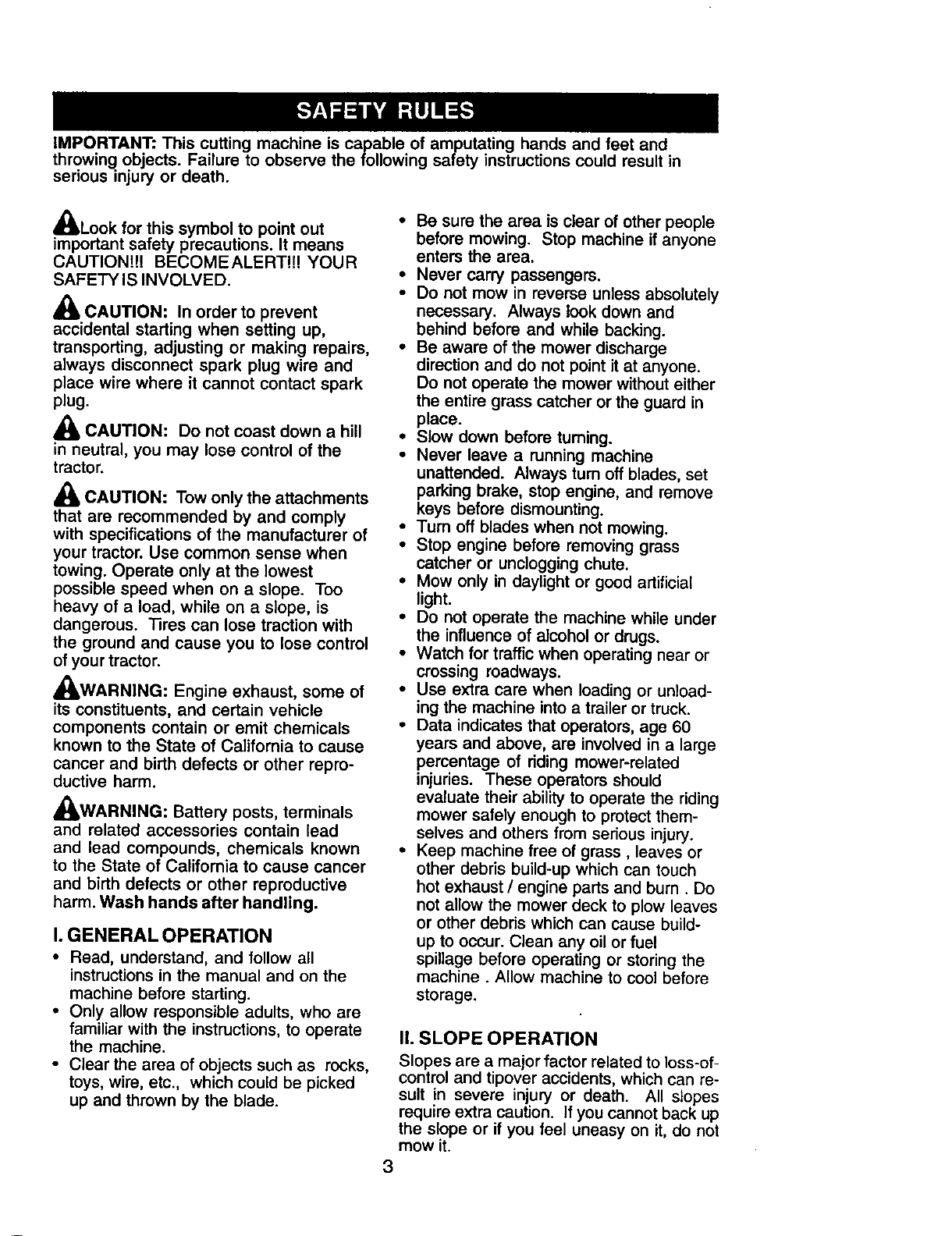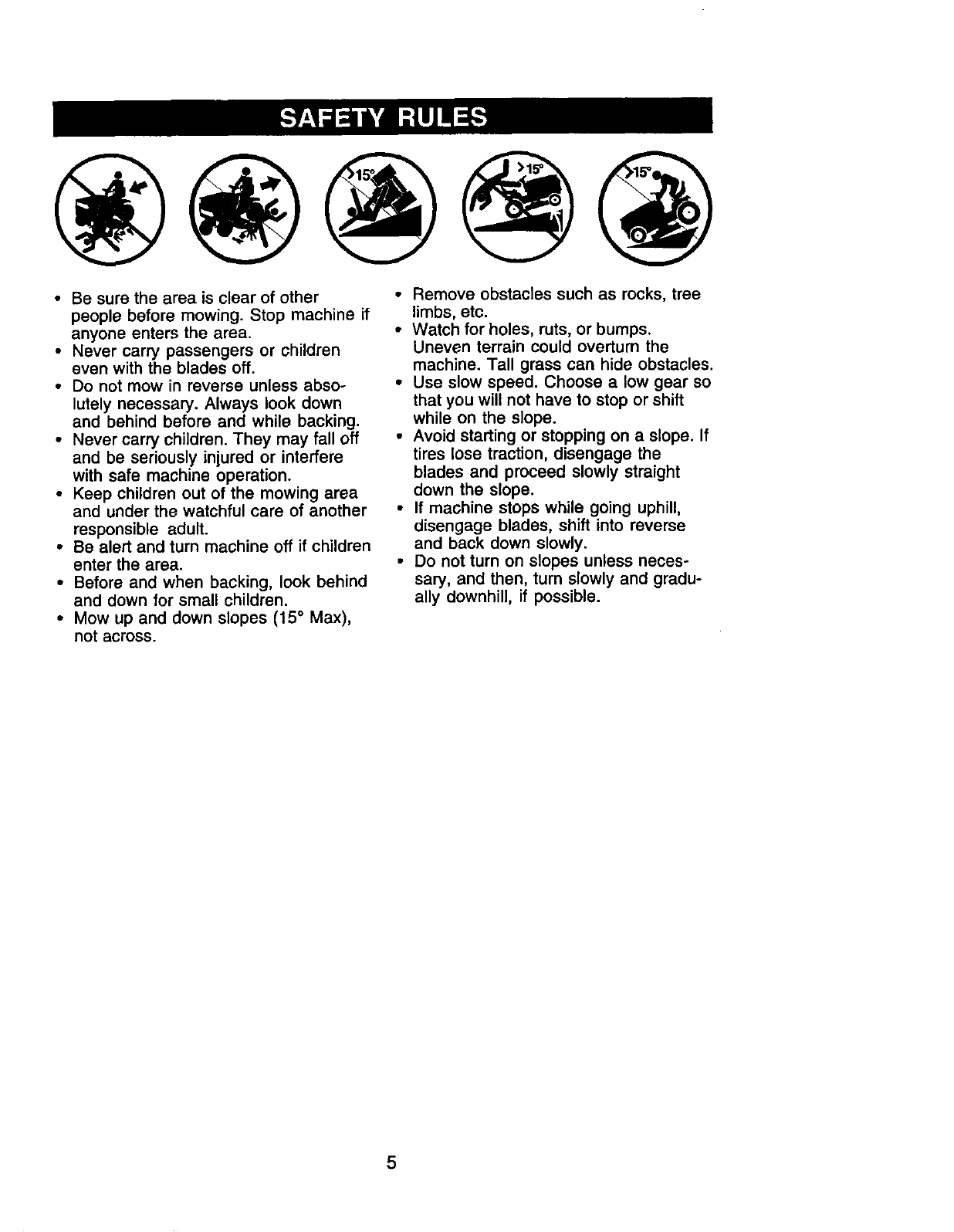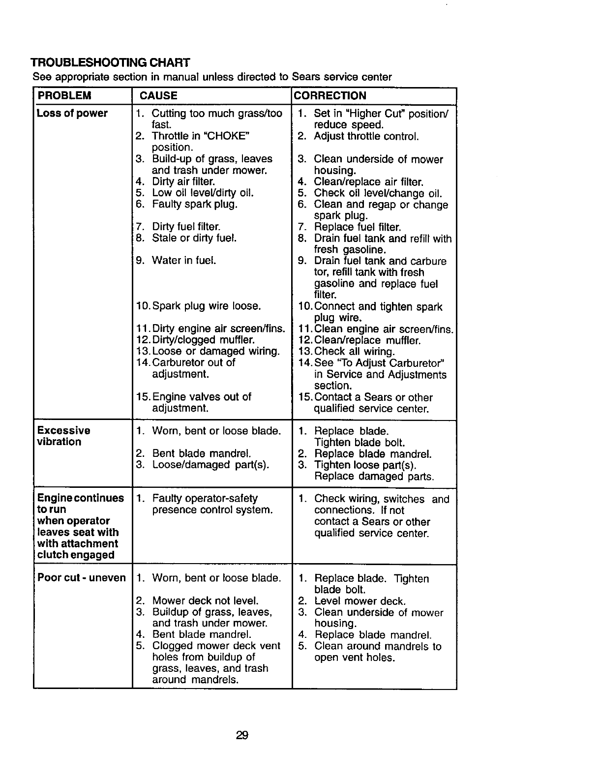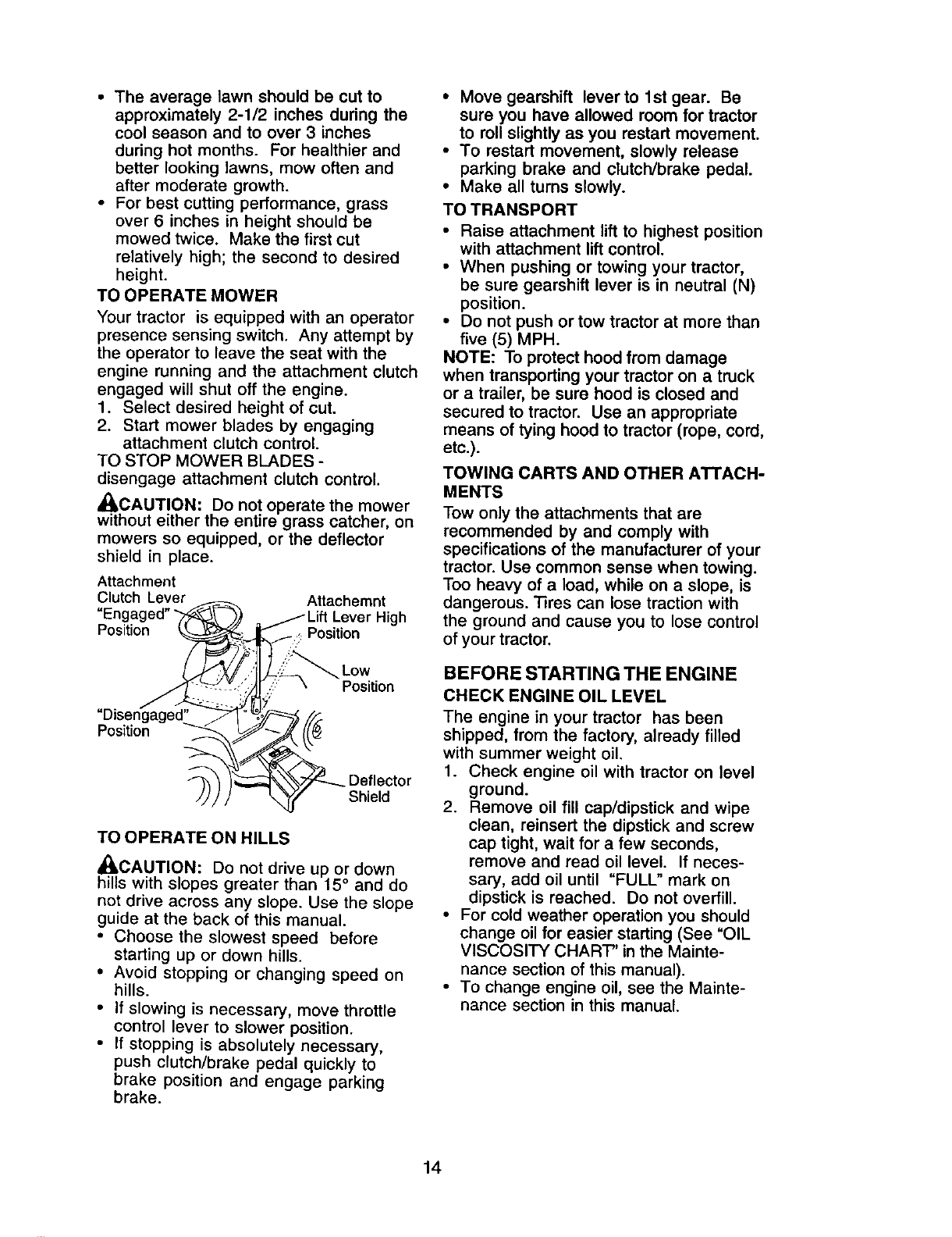 proper grade and amount of engine oil, failure to keep the deck clear of flammable