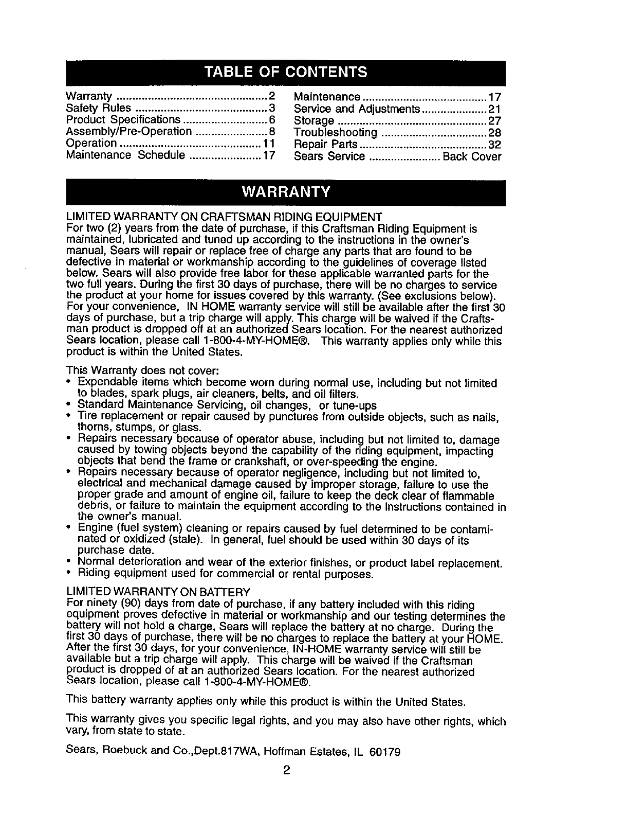 LIMITED WARRANTY ON CRAFTSMAN RIDING EQUIPMENT