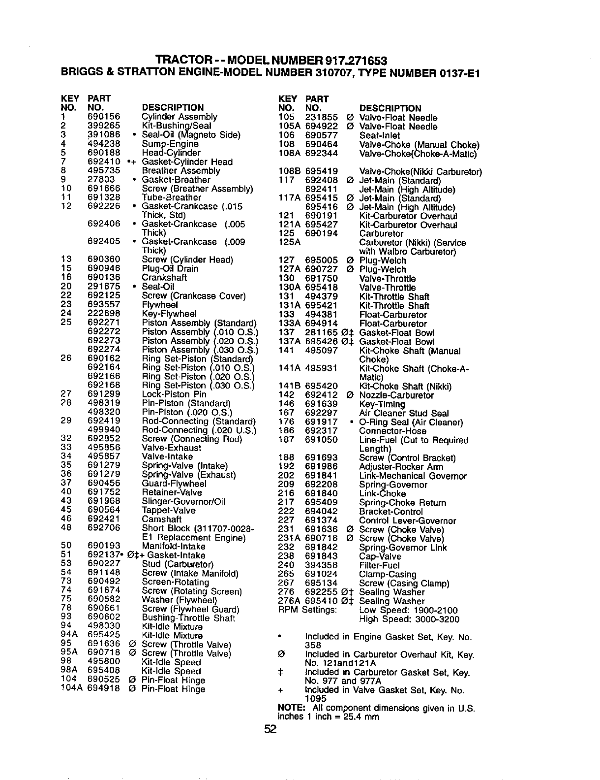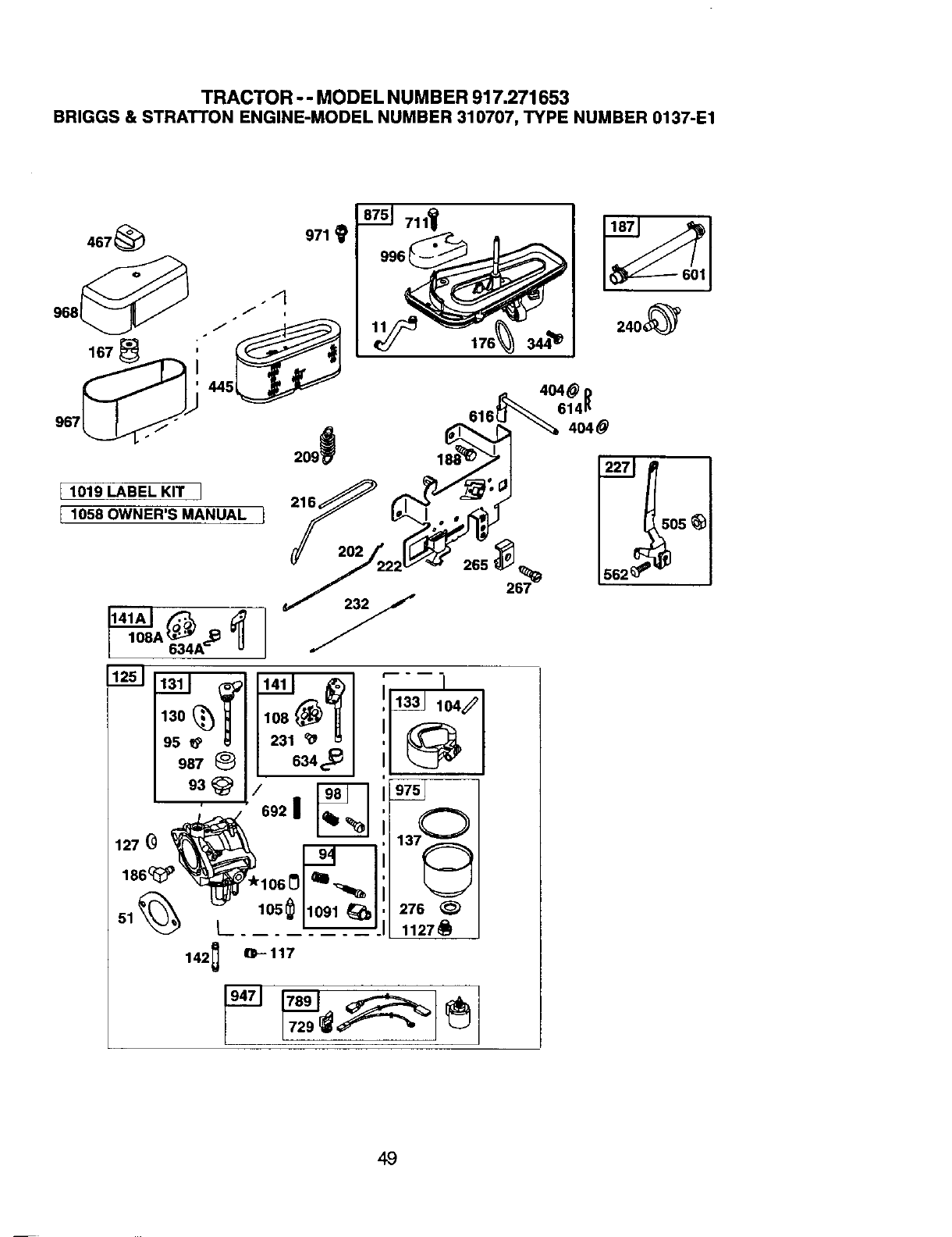 467 691668 Knob-Air Cleaner 968 691916 Cover-Air Cleaner