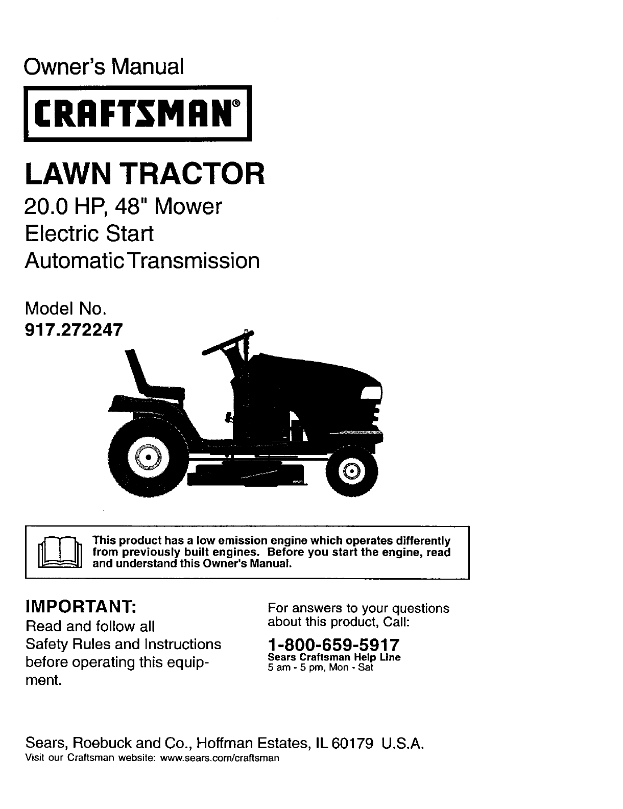 917272247 917272247 CRAFTSMAN LAWN TRACTOR - Manuals and Guides L0207062 View the owners manual for your CRAFTSMAN LAWN TRACTOR #917272247. Home:Lawn & Garden Parts:Craftsman Parts:Craftsman LAWN TRACTOR Manual