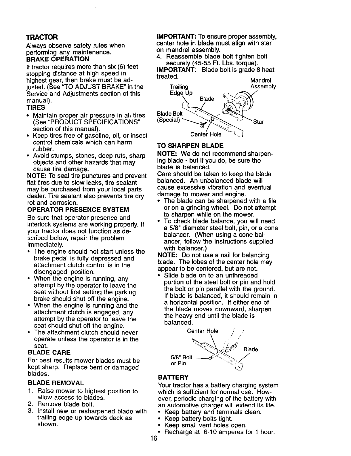 battery will not hold a charge, Sears will replace the battery at no charge. During the