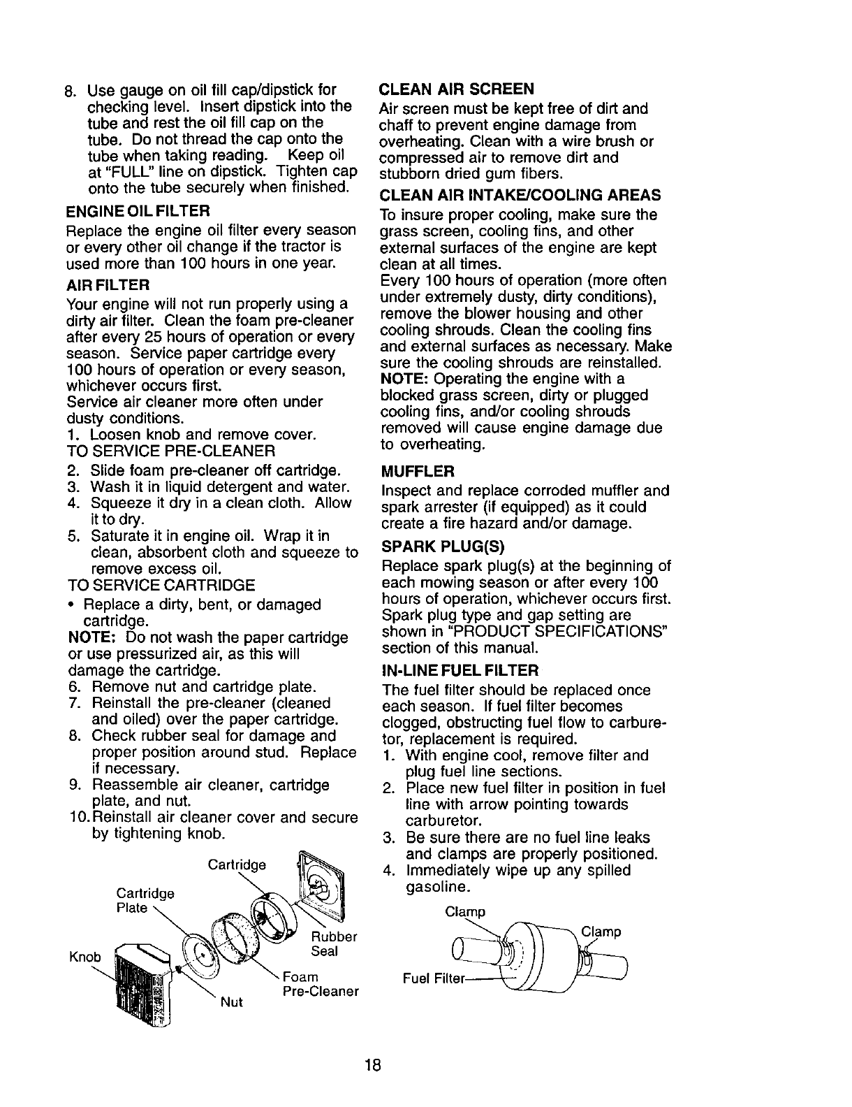 to blades, spark plugs, air cleaners, belts, and oil filters.
