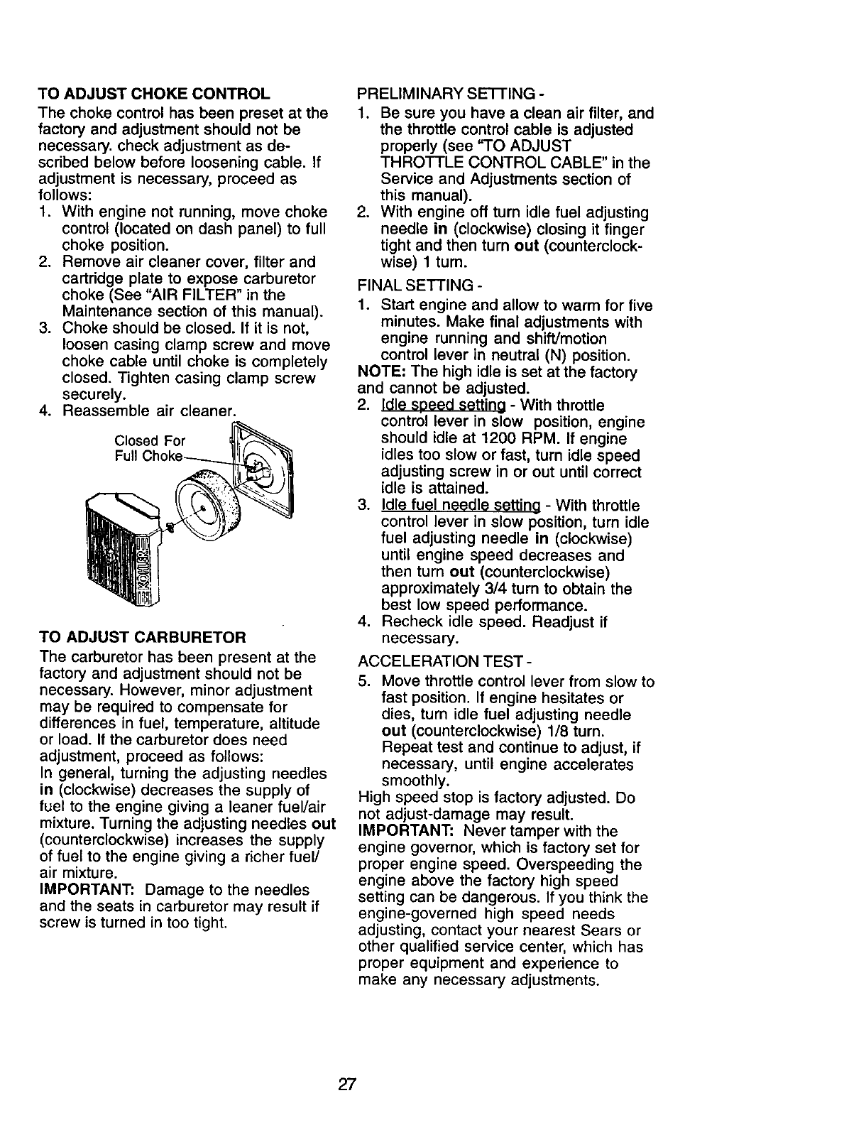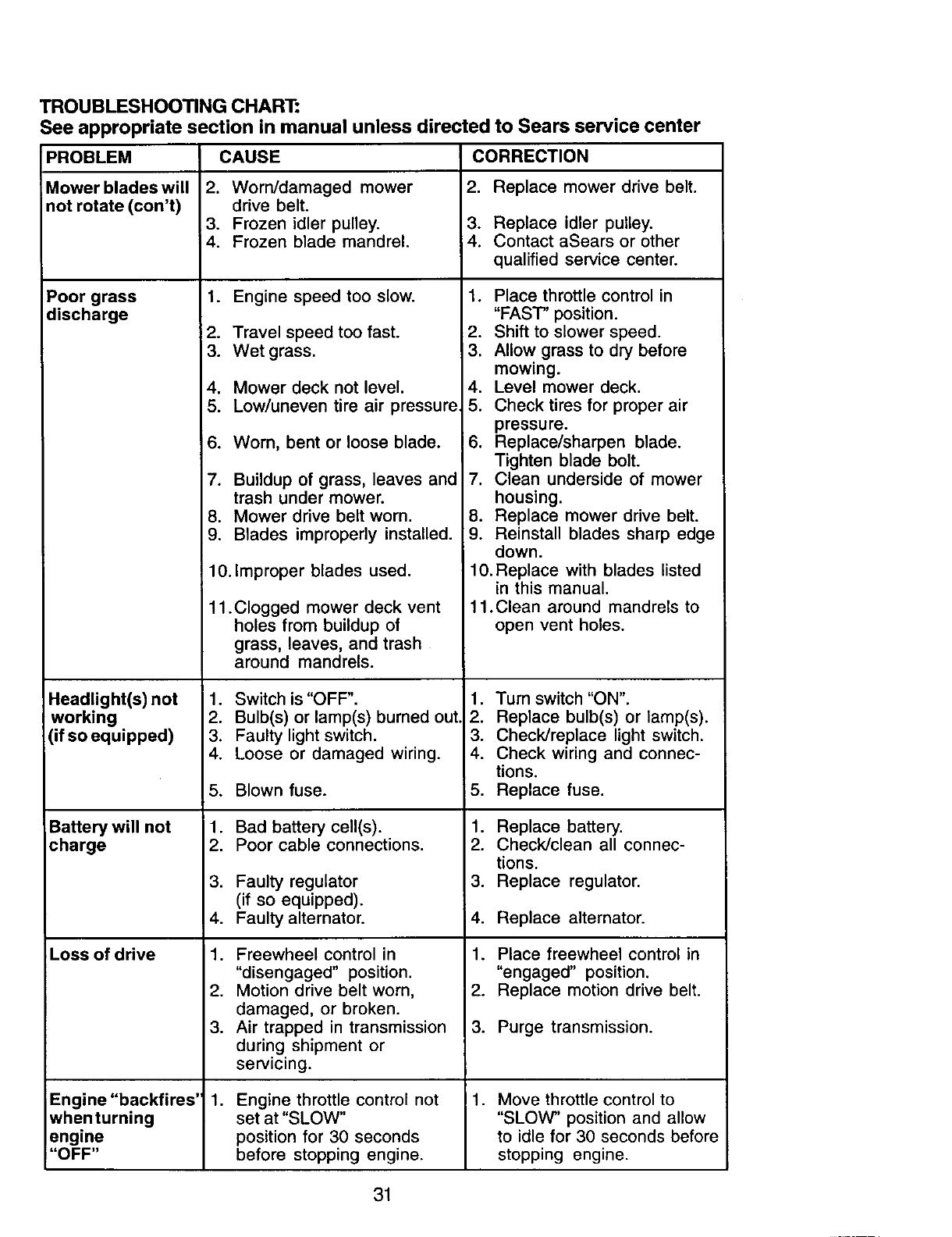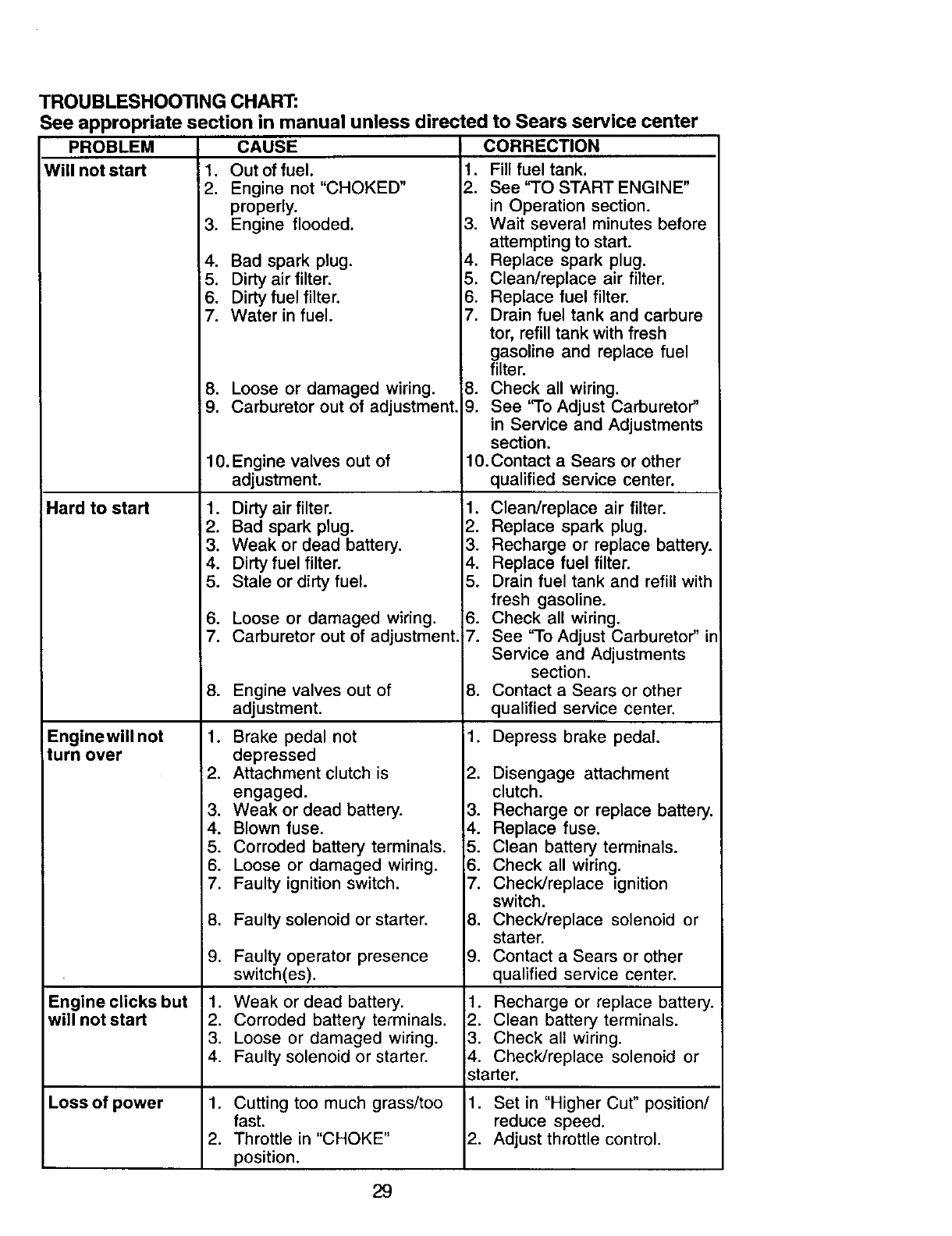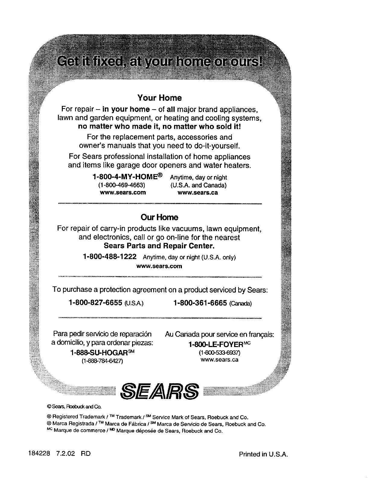 Sears Service ...................... Back Cover