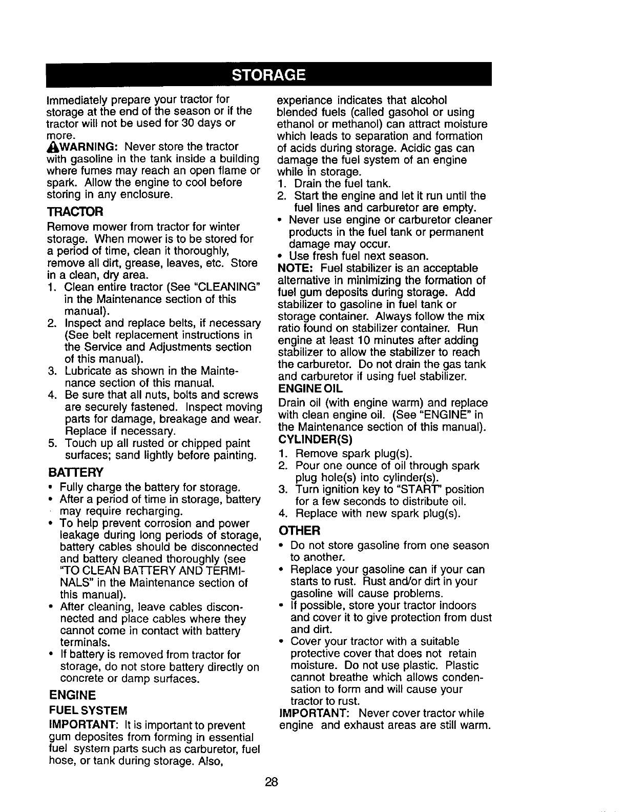 maintained, lubricated and tuned up according to the instructions in the owner's