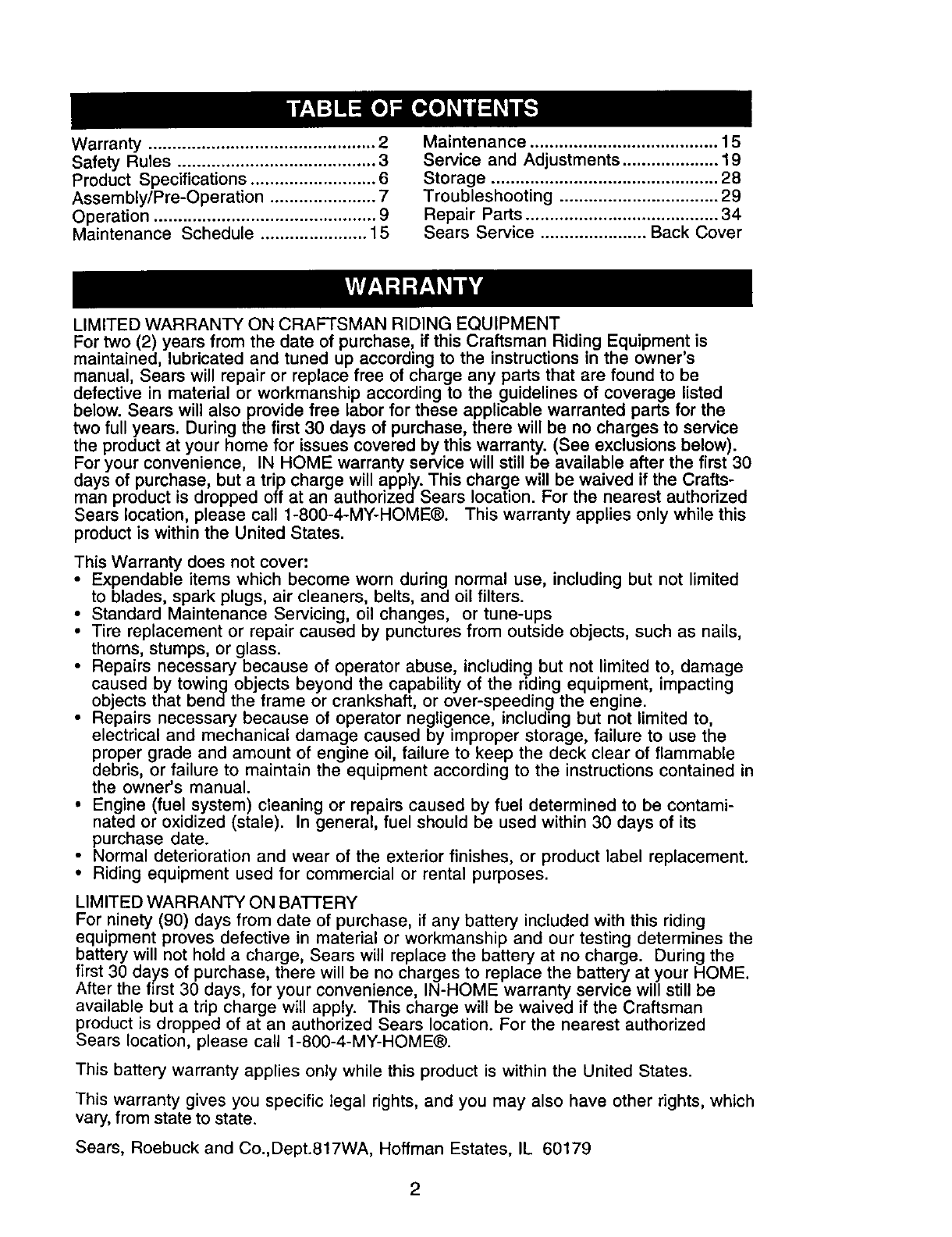 LIMITED WARRANTY ON CRAFTSMAN RIDING EQUIPMENT