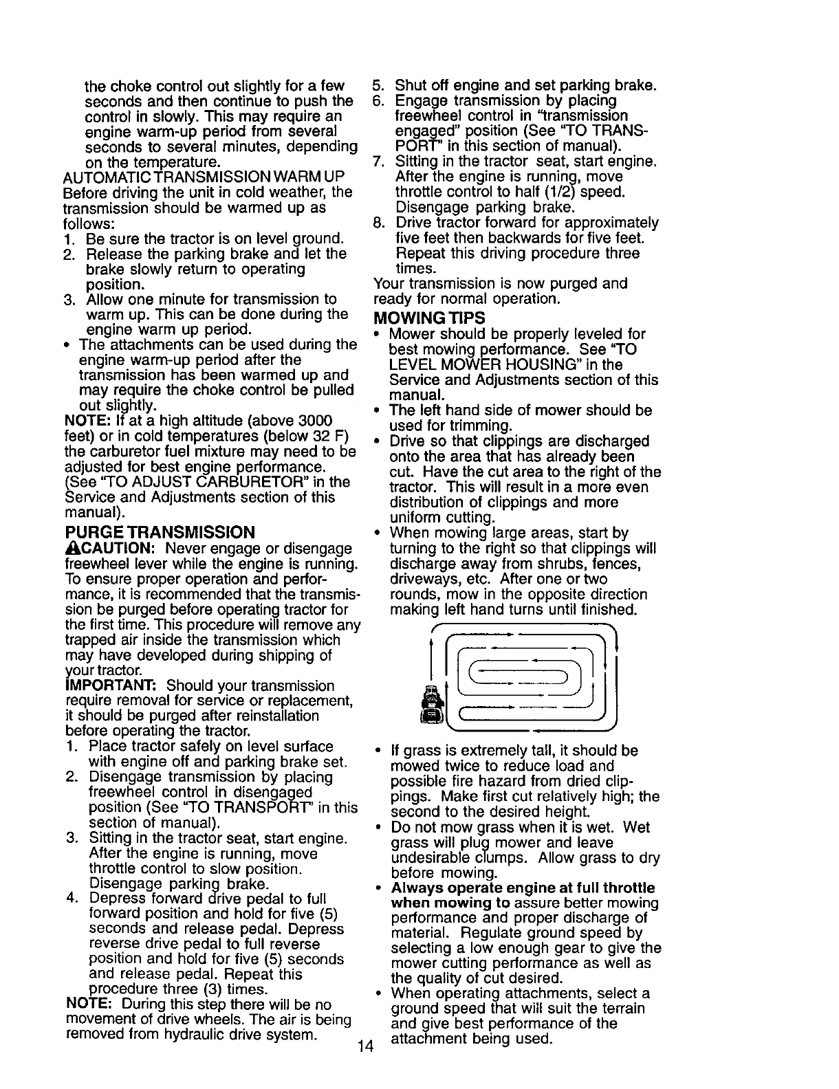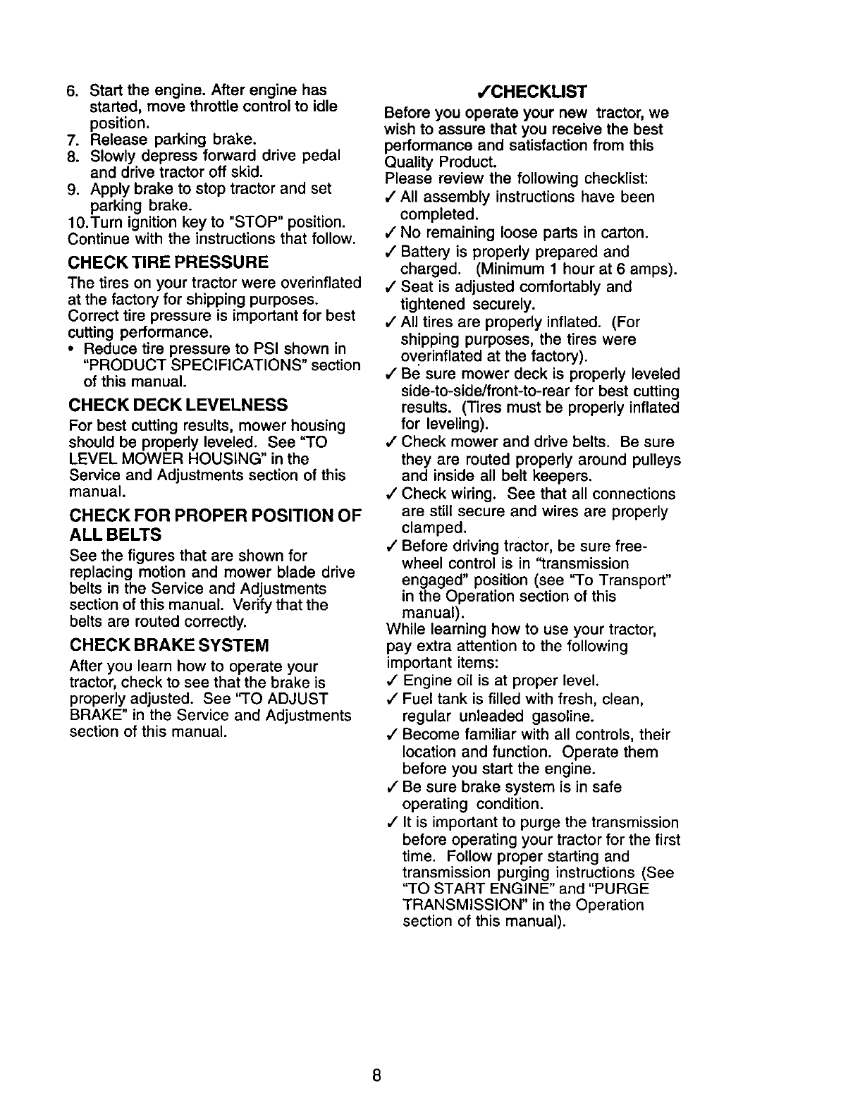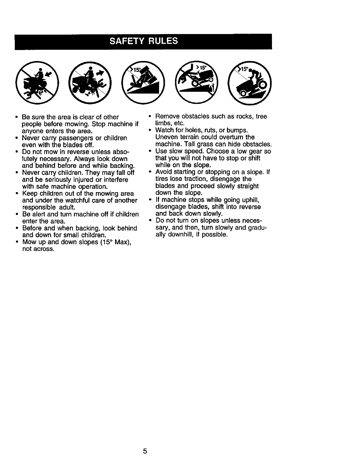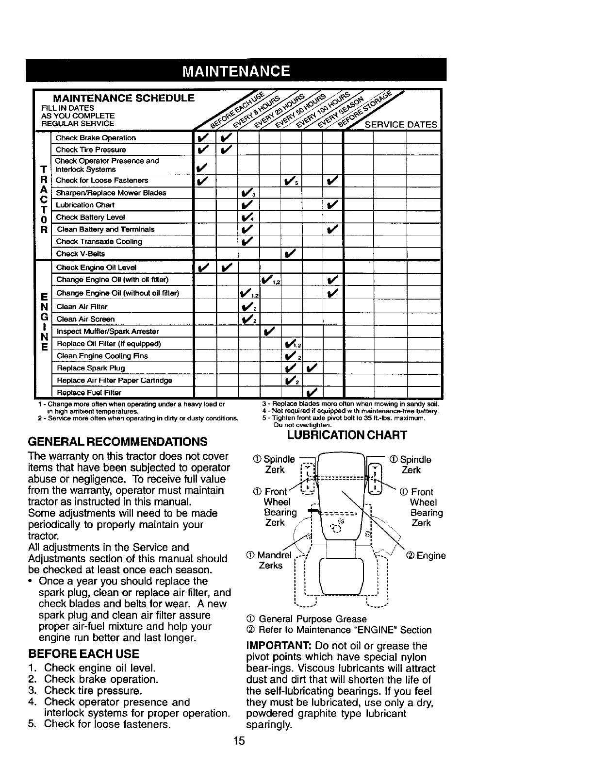 proper grade and amount of engine oil, failure to keep the deck clear of flammable