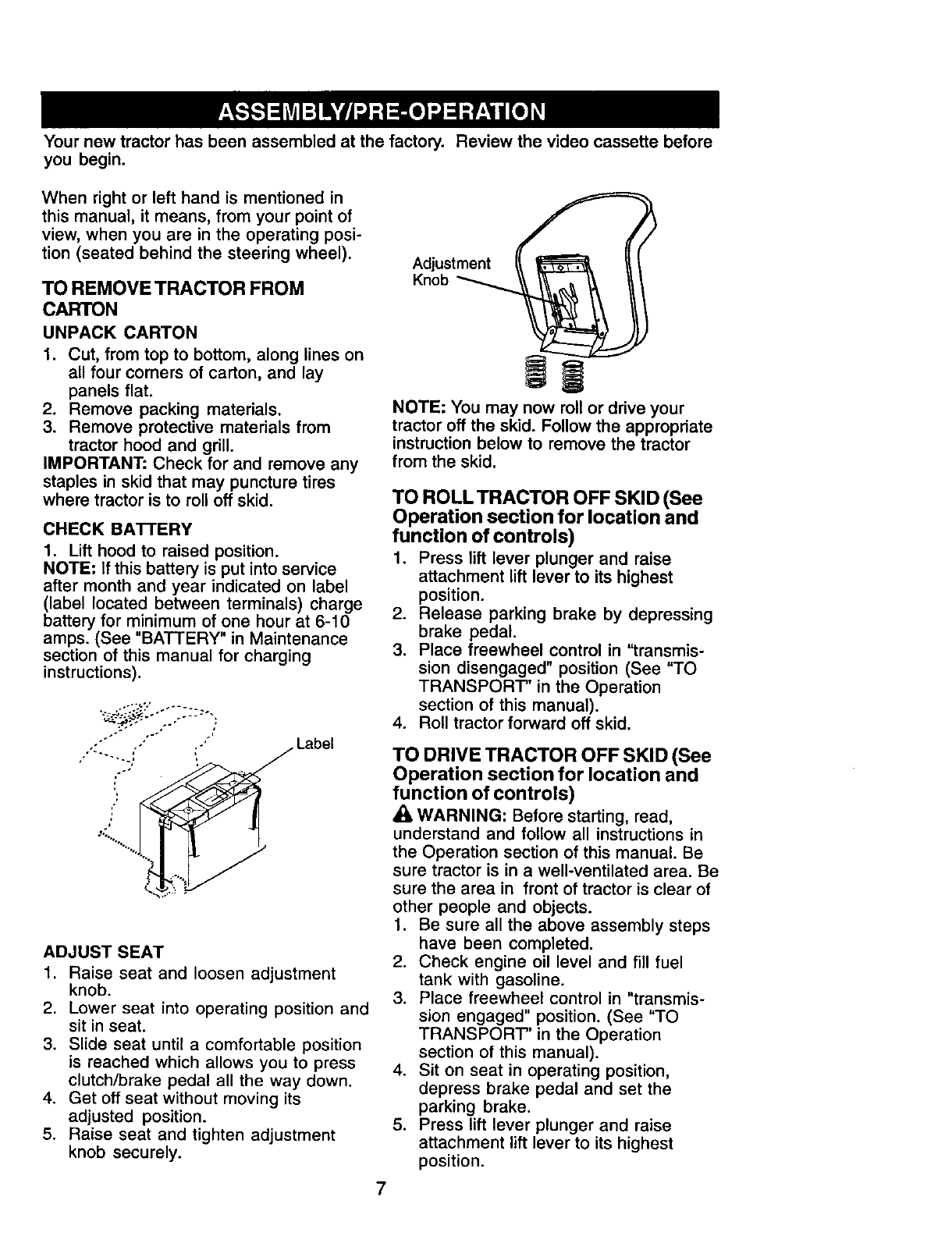 Assem bly/Pre-Ope ration ...................... 7